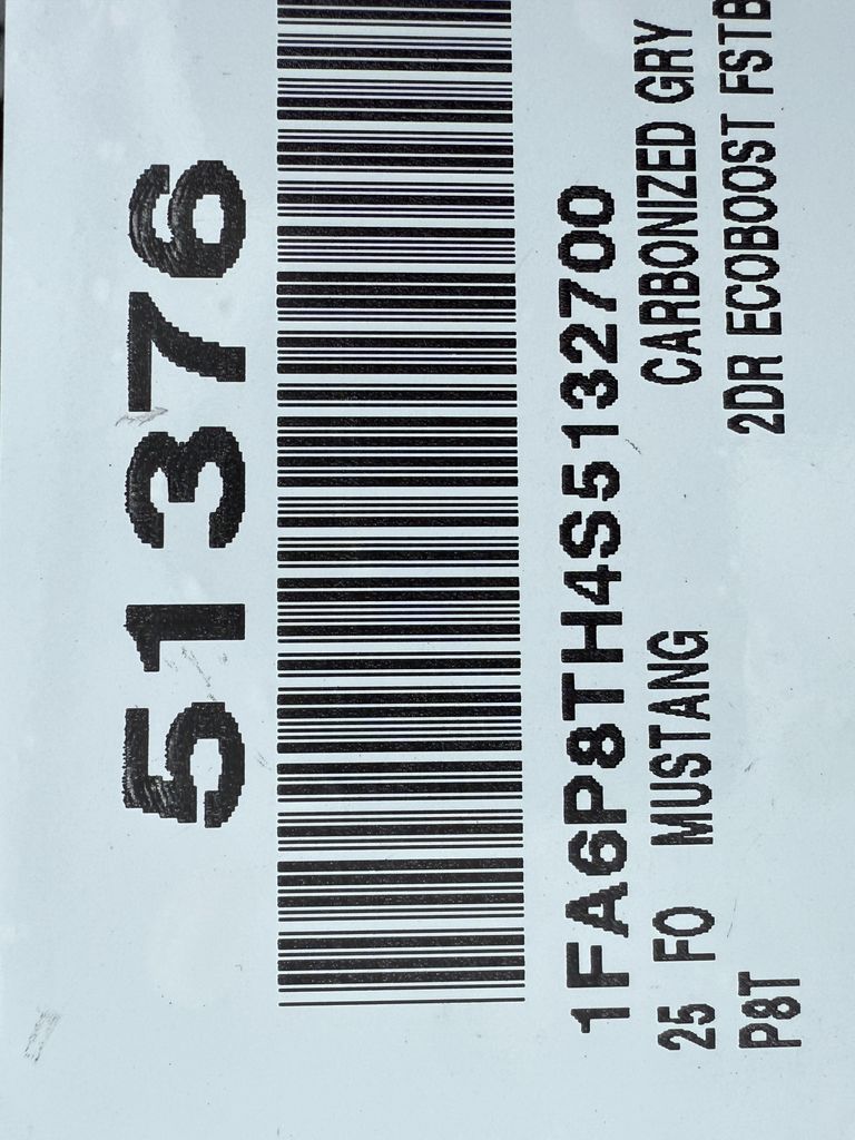 This Ford Mustang is equipped with the following options: 4-Wheel Disc Brakes, ABS brakes, Air Conditioning, Alloy wheels, AM/FM Stereo, Auto High-beam Headlights, Automatic temperature control, Brake assist, Bumpers: body-color, Compass, Delay-off headlights, Driver door bin, Driver vanity mirror, Dual front impact airbags, Dual front side impact airbags, Electronic Stability Control, Emergency communication system: 911 Assist, Exterior Parking Camera Rear, Four wheel independent suspension, Front anti-roll bar, Front Bucket Seats, Front Center Armrest, Front dual zone A/C, Front reading lights, Fully automatic headlights, Illuminated entry, Internet access capable: FordPass Connect, Knee airbag, Leather Shift Knob, Low tire pressure warning, Occupant sensing airbag, Outside temperature display, Overhead airbag, Overhead console, Panic alarm, Passenger door bin, Passenger vanity mirror, Power door mirrors, Power steering, Power windows, Radio data system, Rain sensing wipers, Rear anti-roll bar, Rear Parking Sensors, Rear window defroster, Remote keyless entry, Speed control, Speed-sensing steering, Speed-Sensitive Wipers, Split folding rear seat, Sport steering wheel, Steering wheel mounted audio controls, SYNC 4, Tachometer, Telescoping steering wheel, Tilt steering wheel, Traction control, Trip computer, Variably intermittent wipers, Voltmeter, and Wheels: 18" x 8" Machined-Face Aluminum. Price includes: $1000 - SUV Spike Retail Bonus Cash. Exp. 03/02/2026 $2500 - Retail Customer Cash. Exp. 03/31/2026