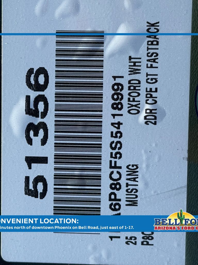 This Ford Mustang is equipped with the following options: Equipment Group 401A High Package (Driver Seat & Mirrors Memory, Illuminated Door-Sill Scuff Plates, Integrated Turn Signals, and Leather-Trimmed Bucket Seats w/Color Accents), Ford Co-Pilot360 Assist+ (Connected Navigation and Pre-Collision Assist w/Automatic Emergency Braking), Security Package (Active Anti-Theft System, Locking Center Console, and Wheel Locking Kit), 20" Wheels, 3.55 Limited Slip Rear Axle, 4-Wheel Disc Brakes, 9 Speakers, ABS brakes, Active Valve Performance Exhaust, Air Conditioning, Alloy wheels, AM/FM radio: SiriusXM with 360L, AM/FM Stereo, Auto High-beam Headlights, Auto-dimming Rear-View mirror, Automatic temperature control, B&O Sound System by Bang & Olufsen w/12 Speakers, Brake assist, Bumpers: body-color, Climate Controlled Heated/Cooled Front Seats, Compass, Delay-off headlights, Driver door bin, Driver vanity mirror, Dual front impact airbags, Dual front side impact airbags, Electronic Stability Control, Emergency communication system: 911 Assist, Exterior Parking Camera Rear, Four wheel independent suspension, Front anti-roll bar, Front Bucket Seats, Front Center Armrest, Front dual zone A/C, Front reading lights, Fully automatic headlights, Garage door transmitter, HD Radio, Heated door mirrors, Heated front seats, Heated steering wheel, Illuminated entry, Instrument Panel w/Accent Stitch, Internet access capable: FordPass Connect, Knee airbag, Leather Shift Knob, Leather steering wheel, Leather-Trimmed Bucket Seats, Low tire pressure warning, Occupant sensing airbag, Outside temperature display, Overhead airbag, Overhead console, Panic alarm, Passenger door bin, Passenger vanity mirror, Power door mirrors, Power driver seat, Power passenger seat, Power steering, Power windows, Radio data system, Rain sensing wipers, Rear anti-roll bar, Rear Parking Sensors, Rear window defroster, Remote keyless entry, SiriusXM w/360L, Speed control, Speed-sensing steering, Speed-Sensitive Wipers, Split folding rear seat, Spoiler, Sport steering wheel, Steering wheel mounted audio controls, SYNC 4, Tachometer, Telescoping steering wheel, Tilt steering wheel, Traction control, Trip computer, Turn signal indicator mirrors, Variably intermittent wipers, Ventilated front seats, Voltmeter, Wheels: 19" x 8.5" Shadow Silver-Painted Aluminum, and Wheels: 20" x 9" Premium-Painted Aluminum. Price includes: $3500 - Retail Customer Cash. Exp. 03/31/2026