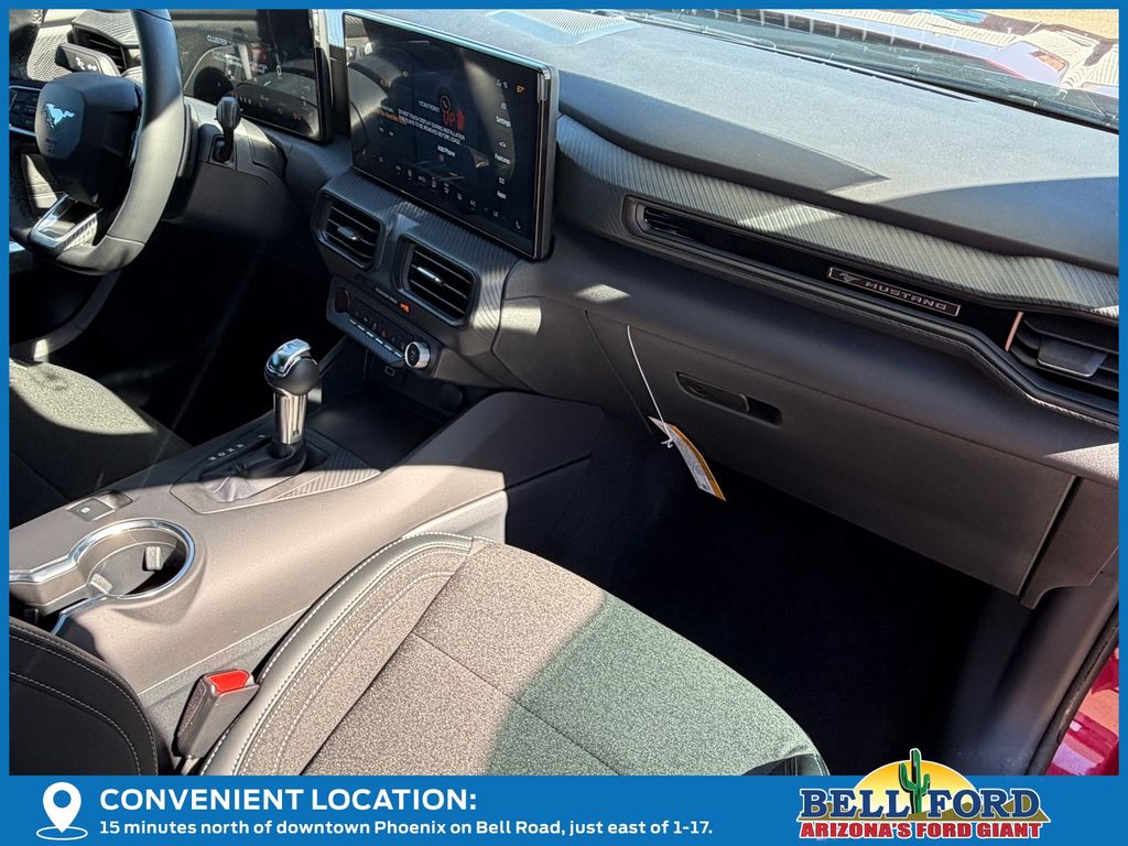 This Ford Mustang is equipped with the following options: Equipment Group 301A High Package (9-Speaker Stereo System, Ambient Lighting w/MyColor, Cloth/Vinyl Heated Bucket Seats, and SiriusXM w/360L & HD Radio), 4-Wheel Disc Brakes, 6 Speakers, ABS brakes, Active Valve Performance Exhaust, Air Conditioning, Alloy wheels, AM/FM radio, AM/FM Stereo, Auto High-beam Headlights, Automatic temperature control, Brake assist, Bumpers: body-color, Cloth Bucket Seats, Compass, Delay-off headlights, Driver door bin, Driver vanity mirror, Dual front impact airbags, Dual front side impact airbags, Electronic Stability Control, Emergency communication system: 911 Assist, Exterior Parking Camera Rear, Four wheel independent suspension, Front anti-roll bar, Front Bucket Seats, Front Center Armrest, Front dual zone A/C, Front reading lights, Fully automatic headlights, Illuminated entry, Internet access capable: FordPass Connect, Knee airbag, Leather Shift Knob, Leather steering wheel, Low tire pressure warning, Occupant sensing airbag, Outside temperature display, Overhead airbag, Overhead console, Panic alarm, Passenger door bin, Passenger vanity mirror, Power door mirrors, Power steering, Power windows, Radio data system, Rain sensing wipers, Rear anti-roll bar, Rear Parking Sensors, Rear window defroster, Remote keyless entry, Remote Start System, Speed control, Speed-sensing steering, Speed-Sensitive Wipers, Split folding rear seat, Spoiler, Sport steering wheel, Steering wheel mounted audio controls, SYNC 4, Tachometer, Telescoping steering wheel, Tilt steering wheel, Traction control, Trip computer, Variably intermittent wipers, Voltmeter, and Wheels: 18" x 8.5" Ebony Black Painted Aluminum. Price includes: $1000 - Final Days Mega Bonus Cash. Exp. 01/02/2026 $3500 - Retail Customer Cash. Exp. 01/05/2026