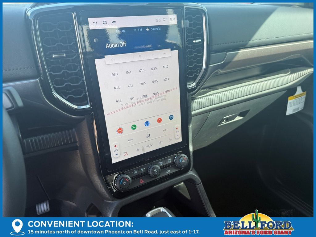 This Ford Ranger is equipped with the following options: Black Appearance Package (Black Center Bar & Surround Grille, Black Rear Bumper, Body-Color Painted Front Fascia, Front & Rear Black Ford Ovals, Painted Body-Color Wheel Lip Molding, Unique Carpet Mats, and Wheels: 18" Black Painted), Equipment Group 500A Standard, Sport Appearance Package (Gray Painted Center Bar & Grille Surround, Gray Painted Front Fascia & Rear Bumper, and Sport Box Decal), Trailer Tow Package (Class IV Trailer Hitch Receiver), 4WD, 10 Speakers, 4-Wheel Disc Brakes, ABS brakes, Air Conditioning, Alloy wheels, AM/FM radio: SiriusXM, Auto High-beam Headlights, Auto-dimming Rear-View mirror, Automatic temperature control, Black Running Boards, Brake assist, Compass, Delay-off headlights, Driver door bin, Driver vanity mirror, Dual front impact airbags, Dual front side impact airbags, Electronic Stability Control, Emergency communication system: SYNC 4 911 Assist, Front anti-roll bar, Front Bucket Seats, Front Center Armrest, Front dual zone A/C, Front fog lights, Front reading lights, Front wheel independent suspension, Fully automatic headlights, Garage door transmitter, Heated door mirrors, Heated front seats, Heated steering wheel, Illuminated entry, Internet access capable: FordPass Connect 4G, Leather Shift Knob, Leather steering wheel, Leather-Trimmed Front Heated Bucket Seats, Low tire pressure warning, Memory seat, Navigation system: Connected Navigation, Occupant sensing airbag, Outside temperature display, Overhead airbag, Overhead console, Panic alarm, Passenger door bin, Passenger vanity mirror, Power door mirrors, Power driver seat, Power passenger seat, Power steering, Power windows, Radio: B&O Sound System by Bang & Olufsen, Rain sensing wipers, Rear reading lights, Rear seat center armrest, Rear step bumper, Rear window defroster, Remote keyless entry, Security system, SiriusXM Satellite Radio, Speed control, Speed-sensing steering, Steering wheel mounted audio controls, SYNC 4A w/Connected Navigation, Telescoping steering wheel, Tilt steering wheel, Traction control, Trip computer, Turn signal indicator mirrors, Variably intermittent wipers, Voltmeter, and Wheels: 18" Machined Aluminum w/Dark Pockets. Price includes: $1000 - Truck Month Bonus Customer Cash. Exp. 03/31/2026 $2000 - Bonus Customer Cash. Exp. 03/31/2026