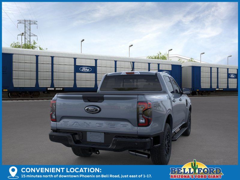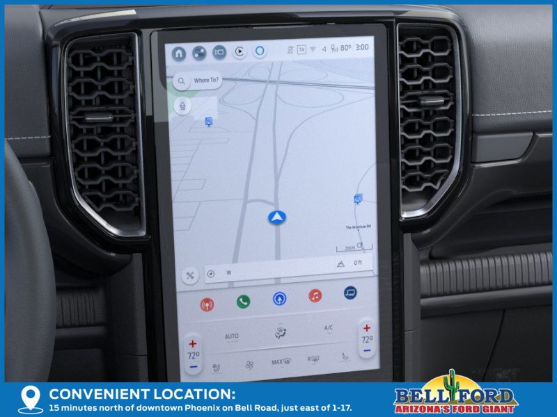 This Ford Ranger is equipped with the following options: Black Appearance Package (Black Center Bar & Surround Grille, Black Rear Bumper, Body-Color Painted Front Fascia, Front & Rear Black Ford Ovals, Painted Body-Color Wheel Lip Molding, Unique Carpet Mats, and Wheels: 18" Black Painted), Equipment Group 500A Standard, Sport Appearance Package (Gray Painted Center Bar & Grille Surround, Gray Painted Front Fascia & Rear Bumper, and Sport Box Decal), Trailer Tow Package (Class IV Trailer Hitch Receiver), 4WD, 10 Speakers, 4-Wheel Disc Brakes, ABS brakes, Air Conditioning, Alloy wheels, AM/FM radio: SiriusXM, Auto High-beam Headlights, Auto-dimming Rear-View mirror, Automatic temperature control, Black Running Boards, Brake assist, Compass, Delay-off headlights, Driver door bin, Driver vanity mirror, Dual front impact airbags, Dual front side impact airbags, Electronic Stability Control, Emergency communication system: SYNC 4 911 Assist, Front anti-roll bar, Front Bucket Seats, Front Center Armrest, Front dual zone A/C, Front fog lights, Front reading lights, Front wheel independent suspension, Fully automatic headlights, Garage door transmitter, Heated door mirrors, Heated front seats, Heated steering wheel, Illuminated entry, Internet access capable: FordPass Connect 4G, Leather Shift Knob, Leather steering wheel, Leather-Trimmed Front Heated Bucket Seats, Low tire pressure warning, Memory seat, Navigation system: Connected Navigation, Occupant sensing airbag, Outside temperature display, Overhead airbag, Overhead console, Panic alarm, Passenger door bin, Passenger vanity mirror, Power door mirrors, Power driver seat, Power passenger seat, Power steering, Power windows, Radio: B&O Sound System by Bang & Olufsen, Rain sensing wipers, Rear reading lights, Rear seat center armrest, Rear step bumper, Rear window defroster, Remote keyless entry, Security system, SiriusXM Satellite Radio, Speed control, Speed-sensing steering, Steering wheel mounted audio controls, SYNC 4A w/Connected Navigation, Telescoping steering wheel, Tilt steering wheel, Traction control, Trip computer, Turn signal indicator mirrors, Variably intermittent wipers, Voltmeter, and Wheels: 18" Machined Aluminum w/Dark Pockets. Price includes: $2000 - Bonus Customer Cash. Exp. 03/31/2026