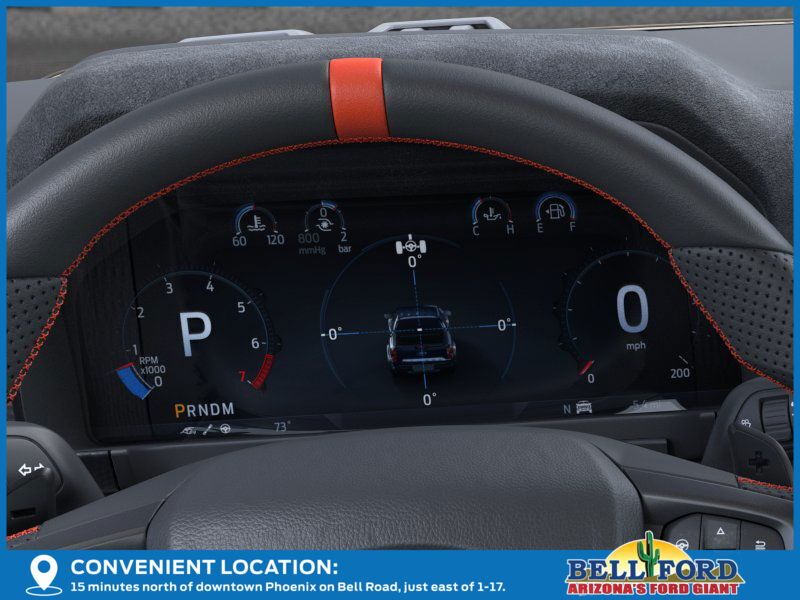 Equipment Group 800A Standard, 4WD, 10 Speakers, 4-Wheel Disc Brakes, 4.27 Axle Ratio, ABS brakes, Air Conditioning, Alloy wheels, AM/FM radio: SiriusXM, Auto High-beam Headlights, Auto-dimming Rear-View mirror, Automatic temperature control, Brake assist, Compass, Delay-off headlights, Driver door bin, Driver vanity mirror, Dual front impact airbags, Dual front side impact airbags, Electronic Stability Control, Emergency communication system: SYNC 4 911 Assist, Front anti-roll bar, Front Bucket Seats, Front Center Armrest, Front dual zone A/C, Front fog lights, Front reading lights, Front wheel independent suspension, Fully automatic headlights, Garage door transmitter, Heated door mirrors, Heated front seats, Heated steering wheel, Illuminated entry, Leather Shift Knob, Leather steering wheel, Leather-Trimmed Front Heated Bucket Seats, Low tire pressure warning, Memory seat, Navigation system: Connected Navigation, Occupant sensing airbag, Outside temperature display, Overhead airbag, Overhead console, Panic alarm, Passenger door bin, Passenger vanity mirror, Power door mirrors, Power driver seat, Power passenger seat, Power steering, Power windows, Radio: B&O Sound System by Bang & Olufsen, Rain sensing wipers, Rear reading lights, Rear seat center armrest, Rear step bumper, Rear window defroster, Remote keyless entry, Security system, SiriusXM Satellite Radio, Speed control, Speed-sensing steering, Steering wheel mounted audio controls, SYNC 4A, Telescoping steering wheel, Tilt steering wheel, Traction control, Trip computer, Turn signal indicator mirrors, Variably intermittent wipers, Voltmeter, and Wheels: 17" Gray-Painted Aluminum.