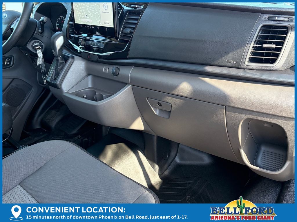 Heavy-Duty Trailer Tow Package (Frame Mounted Hitch Receiver and Tow/Haul Mode w/Trailering Wiring Provisions), Interior Upgrade Package (Front & Rear Vinyl Floor Covering and Illuminated Sun Visors), Order Code 101A, 2 Additional Keys (4 Total), 253-Degree Rear Door, 3.73 Axle Ratio, 4 Speakers, 4-Wheel Disc Brakes, ABS brakes, Air Conditioning, AM/FM radio, AM/FM Stereo, Auto High-beam Headlights, Brake assist, Dark Palazzo Gray Cloth Bucket Seats w/Armrests, Dark Palazzo Gray Vinyl Bucket Seats, Delay-off headlights, Driver door bin, Driver's Seat Mounted Armrest, Dual front impact airbags, Dual front side impact airbags, Electronic Air Temperature Control, Electronic Stability Control, Exterior Parking Camera Rear, Front anti-roll bar, Front Bucket Seats, Front License Plate Bracket, Front Overhead Shelf, Front reading lights, Front wheel independent suspension, Full Rear Compartment Lighting, Fully automatic headlights, High Resolution Digital Camera, Illuminated entry, Low tire pressure warning, Occupant sensing airbag, Overhead airbag, Panic alarm, Passenger cancellable airbag, Passenger door bin, Power door mirrors, Power steering, Power windows, Radio: AM/FM Stereo w/SYNC 4, Remote keyless entry, Reverse Sensing System, Short-Arm Manual-Folding Power Adjust Mirrors, Speed control, Steering wheel mounted audio controls, Tachometer, Telescoping steering wheel, Tilt steering wheel, Traction control, Variably intermittent wipers, Vinyl Front Bucket Seats, and Wheels: 16" Silver Steel w/Black Hubcap.