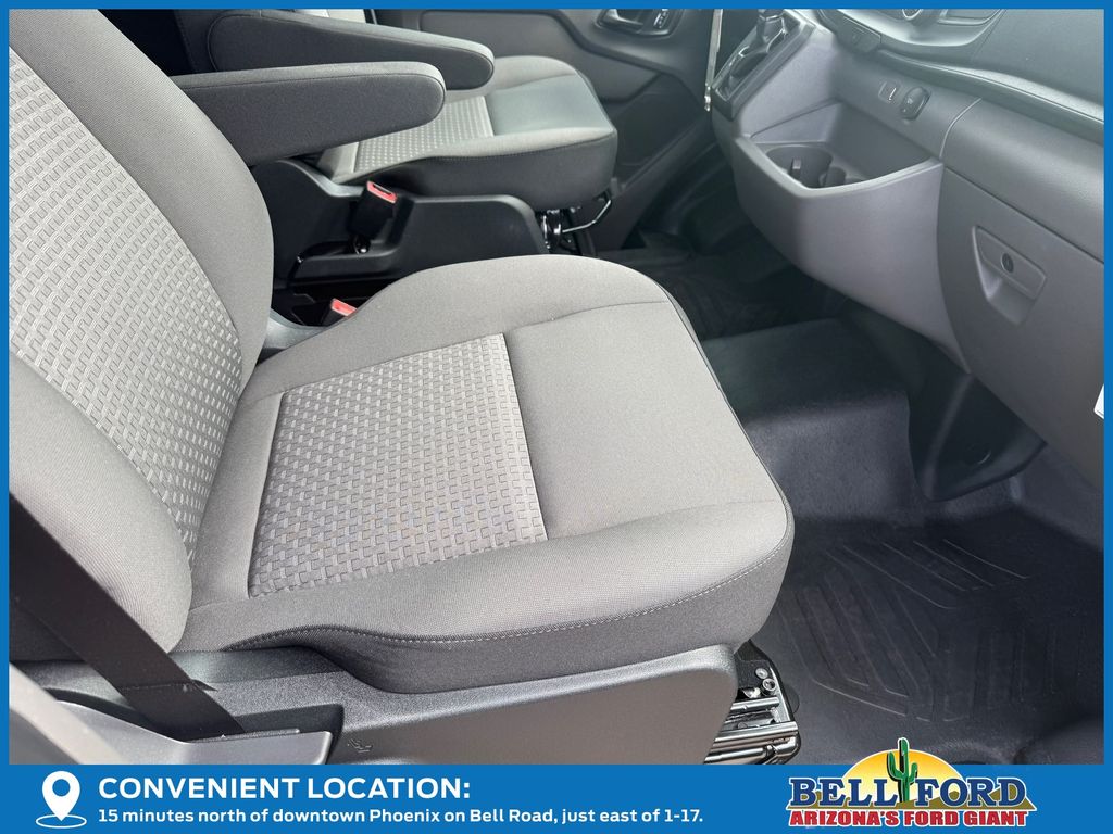 This Ford Transit-350 is equipped with the following options: 15-Passenger Seats, 2 Additional Keys (4 Total), 3.73 Axle Ratio, 3rd row seats: split-bench, 4-Wheel Disc Brakes, 4th-Row Bench Seat, 8 Speakers, ABS brakes, Air Conditioning, AM/FM radio, Auto High-beam Headlights, Brake assist, Cloth Front Bucket Seats, Dark Palazzo Gray Cloth Bucket Seats, Delay-off headlights, Driver door bin, Driver vanity mirror, Driver's Seat Mounted Armrest, Dual front impact airbags, Dual front side impact airbags, Electronic Air Temperature Control, Electronic Stability Control, Front anti-roll bar, Front Bucket Seats, Front Fog Lamps, Front License Plate Bracket, Front reading lights, Front Sensing System, Front wheel independent suspension, Fully automatic headlights, Illuminated entry, Internet access capable: FordPass Connect 4G, Large Center Console, Low tire pressure warning, Midship Extended Range Fuel Tank (31 Gallons), Occupant sensing airbag, Overhead airbag, Panic alarm, Passenger door bin, Passenger Running Board, Passenger seat mounted armrest, Passenger vanity mirror, Power door mirrors, Power steering, Power windows, Privacy Glass, Radio: AM/FM Stereo w/SYNC 4 & Nav, Rain sensing wipers, Rear air conditioning, Rear window defroster, Rear-Window Defroster, Remote keyless entry, Reverse Sensing System, Side Sensing System, Speed control, Steering wheel mounted audio controls, Tachometer, Telescoping steering wheel, Tilt steering wheel, Traction control, Variably intermittent wipers, and Wheels: 16" Steel w/Full Silver Cover.