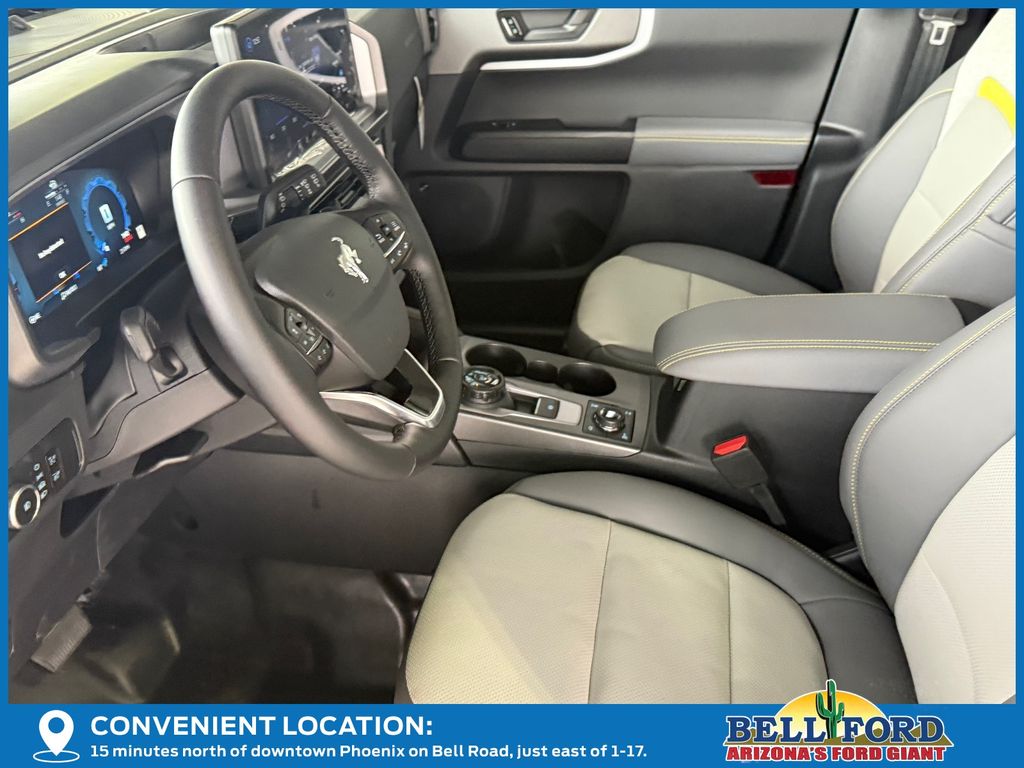 This Ford Bronco Sport is equipped with the following options: Badlands Tech Package (Connected Navigation (1-Year Included), Noise Reduction Module, and Radio: HD w/B&O Sound System by Bang & Olufsen), Equipment Group 400A Standard Package (AM/FM Stereo, Leather-Trimmed Heated Front Sport Contour Bucket Seats, SiriusXM with 360L, SYNC 4 with Enhanced Voice Recognition, and Wheels: 17" Matte Black-Painted Aluminum), Ford Connectivity Package (1-Year Included), Internet access capable: 5G Modem - Ford Connectivity Package, Sasquatch Badlands Package (2 Rear D-Ring Recovery Hooks, 850W Engine Cooling Fan, Auxiliary Switches and Wiring, High Clearance Fender Flares, HOSS 3.0 Off-Road Suspension, Rear Black Bumpers with Steel Plates, and Wheels: 17" Ebony Black-Painted Aluminum), 4-Wheel Disc Brakes, 6 Speakers, ABS brakes, Air Conditioning, Alloy wheels, AM/FM radio: SiriusXM with 360L, Apple CarPlay/Android Auto, Auto High-beam Headlights, Auto-dimming Rear-View mirror, Automatic temperature control, Brake assist, Compass, Delay-off headlights, Driver door bin, Driver vanity mirror, Dual front impact airbags, Dual front side impact airbags, Electronic Stability Control, Emergency communication system: SYNC 4 911 Assist, Exterior Parking Camera Rear, Four wheel independent suspension, Front anti-roll bar, Front Bucket Seats, Front Center Armrest, Front fog lights, Front reading lights, Fully automatic headlights, Heated door mirrors, Heated front seats, Heated steering wheel, Illuminated entry, Knee airbag, Low tire pressure warning, Memory seat, Occupant sensing airbag, Outside temperature display, Overhead airbag, Overhead console, Panic alarm, Passenger door bin, Passenger vanity mirror, Power door mirrors, Power driver seat, Power passenger seat, Power steering, Power windows, Radio data system, Rear anti-roll bar, Rear reading lights, Rear seat center armrest, Rear window defroster, Rear window wiper, Remote keyless entry, Security system, Speed control, Speed-sensing steering, Speed-Sensitive Wipers, Split folding rear seat, Steering wheel mounted audio controls, Tachometer, Telescoping steering wheel, Tilt steering wheel, Traction control, Trip computer, and Variably intermittent wipers.