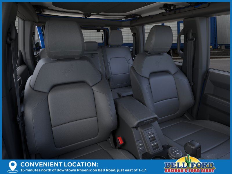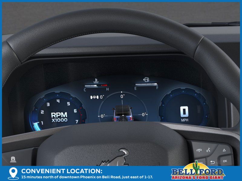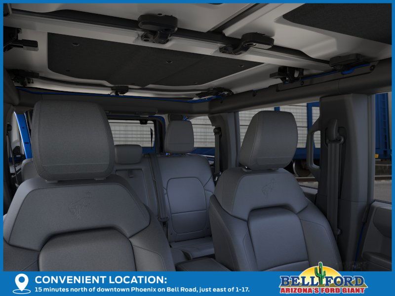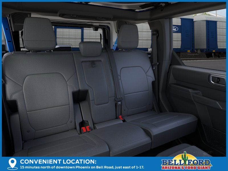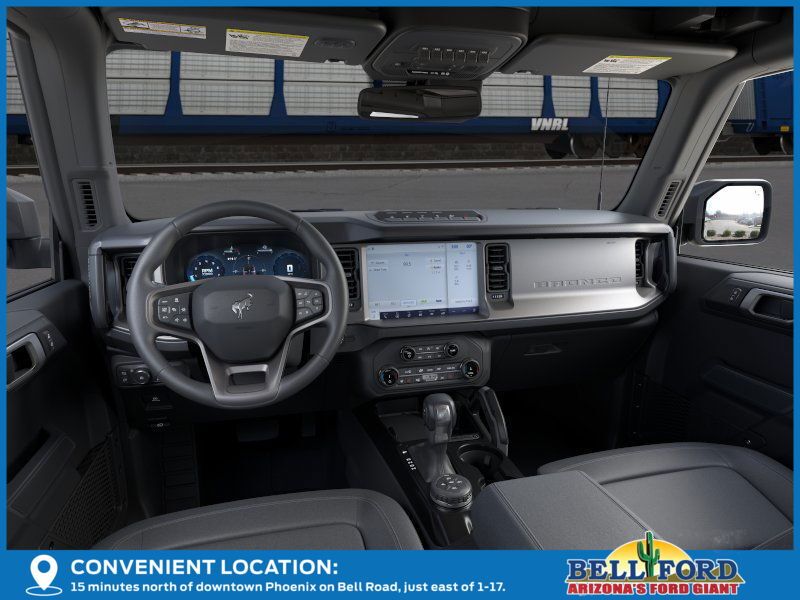This Ford Bronco is equipped with the following options: Equipment Group 334A Lux Package (2-Door Intelligent Access with Lock/Unlock, 360-Degree Camera, Adaptive Cruise Control, Ambient Footwell Lighting, Connected Navigation, Driver and Front Passenger Illuminated Sliding Visor Vanity Mirrors, Dual Smart Charging USB Ports, Dual-Zone Electronic Automatic Temperature Control, Evasive Steering Assist, Front Parking Sensors, Front Row Heated Seats, Heated Steering Wheel, Information on Demand Panel, Marine Grade Vinyl Heated Bucket Seats, Pro Power Onboard - 400W, Rear Parking Sensors, Sideview Mirrors, and Wheels: 17" Carbonized Gray-Painted Aluminum), Ford Connectivity Package (1-Year Included), Sasquatch Package (Front Stabilizer Disconnect, High Clearance Suspension, Position-Sensitive Bilstein Shock Absorbers, and Wheels: 17" Matte Black Alloy), 4-Wheel Disc Brakes, 7 Speakers, ABS brakes, Air Conditioning, Alloy wheels, AM/FM radio: SiriusXM with 360L, AM/FM Stereo, Auto High-Beam Headlamps, Auto High-beam Headlights, Auto-dimming Rear-View mirror, BLIS Blind Spot Information System, Brake assist, Compass, Delay-off headlights, Driver door bin, Driver vanity mirror, Dual front impact airbags, Dual front side impact airbags, Electronic Stability Control, Emergency communication system: 911 Assist, Exterior Parking Camera Rear, Front anti-roll bar, Front Bucket Seats, Front Center Armrest, Front fog lights, Front reading lights, Front wheel independent suspension, Fully automatic headlights, Hard Top Sound Deadening Headliner, Heated door mirrors, Heated front seats, Illuminated entry, Integrated roll-over protection, Lane-Keeping System, Leather Shift Knob, Low tire pressure warning, Occupant sensing airbag, Outside temperature display, Overhead airbag, Overhead console, Painted Hard Top, Panic alarm, Passenger door bin, Passenger vanity mirror, Power door mirrors, Power steering, Power windows, Pre-Collision Assist with Automatic Emergency Braking, Radio data system, Rear-View Camera, Rear-Window Defroster and Washer, Remote keyless entry, Security system, SiriusXM with 360L, Speed control, Split folding rear seat, Steering wheel mounted audio controls, SYNC 4, Tachometer, Telescoping steering wheel, Tilt steering wheel, Traction control, Trip computer, Variably intermittent wipers, and Voltmeter. Price includes: $750 - Retail Customer Cash. Exp. 03/31/2026