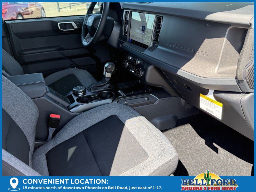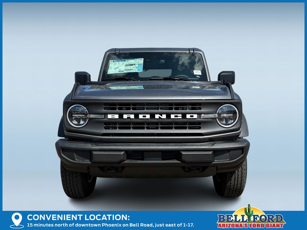 This Ford Bronco is equipped with the following options: Equipment Group 222A Mid Package (2-Door Intelligent Access with Lock/Unlock, AM/FM Stereo, Ambient Footwell Lighting, Cloth Bucket Seats, Connected Navigation, Driver and Front Passenger Illuminated Sliding Visor Vanity Mirrors, Dual Smart Charging USB Ports, Dual-Zone Electronic Automatic Temperature Control, Front Row Heated Seats, Pro Power Onboard - 400W, Rear Parking Sensors, SiriusXM with 360L, SYNC 4, and Wheels: 17" Carbonized Gray-Painted Aluminum), Ford Connectivity Package (1-Year Included), 4-Wheel Disc Brakes, 4.46 Axle Ratio, 7 Speakers, ABS brakes, Air Conditioning, Alloy wheels, AM/FM radio: SiriusXM with 360L, Auto High-Beam Headlamps, Auto High-beam Headlights, BLIS Blind Spot Information System, Brake assist, Carbonized Gray Molded-in-Color Hard Top, Compass, Delay-off headlights, Driver door bin, Driver vanity mirror, Dual front impact airbags, Dual front side impact airbags, Electronic Stability Control, Emergency communication system: 911 Assist, Exterior Parking Camera Rear, Front anti-roll bar, Front Bucket Seats, Front Center Armrest, Front reading lights, Front wheel independent suspension, Fully automatic headlights, Hard Top Sound Deadening Headliner, Heated door mirrors, Illuminated entry, Integrated roll-over protection, Lane-Keeping System, Low tire pressure warning, Occupant sensing airbag, Outside temperature display, Overhead airbag, Overhead console, Panic alarm, Passenger door bin, Passenger vanity mirror, Power door mirrors, Power steering, Power windows, Pre-Collision Assist with Automatic Emergency Braking, Radio data system, Rear-View Camera, Rear-Window Defroster and Washer, Remote keyless entry, Security system, Speed control, Split folding rear seat, Steering wheel mounted audio controls, Tachometer, Telescoping steering wheel, Tilt steering wheel, Traction control, Trip computer, and Variably intermittent wipers. Price includes: $750 - Retail Customer Cash. Exp. 03/31/2026