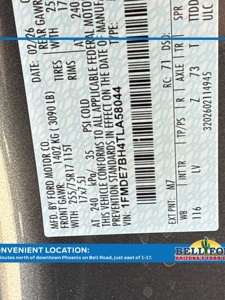 - VIN : 1FMDE7BH4TLA58044