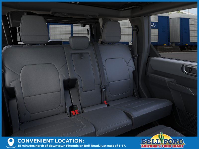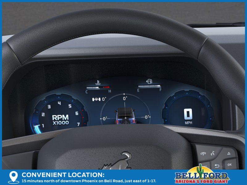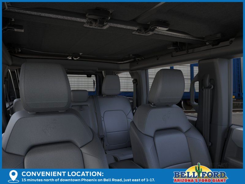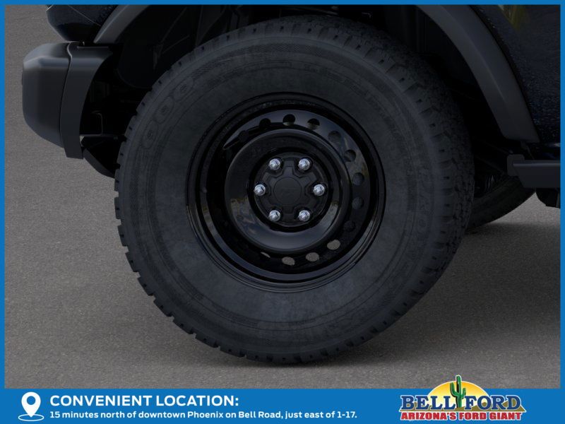 This Ford Bronco is equipped with the following options: Black Diamond Package (Auxiliary Switches, LED Fog Lamps, Powder Coated Steel Front and Rear Bumpers, Rock Rails, Washout Capable Rubberized Flooring, and Wheels: 17" Black High Gloss-Painted Steel), Equipment Group 222A Mid Package (2-Door Intelligent Access with Lock/Unlock, AM/FM Stereo, Ambient Footwell Lighting, Cloth Bucket Seats, Connected Navigation, Driver and Front Passenger Illuminated Sliding Visor Vanity Mirrors, Dual Smart Charging USB Ports, Dual-Zone Electronic Automatic Temperature Control, Front Row Heated Seats, Pro Power Onboard - 400W, Rear Parking Sensors, SiriusXM with 360L, SYNC 4, and Wheels: 17" Carbonized Gray-Painted Aluminum), Ford Connectivity Package (1-Year Included), 4-Wheel Disc Brakes, 7 Speakers, ABS brakes, Air Conditioning, Alloy wheels, AM/FM radio: SiriusXM with 360L, Auto High-Beam Headlamps, Auto High-beam Headlights, BLIS Blind Spot Information System, Brake assist, Carbonized Gray Molded-in-Color Hard Top, Compass, Delay-off headlights, Driver door bin, Driver vanity mirror, Dual front impact airbags, Dual front side impact airbags, Electronic Stability Control, Emergency communication system: 911 Assist, Exterior Parking Camera Rear, Front anti-roll bar, Front Bucket Seats, Front Center Armrest, Front reading lights, Front wheel independent suspension, Fully automatic headlights, Hard Top Sound Deadening Headliner, Heated door mirrors, Illuminated entry, Integrated roll-over protection, Lane-Keeping System, Low tire pressure warning, Occupant sensing airbag, Outside temperature display, Overhead airbag, Overhead console, Panic alarm, Passenger door bin, Passenger vanity mirror, Power door mirrors, Power steering, Power windows, Pre-Collision Assist with Automatic Emergency Braking, Radio data system, Rear-View Camera, Rear-Window Defroster and Washer, Remote keyless entry, Security system, Speed control, Split folding rear seat, Steering wheel mounted audio controls, Tachometer, Telescoping steering wheel, Tilt steering wheel, Traction control, Trip computer, and Variably intermittent wipers. Price includes: $750 - Retail Customer Cash. Exp. 03/31/2026