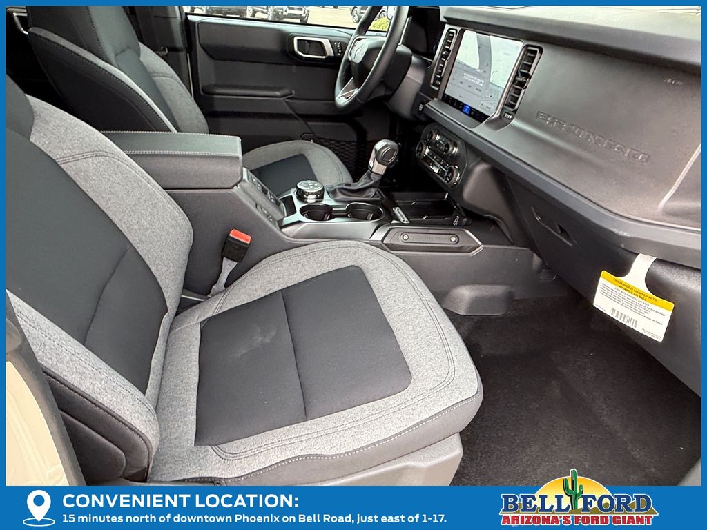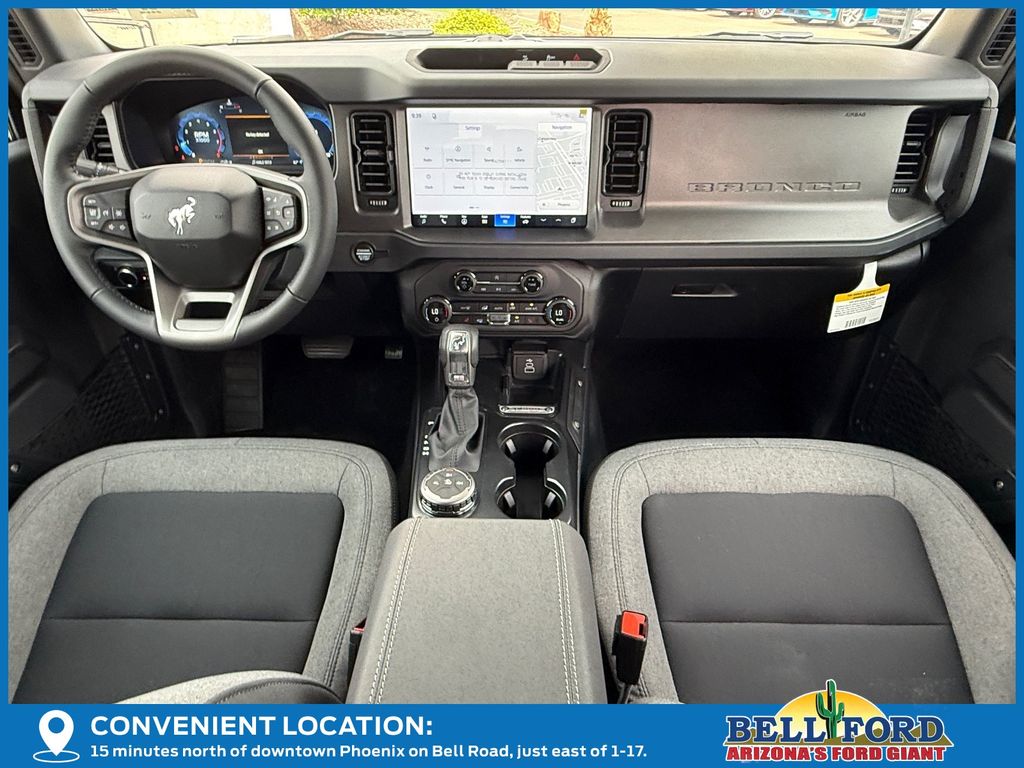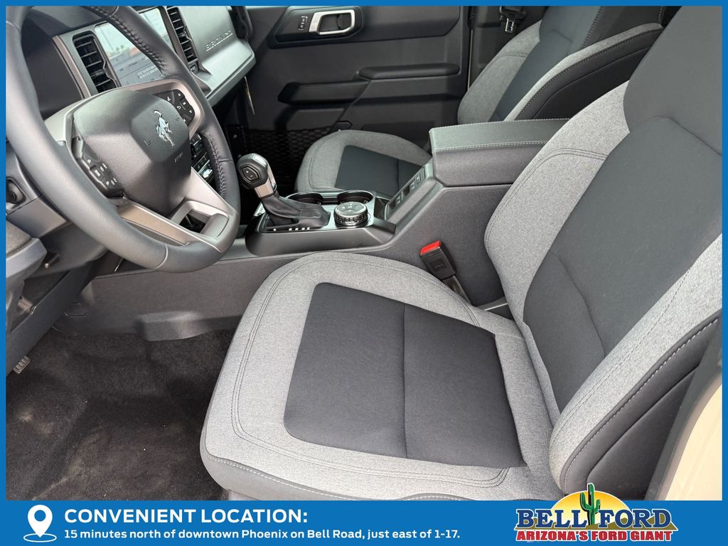 This Ford Bronco is equipped with the following options: Equipment Group 222A Mid Package (2-Door Intelligent Access with Lock/Unlock, AM/FM Stereo, Ambient Footwell Lighting, Cloth Bucket Seats, Connected Navigation, Driver and Front Passenger Illuminated Sliding Visor Vanity Mirrors, Dual Smart Charging USB Ports, Dual-Zone Electronic Automatic Temperature Control, Front Row Heated Seats, Pro Power Onboard - 400W, Rear Parking Sensors, SiriusXM with 360L, SYNC 4, and Wheels: 17" Carbonized Gray-Painted Aluminum), Ford Connectivity Package (1-Year Included), 4-Wheel Disc Brakes, 4.46 Axle Ratio, 7 Speakers, ABS brakes, Air Conditioning, Alloy wheels, AM/FM radio: SiriusXM with 360L, Auto High-Beam Headlamps, Auto High-beam Headlights, BLIS Blind Spot Information System, Brake assist, Carbonized Gray Molded-in-Color Hard Top, Compass, Delay-off headlights, Driver door bin, Driver vanity mirror, Dual front impact airbags, Dual front side impact airbags, Electronic Stability Control, Emergency communication system: 911 Assist, Exterior Parking Camera Rear, Front anti-roll bar, Front Bucket Seats, Front Center Armrest, Front reading lights, Front wheel independent suspension, Fully automatic headlights, Hard Top Sound Deadening Headliner, Heated door mirrors, Illuminated entry, Integrated roll-over protection, Lane-Keeping System, Low tire pressure warning, Occupant sensing airbag, Outside temperature display, Overhead airbag, Overhead console, Panic alarm, Passenger door bin, Passenger vanity mirror, Power door mirrors, Power steering, Power windows, Pre-Collision Assist with Automatic Emergency Braking, Radio data system, Rear-View Camera, Rear-Window Defroster and Washer, Remote keyless entry, Security system, Speed control, Split folding rear seat, Steering wheel mounted audio controls, Tachometer, Telescoping steering wheel, Tilt steering wheel, Traction control, Trip computer, and Variably intermittent wipers. Price includes: $750 - Retail Customer Cash. Exp. 04/30/2026