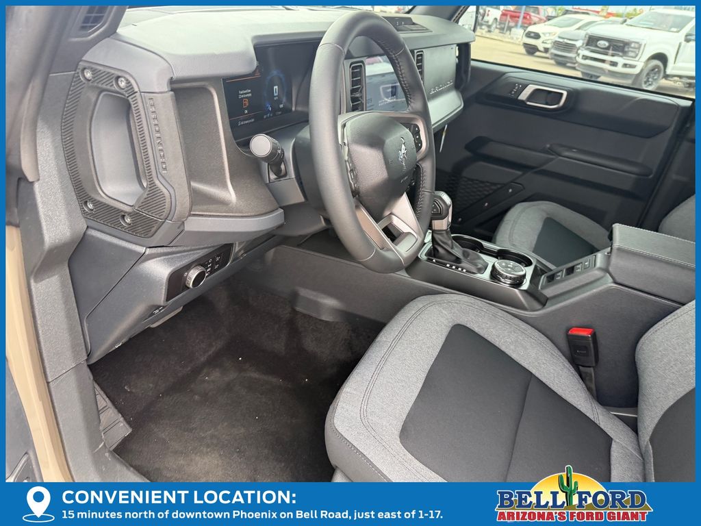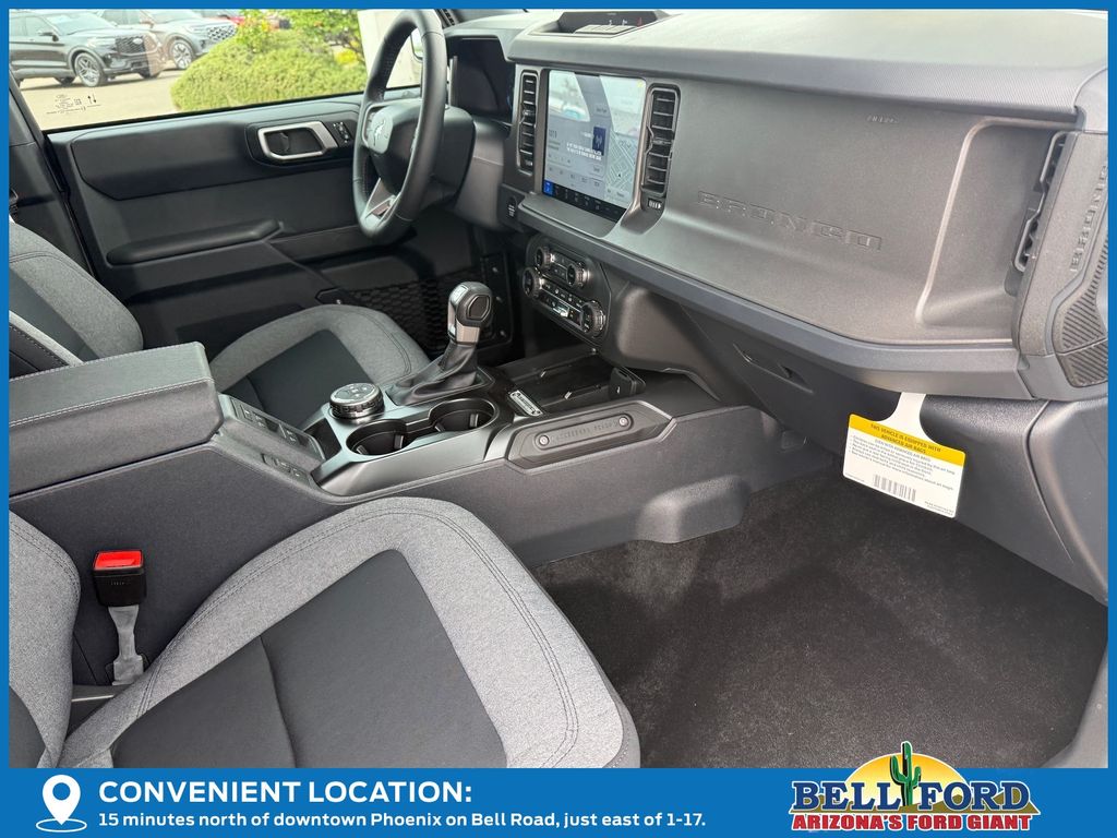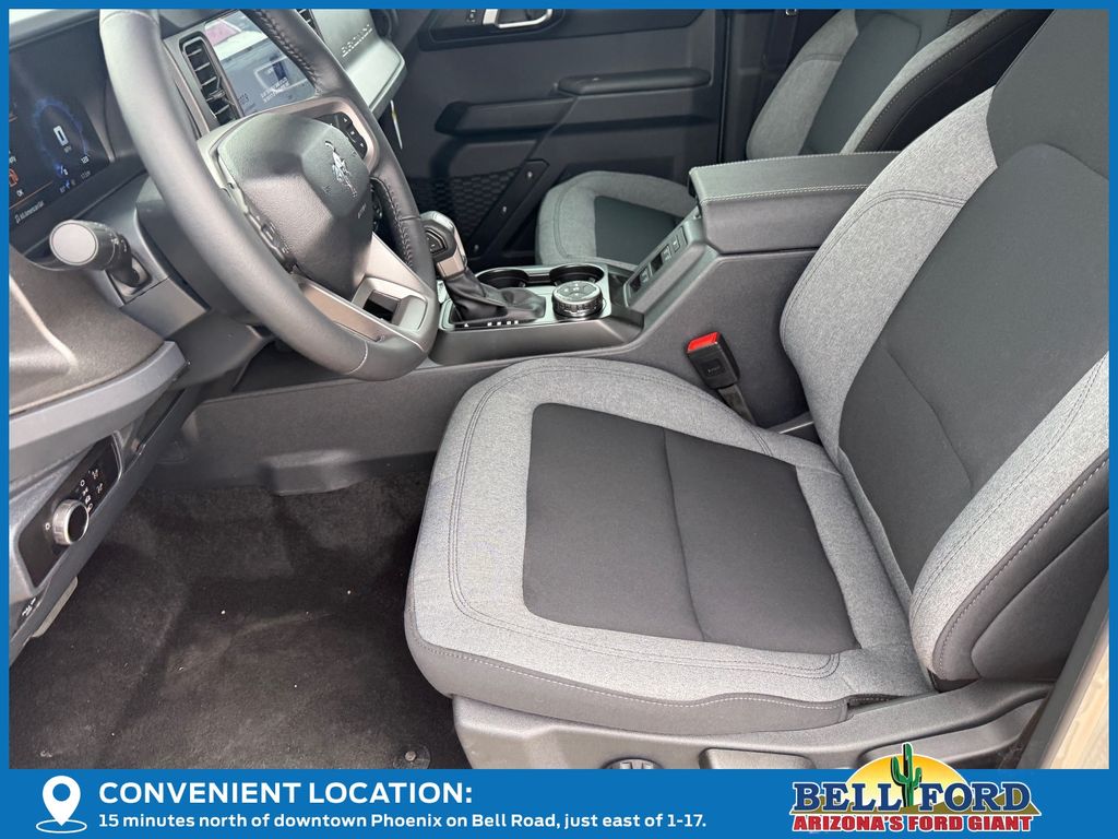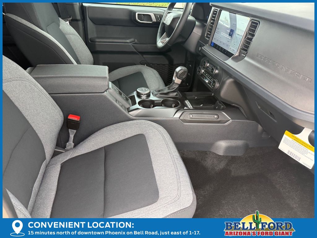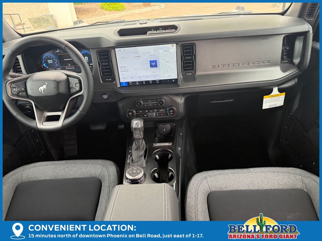 This Ford Bronco is equipped with the following options: Equipment Group 222A Mid Package (2-Door Intelligent Access with Lock/Unlock, AM/FM Stereo, Ambient Footwell Lighting, Cloth Bucket Seats, Connected Navigation, Driver and Front Passenger Illuminated Sliding Visor Vanity Mirrors, Dual Smart Charging USB Ports, Dual-Zone Electronic Automatic Temperature Control, Front Row Heated Seats, Pro Power Onboard - 400W, Rear Parking Sensors, SiriusXM with 360L, SYNC 4, and Wheels: 17" Carbonized Gray-Painted Aluminum), Ford Connectivity Package (1-Year Included), 4-Wheel Disc Brakes, 4.46 Axle Ratio, 7 Speakers, ABS brakes, Air Conditioning, Alloy wheels, AM/FM radio: SiriusXM with 360L, Auto High-Beam Headlamps, Auto High-beam Headlights, BLIS Blind Spot Information System, Brake assist, Carbonized Gray Molded-in-Color Hard Top, Compass, Delay-off headlights, Driver door bin, Driver vanity mirror, Dual front impact airbags, Dual front side impact airbags, Electronic Stability Control, Emergency communication system: 911 Assist, Exterior Parking Camera Rear, Front anti-roll bar, Front Bucket Seats, Front Center Armrest, Front reading lights, Front wheel independent suspension, Fully automatic headlights, Hard Top Sound Deadening Headliner, Heated door mirrors, Illuminated entry, Integrated roll-over protection, Lane-Keeping System, Low tire pressure warning, Occupant sensing airbag, Outside temperature display, Overhead airbag, Overhead console, Panic alarm, Passenger door bin, Passenger vanity mirror, Power door mirrors, Power steering, Power windows, Pre-Collision Assist with Automatic Emergency Braking, Radio data system, Rear-View Camera, Rear-Window Defroster and Washer, Remote keyless entry, Security system, Speed control, Split folding rear seat, Steering wheel mounted audio controls, Tachometer, Telescoping steering wheel, Tilt steering wheel, Traction control, Trip computer, and Variably intermittent wipers. Price includes: $750 - Retail Customer Cash. Exp. 04/30/2026