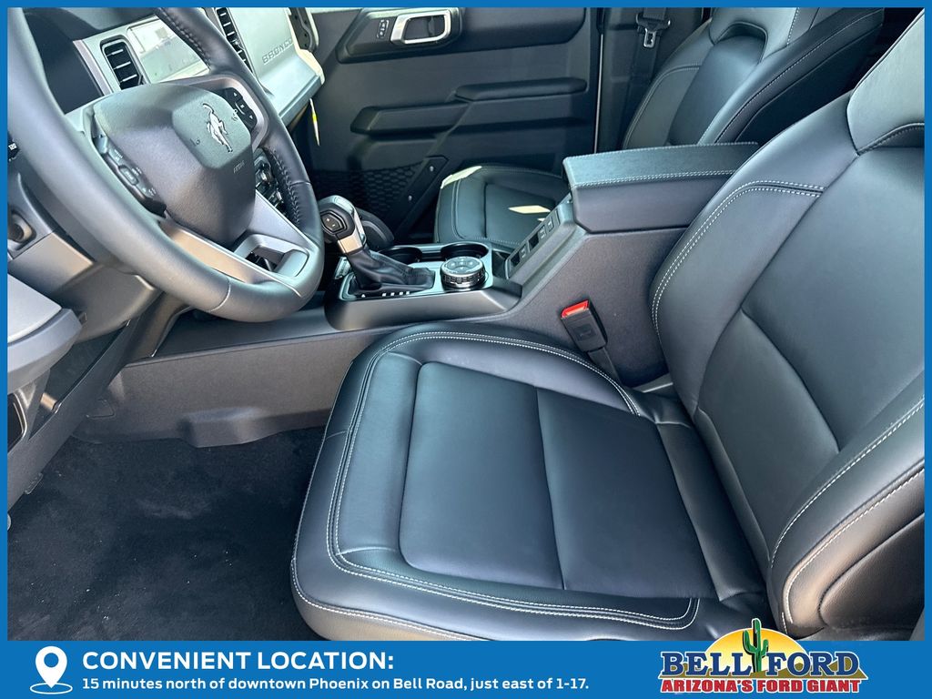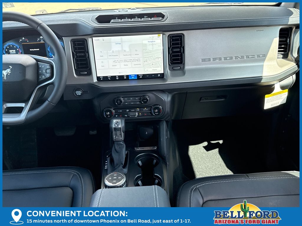This Ford Bronco is equipped with the following options: Equipment Group 314A Lux Package (18" Bright Machined Aluminum Wheels, 360-Degree Camera, Adaptive Cruise Control, Evasive Steering Assist, Front Parking Sensors, Heated Leather-Trimmed/Vinyl Bucket Seats, Information on Demand Panel, and Sideview Mirrors), Ford Connectivity Package (1-Year Included), Sasquatch Package (High Clearance Fender Flares, High Clearance Suspension, Position-Sensitive Bilstein Shock Absorbers, and Wheels: 17" Matte Black Alloy), 4-Wheel Disc Brakes, 7 Speakers, ABS brakes, Air Conditioning, Alloy wheels, AM/FM radio: SiriusXM with 360L, AM/FM Stereo, Auto High-beam Headlights, Auto-dimming Rear-View mirror, Automatic temperature control, Brake assist, Carbonized Gray Molded-in-Color Hard Top, Compass, Connected Navigation, Delay-off headlights, Driver door bin, Driver vanity mirror, Dual front impact airbags, Dual front side impact airbags, Electronic Stability Control, Emergency communication system: 911 Assist, Exterior Parking Camera Rear, Front anti-roll bar, Front Bucket Seats, Front Center Armrest, Front dual zone A/C, Front fog lights, Front reading lights, Front wheel independent suspension, Fully automatic headlights, Hard Top Sound Deadening Headliner, Heated door mirrors, Heated front seats, Heated steering wheel, Illuminated entry, Integrated roll-over protection, Leather Shift Knob, Low tire pressure warning, Navigation system: Connected Navigation, Occupant sensing airbag, Outside temperature display, Overhead airbag, Overhead console, Panic alarm, Passenger door bin, Passenger vanity mirror, Power door mirrors, Power driver seat, Power passenger seat, Power steering, Power windows, Radio data system, Rear seat center armrest, Rear-Window Defroster and Washer, Remote keyless entry, Security system, SiriusXM with 360L, Speed control, Split folding rear seat, Steering wheel mounted audio controls, SYNC 4, Tachometer, Telescoping steering wheel, Tilt steering wheel, Traction control, Trip computer, Variably intermittent wipers, Voltmeter, and Wheels: 17" Black High Gloss-Painted Aluminum. Price includes: $750 - Retail Customer Cash. Exp. 03/31/2026