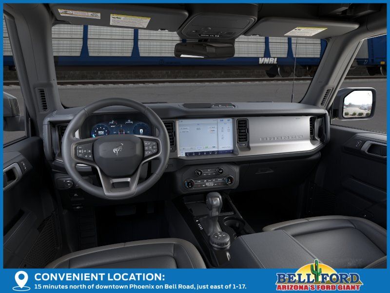 This Ford Bronco is equipped with the following options: Equipment Group 312A Mid Package (18" Bright Machined Aluminum Wheels, 3.73 Axle Ratio, AM/FM Stereo, Connected Navigation, Heated Leather-Trimmed/Vinyl Bucket Seats, SiriusXM with 360L, and SYNC 4), Ford Connectivity Package (1-Year Included), 4-Wheel Disc Brakes, 7 Speakers, ABS brakes, Air Conditioning, Alloy wheels, AM/FM radio: SiriusXM with 360L, Auto High-beam Headlights, Auto-dimming Rear-View mirror, Automatic temperature control, Brake assist, Carbonized Gray Molded-in-Color Hard Top, Compass, Delay-off headlights, Driver door bin, Driver vanity mirror, Dual front impact airbags, Dual front side impact airbags, Electronic Stability Control, Emergency communication system: 911 Assist, Exterior Parking Camera Rear, Front anti-roll bar, Front Bucket Seats, Front Center Armrest, Front dual zone A/C, Front fog lights, Front reading lights, Front wheel independent suspension, Fully automatic headlights, Hard Top Sound Deadening Headliner, Heated door mirrors, Heated front seats, Heated steering wheel, Illuminated entry, Integrated roll-over protection, Leather Shift Knob, Low tire pressure warning, Navigation system: Connected Navigation, Occupant sensing airbag, Outside temperature display, Overhead airbag, Overhead console, Panic alarm, Passenger door bin, Passenger vanity mirror, Power door mirrors, Power driver seat, Power passenger seat, Power steering, Power windows, Radio data system, Rear seat center armrest, Rear-Window Defroster and Washer, Remote keyless entry, Security system, Speed control, Split folding rear seat, Steering wheel mounted audio controls, Tachometer, Telescoping steering wheel, Tilt steering wheel, Traction control, Trip computer, Variably intermittent wipers, and Voltmeter. Price includes: $750 - Retail Customer Cash. Exp. 04/30/2026