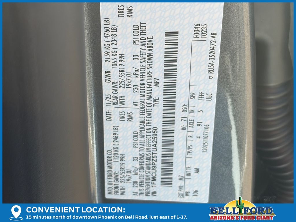 This Ford Escape Hybrid is equipped with the following options: Equipment Group 500A (10-Way Power Driver's Seat w/Memory, 2.91 Axle Ratio, 6-Way Power Front Passenger Seat, Connected Navigation (1-Year Included), Electronic Fuel Door Release, Ford App, Neutral Towing Capability, Partial Vinyl/Cloth Heated Front Sport Contour Bucket Seats with Red Stitching, Pedestrian Alert Sounder, Radio: AM/FM Stereo with SiriusXM 360L, SYNC 4 with Enhanced Voice Recognition, and Wheels: 19" Machined-Face Ebony-Painted Aluminum), Premium Technology Package (360-Degree Camera with Split View, ActiveX Trimmed Heated Front Sport Contour Bucket Seats with Quilting Design, B&O Sound System by Bang & Olufsen, Front Parking Sensors, HD Radio, Head-Up Display, and Reverse Brake Assist), 2.5L iVCT, 4-Wheel Disc Brakes, 6 Speakers, ABS brakes, Air Conditioning, Alloy wheels, AM/FM radio: SiriusXM 360L, Auto High-beam Headlights, Auto-dimming Rear-View mirror, Automatic temperature control, Brake assist, Bumpers: body-color, Compass, Delay-off headlights, Driver door bin, Driver vanity mirror, Dual front impact airbags, Dual front side impact airbags, Electronic Stability Control, Emergency communication system: SYNC 4 911 Assist, Four wheel independent suspension, Front anti-roll bar, Front Bucket Seats, Front Center Armrest, Front dual zone A/C, Front fog lights, Front reading lights, Fully automatic headlights, Heated door mirrors, Heated front seats, Heated steering wheel, Illuminated entry, Knee airbag, Low tire pressure warning, Memory seat, Navigation system: Connected Navigation, Occupant sensing airbag, Outside temperature display, Overhead airbag, Overhead console, Panic alarm, Passenger door bin, Passenger vanity mirror, Power door mirrors, Power driver seat, Power Liftgate, Power passenger seat, Power steering, Power windows, Radio data system, Rear anti-roll bar, Rear Parking Sensors, Rear reading lights, Rear seat center armrest, Rear window defroster, Rear window wiper, Remote keyless entry, Security system, Speed control, Speed-sensing steering, Speed-Sensitive Wipers, Split folding rear seat, Spoiler, Sport steering wheel, Steering wheel mounted audio controls, Tachometer, Telescoping steering wheel, Tilt steering wheel, Traction control, Trip computer, and Variably intermittent wipers. Price includes: $2000 - Bonus Customer Cash. Exp. 01/05/2026
