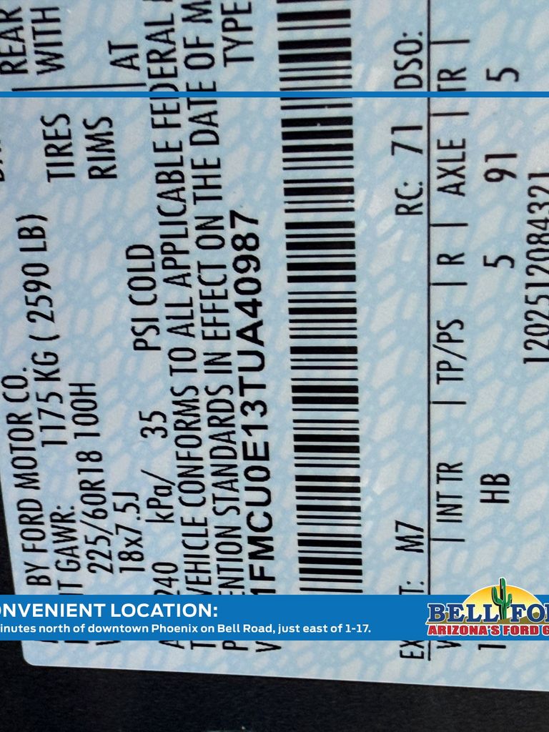 - VIN : 1FMCU0E13TUA40987