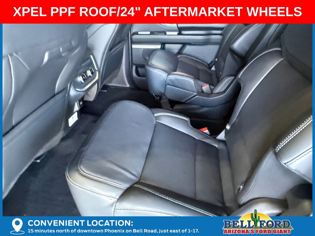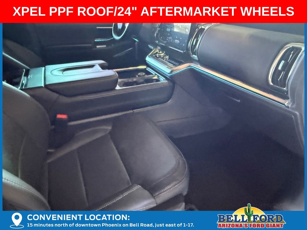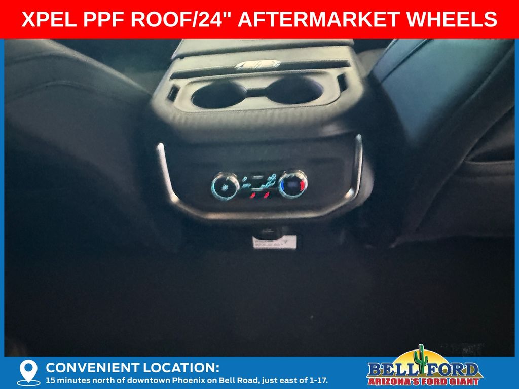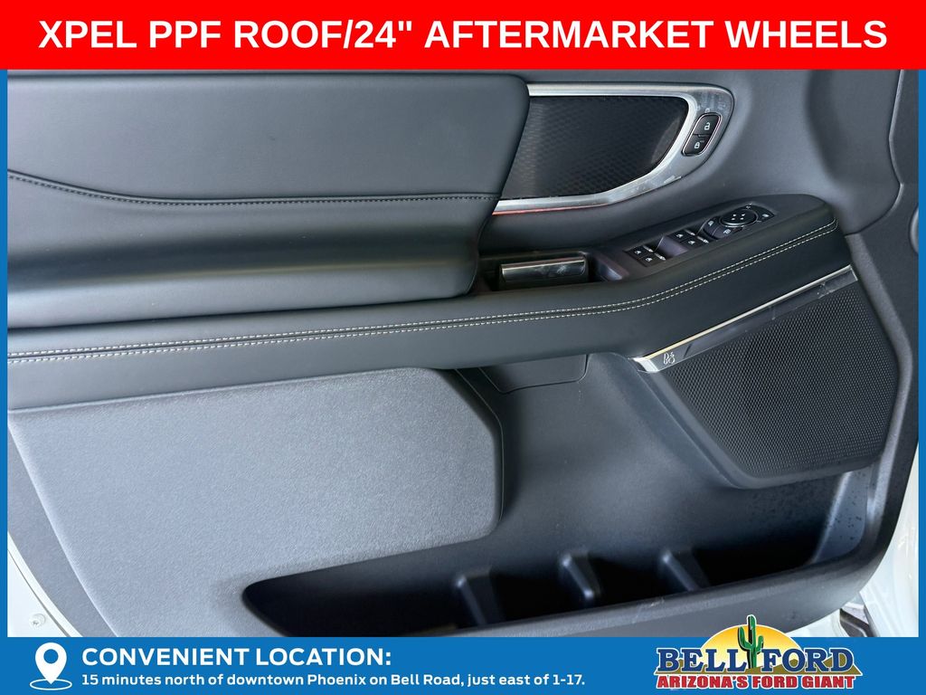 This Ford Expedition is equipped with the following options: Equipment Group 600A Standard Package (2nd Row Power-Folding Captain's Chairs, 3.73 Axle Ratio, BlueCruise Equipped (90-Day Trial), Ford Digital Experience, Heated and Ventilated Leather Front Captain's Chairs, Power Tilt/Telescopic Steering Wheel with Memory, Radio: B&O Sound System by Bang and Olufsen, SiriusXM with 360L, and Wheels: 20" x 8.5" Ebony Bright Machined Aluminum), Ford Connectivity Package (1-Year Included), Stealth Appearance Package (Black Belt Molding, Black Expedition Lettering on Hood, Black Headlamp Bezel with Ebony Trim Applique, Black Platinum Badge on Tailgate, Black Roof Rails, Carbon Black Front Bumper/Fascia, Rear Side Windows Laminated Glass, and Signature Grille Lighting), 4WD, 10 Speakers, 3rd row seats: split-bench, 4-Wheel Disc Brakes, ABS brakes, Air Conditioning, Alloy wheels, AM/FM radio: SiriusXM with 360L, Apple CarPlay/Android Auto, Auto High-beam Headlights, Auto-dimming door mirrors, Auto-dimming Rear-View mirror, Automatic temperature control, Brake assist, Bumpers: body-color, Compass, Delay-off headlights, Driver door bin, Driver vanity mirror, Dual front impact airbags, Dual front side impact airbags, Electronic Stability Control, Emergency communication system: 911 Assist, Exterior Parking Camera Rear, Four wheel independent suspension, Front anti-roll bar, Front Bucket Seats, Front Center Armrest, Front dual zone A/C, Front reading lights, Fully automatic headlights, Garage door transmitter, Genuine wood dashboard insert, Genuine wood door panel insert, Heated door mirrors, Heated front seats, Heated rear seats, Heated steering wheel, Illuminated entry, Intersection Assist, Leather steering wheel, Low tire pressure warning, Memory seat, Navigation System, Occupant sensing airbag, Outside temperature display, Overhead airbag, Overhead console, Panic alarm, Passenger door bin, Passenger vanity mirror, Power door mirrors, Power driver seat, Power moonroof: Vista Roof, Power passenger seat, Power steering, Power windows, Radio data system, Rain sensing wipers, Rear air conditioning, Rear anti-roll bar, Rear reading lights, Rear window defroster, Rear window wiper, Reclining 3rd row seat, Remote keyless entry, Security system, Speed control, Speed-sensing steering, Speed-Sensitive Wipers, Split folding rear seat, Spoiler, Steering wheel memory, Steering wheel mounted audio controls, Tachometer, Telescoping steering wheel, Tilt steering wheel, Traction control, Trip computer, Turn signal indicator mirrors, Variably intermittent wipers, Ventilated front seats, and Voltmeter. Price includes dealer added accessories totaling $8,980.