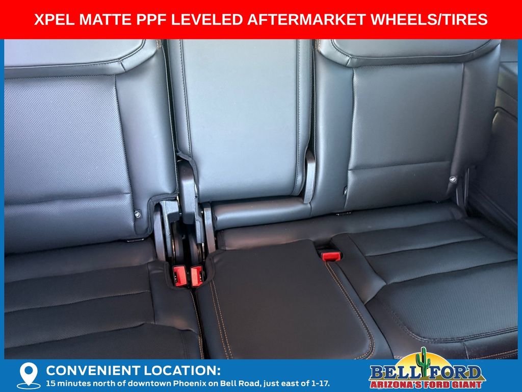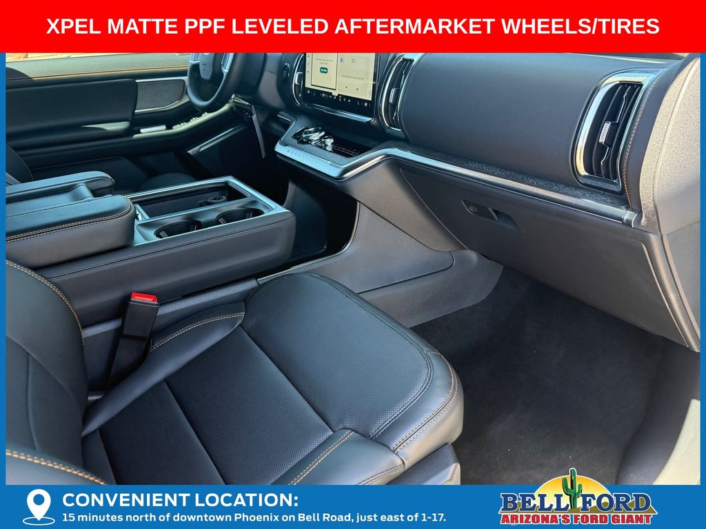 This Ford Expedition is equipped with the following options: Equipment Group 501A (2nd Row Power-Folding Captain's Chairs, 3.73 Axle Ratio, Digital Device Holder, Ford Digital Experience, Heated and Ventilated Leather Front Captain's Chairs, Radio: B&O Sound System by Bang and Olufsen, SiriusXM with 360L, and Wheels: 18" x 8.5" Dark Carbonized Gray Painted Aluminum), Ford Connectivity Package (1-Year Included), 4WD, 10 Speakers, 3rd row seats: split-bench, 4-Wheel Disc Brakes, ABS brakes, Air Conditioning, Alloy wheels, AM/FM radio: SiriusXM with 360L, Apple CarPlay/Android Auto, Auto High-beam Headlights, Auto-dimming door mirrors, Auto-dimming Rear-View mirror, Automatic temperature control, Brake assist, Bumpers: body-color, Compass, Delay-off headlights, Driver door bin, Driver vanity mirror, Dual front impact airbags, Dual front side impact airbags, Electronic Stability Control, Emergency communication system: 911 Assist, Exterior Parking Camera Rear, Four wheel independent suspension, Front anti-roll bar, Front Bucket Seats, Front Center Armrest, Front dual zone A/C, Front fog lights, Front reading lights, Fully automatic headlights, Garage door transmitter, Heated door mirrors, Heated front seats, Heated steering wheel, Illuminated entry, Leather steering wheel, Low tire pressure warning, Memory seat, Navigation System, Occupant sensing airbag, Outside temperature display, Overhead airbag, Overhead console, Panic alarm, Passenger door bin, Passenger vanity mirror, Power door mirrors, Power driver seat, Power moonroof: Vista Roof, Power passenger seat, Power steering, Power windows, Radio data system, Rain sensing wipers, Rear air conditioning, Rear anti-roll bar, Rear reading lights, Rear window defroster, Rear window wiper, Reclining 3rd row seat, Remote keyless entry, Security system, Speed control, Speed-sensing steering, Speed-Sensitive Wipers, Split folding rear seat, Spoiler, Steering wheel memory, Steering wheel mounted audio controls, Tachometer, Telescoping steering wheel, Tilt steering wheel, Traction control, Trip computer, Turn signal indicator mirrors, Variably intermittent wipers, Ventilated front seats, and Voltmeter. Price includes dealer added accessories totaling $18,541.