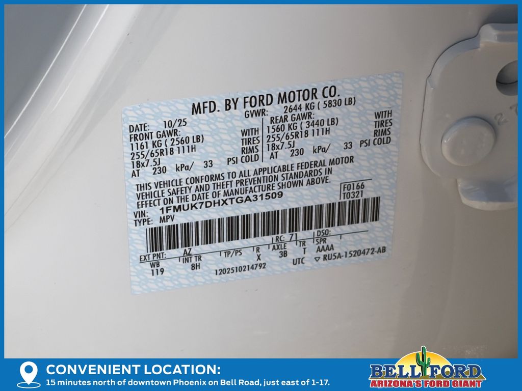 - VIN : 1FMUK7DHXTGA31509