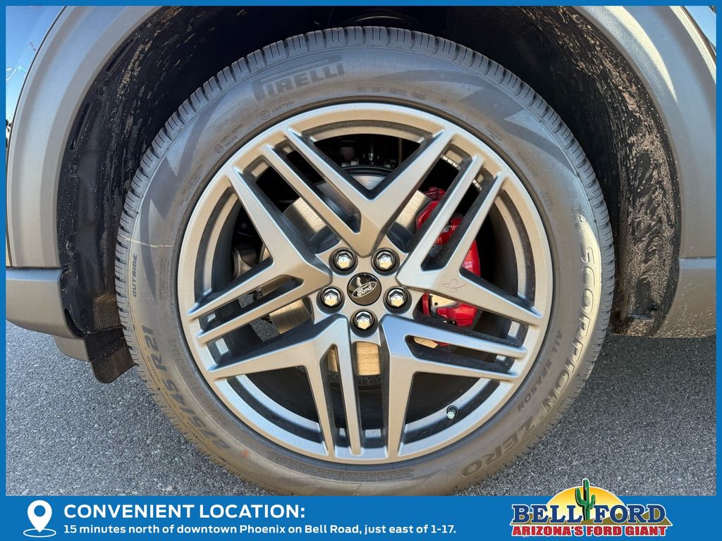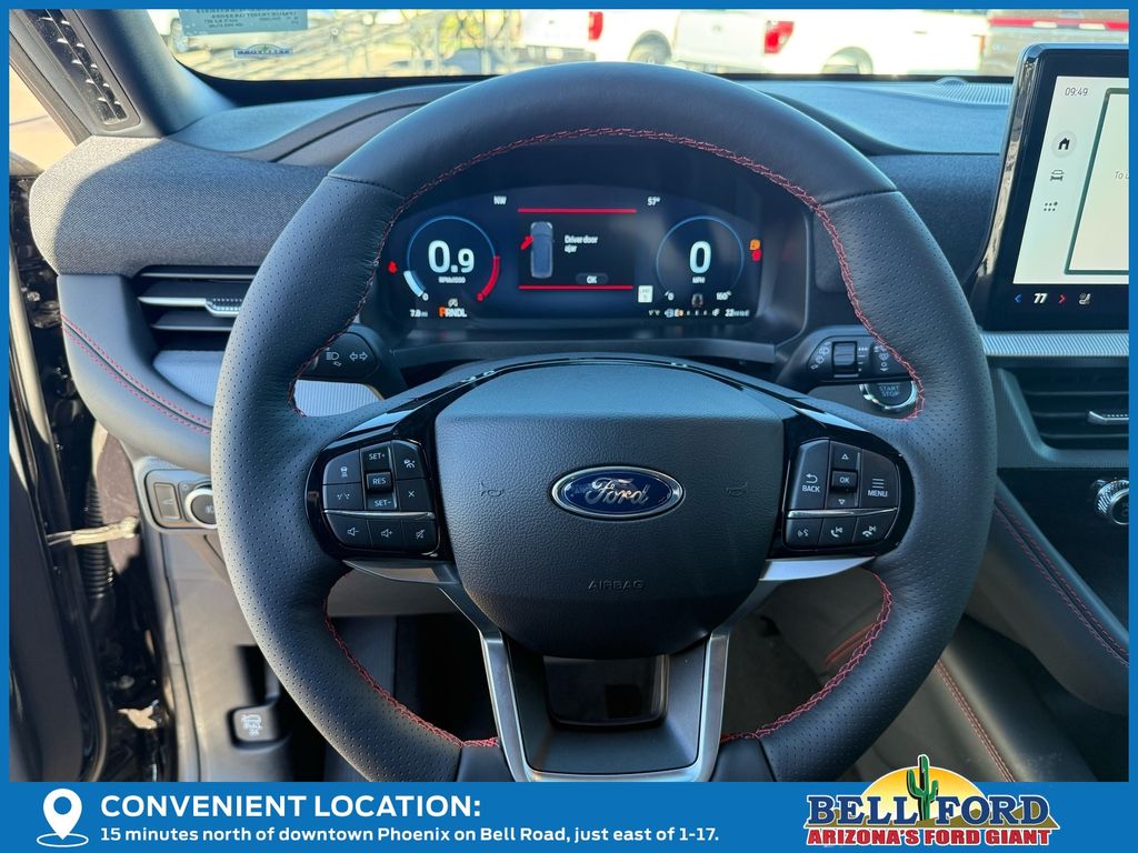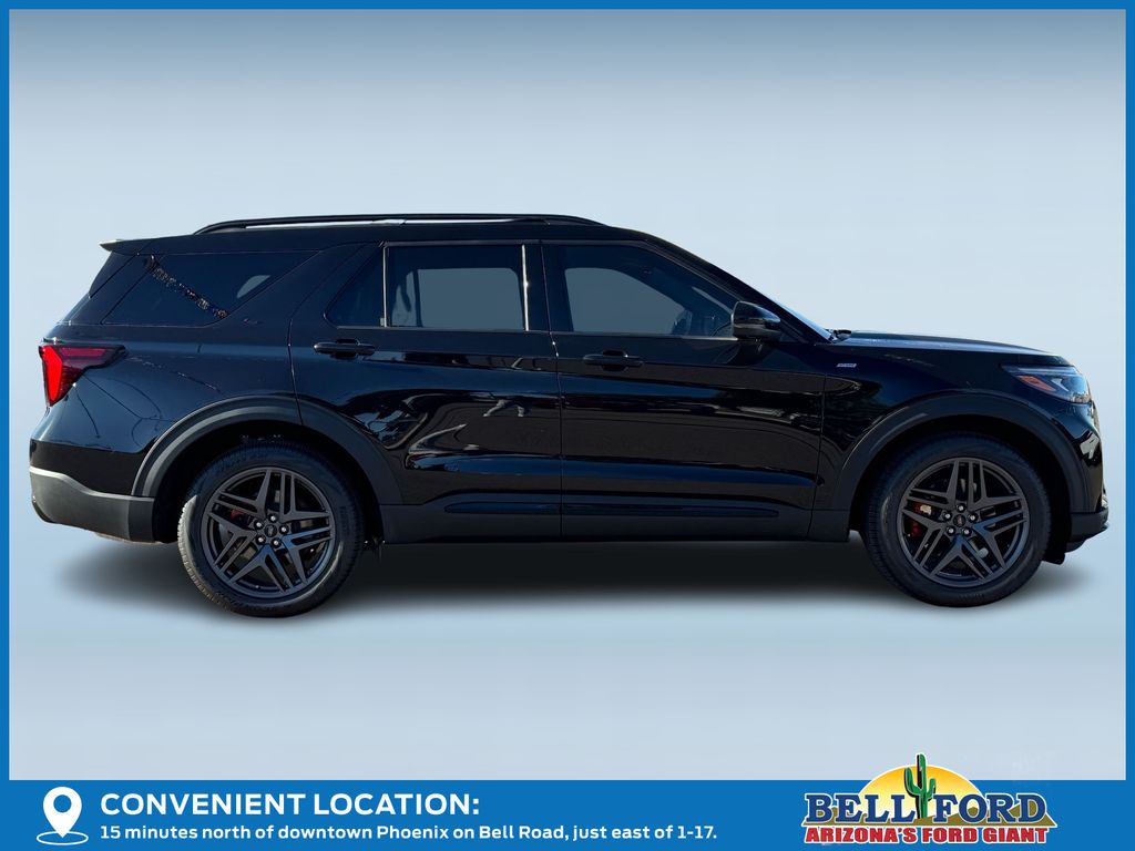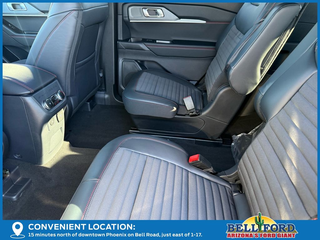 This Ford Explorer is equipped with the following options: Equipment Group 300A Standard Package (Heated Unique Cloth Captain's Chairs, Radio: B&O Sound System by Bang and Olufsen, and Wheels: 20" Ebony-Painted Machined Aluminum), Premium Package (110V/150W AC Power Outlet, 2nd Row Heated Seats, Ambient Lighting, Auto-Dimming Interior Rear-View Mirror, Manual-Folding Sideview Mirrors, Memory Driver's Seat, and Rain-Sensing Wipers (front Only)), ST-Line Street Pack (Performance Brakes, Red Painted Performance Front and Rear Brake Calipers, and Wheels: 21" Magnetite-Painted Aluminum), 10 Speakers, 2nd Row Captain's Chairs w/E-Z Entry and Armrest, 3rd row seats: bench, 4-Wheel Disc Brakes, ABS brakes, Air Conditioning, Alloy wheels, AM/FM radio: SiriusXM with 360L, Apple CarPlay/Android Auto, Auto High-beam Headlights, Automatic temperature control, Brake assist, Bumpers: body-color, Compass, Delay-off headlights, Driver door bin, Driver vanity mirror, Dual front impact airbags, Dual front side impact airbags, Electronic Stability Control, Emergency communication system: 911 Assist, Exterior Parking Camera Rear, Four wheel independent suspension, Front anti-roll bar, Front Bucket Seats, Front Center Armrest, Front dual zone A/C, Front fog lights, Front reading lights, Fully automatic headlights, Garage door transmitter, Heated door mirrors, Heated front seats, Heated steering wheel, Illuminated entry, Knee airbag, Leather steering wheel, Low tire pressure warning, Navigation System, Occupant sensing airbag, Outside temperature display, Overhead airbag, Overhead console, Panic alarm, Passenger door bin, Passenger vanity mirror, Power door mirrors, Power driver seat, Power Liftgate, Power passenger seat, Power steering, Power windows, Rear air conditioning, Rear anti-roll bar, Rear reading lights, Rear window defroster, Rear window wiper, Remote keyless entry, Security system, Speed control, Speed-sensing steering, Speed-Sensitive Wipers, Split folding rear seat, Spoiler, Steering wheel mounted audio controls, Tachometer, Telescoping steering wheel, Tilt steering wheel, Traction control, Trip computer, and Variably intermittent wipers. Price includes: $1000 - Retail Bonus Cash. Exp. 03/31/2026 $2500 - Retail Customer Cash. Exp. 03/31/2026