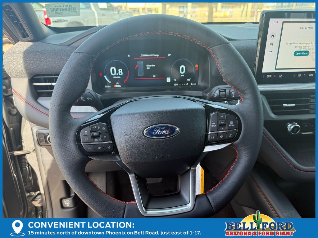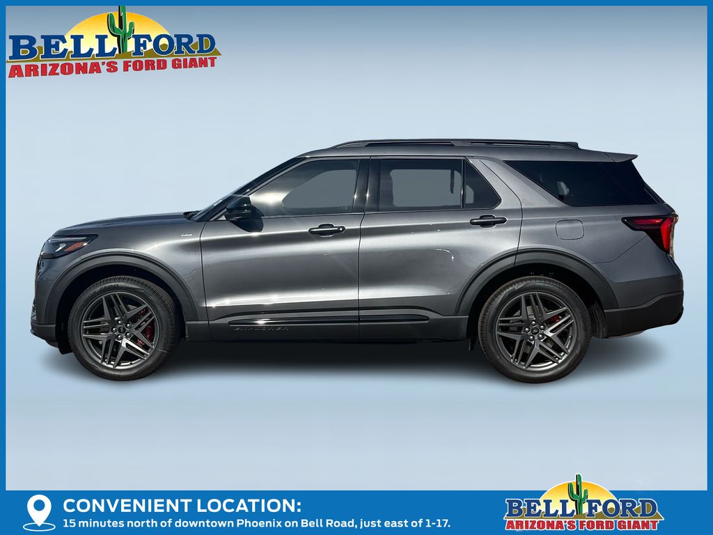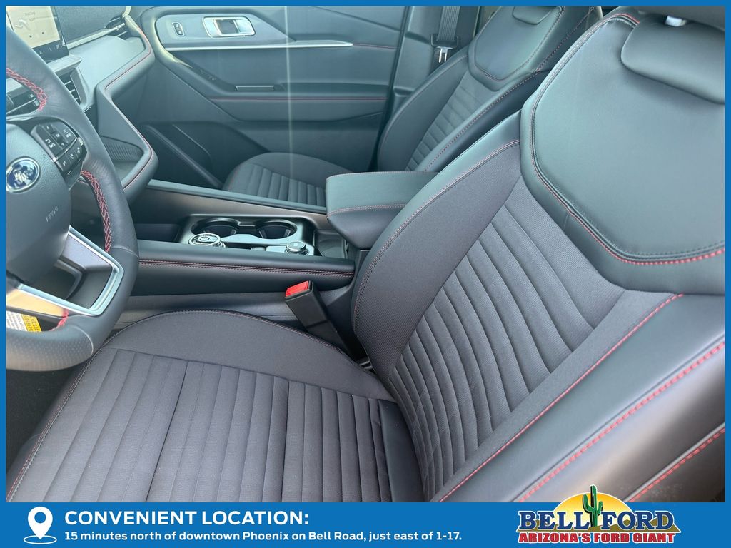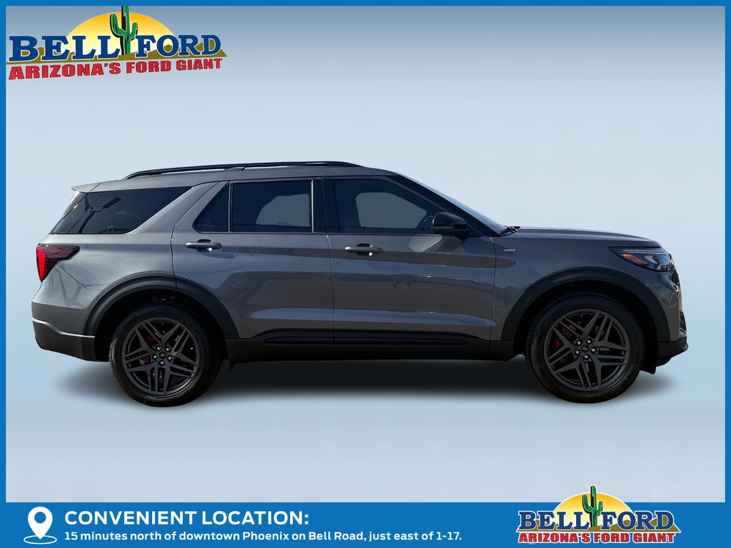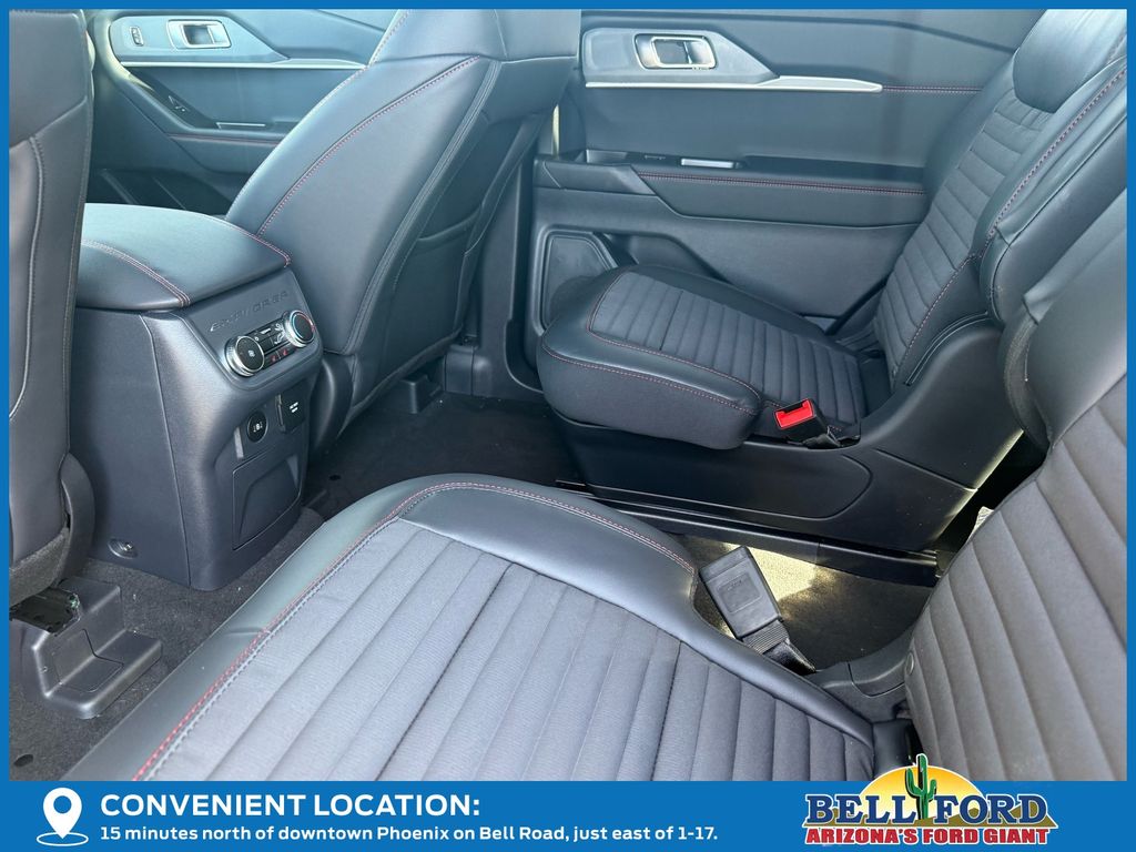 This Ford Explorer is equipped with the following options: Equipment Group 300A Standard Package (Heated Unique Cloth Captain's Chairs, Radio: B&O Sound System by Bang and Olufsen, and Wheels: 20" Ebony-Painted Machined Aluminum), Premium Package (110V/150W AC Power Outlet, 2nd Row Heated Seats, Ambient Lighting, Auto-Dimming Interior Rear-View Mirror, Manual-Folding Sideview Mirrors, Memory Driver's Seat, and Rain-Sensing Wipers (front Only)), ST-Line Street Pack (Performance Brakes, Red Painted Performance Front and Rear Brake Calipers, and Wheels: 21" Magnetite-Painted Aluminum), 4WD, 10 Speakers, 2nd Row Captain's Chairs w/E-Z Entry and Armrest, 3rd row seats: bench, 4-Wheel Disc Brakes, ABS brakes, Air Conditioning, Alloy wheels, AM/FM radio: SiriusXM with 360L, Apple CarPlay/Android Auto, Auto High-beam Headlights, Automatic temperature control, Brake assist, Bumpers: body-color, Compass, Delay-off headlights, Driver door bin, Driver vanity mirror, Dual front impact airbags, Dual front side impact airbags, Electronic Stability Control, Emergency communication system: 911 Assist, Exterior Parking Camera Rear, Four wheel independent suspension, Front anti-roll bar, Front Bucket Seats, Front Center Armrest, Front dual zone A/C, Front fog lights, Front reading lights, Fully automatic headlights, Garage door transmitter, Heated door mirrors, Heated front seats, Heated steering wheel, Illuminated entry, Knee airbag, Leather steering wheel, Low tire pressure warning, Navigation System, Occupant sensing airbag, Outside temperature display, Overhead airbag, Overhead console, Panic alarm, Panoramic Fixed Glass Roof with Power Shade, Passenger door bin, Passenger vanity mirror, Power door mirrors, Power driver seat, Power Liftgate, Power passenger seat, Power steering, Power windows, Rear air conditioning, Rear anti-roll bar, Rear reading lights, Rear window defroster, Rear window wiper, Remote keyless entry, Security system, Speed control, Speed-sensing steering, Speed-Sensitive Wipers, Split folding rear seat, Spoiler, Steering wheel mounted audio controls, Tachometer, Telescoping steering wheel, Tilt steering wheel, Traction control, Trip computer, and Variably intermittent wipers. Price includes: $2500 - Retail Customer Cash. Exp. 03/31/2026