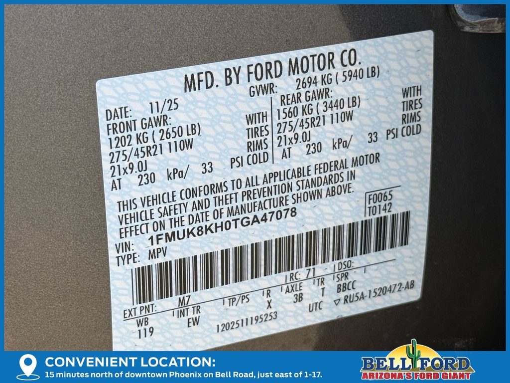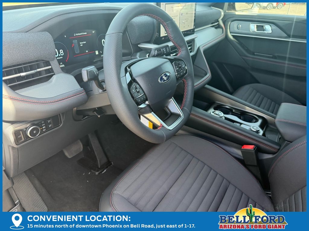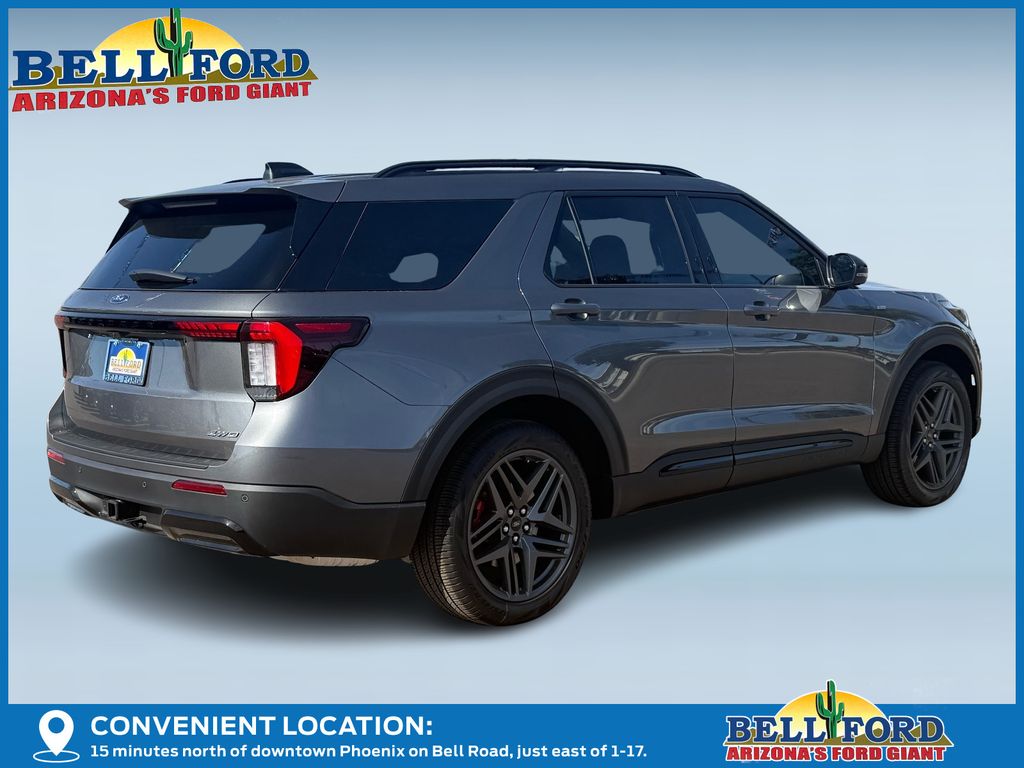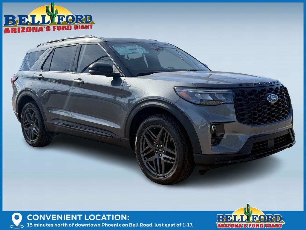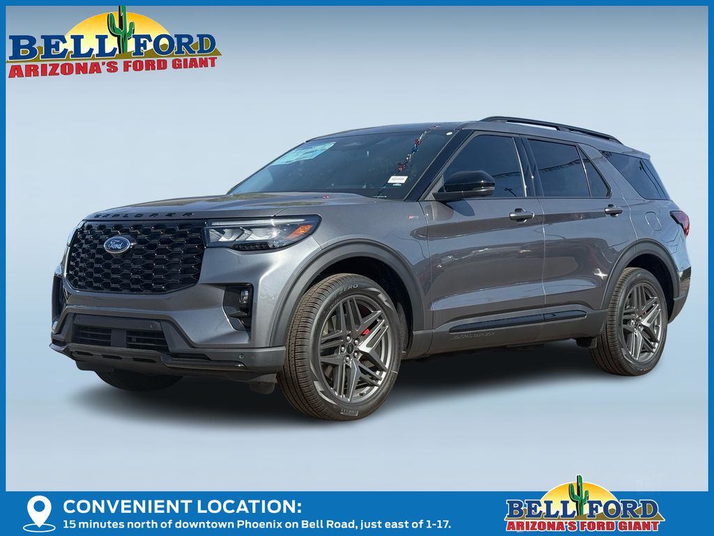 This Ford Explorer is equipped with the following options: Equipment Group 300A Standard Package (Heated Unique Cloth Captain's Chairs, Radio: B&O Sound System by Bang and Olufsen, and Wheels: 20" Ebony-Painted Machined Aluminum), Premium Package (110V/150W AC Power Outlet, 2nd Row Heated Seats, Ambient Lighting, Auto-Dimming Interior Rear-View Mirror, Manual-Folding Sideview Mirrors, Memory Driver's Seat, and Rain-Sensing Wipers (front Only)), ST-Line Street Pack (Performance Brakes, Red Painted Performance Front and Rear Brake Calipers, and Wheels: 21" Magnetite-Painted Aluminum), 4WD, 10 Speakers, 2nd Row Captain's Chairs w/E-Z Entry and Armrest, 3rd row seats: bench, 4-Wheel Disc Brakes, ABS brakes, Air Conditioning, Alloy wheels, AM/FM radio: SiriusXM with 360L, Apple CarPlay/Android Auto, Auto High-beam Headlights, Automatic temperature control, Brake assist, Bumpers: body-color, Compass, Delay-off headlights, Driver door bin, Driver vanity mirror, Dual front impact airbags, Dual front side impact airbags, Electronic Stability Control, Emergency communication system: 911 Assist, Exterior Parking Camera Rear, Four wheel independent suspension, Front anti-roll bar, Front Bucket Seats, Front Center Armrest, Front dual zone A/C, Front fog lights, Front reading lights, Fully automatic headlights, Garage door transmitter, Heated door mirrors, Heated front seats, Heated steering wheel, Illuminated entry, Knee airbag, Leather steering wheel, Low tire pressure warning, Navigation System, Occupant sensing airbag, Outside temperature display, Overhead airbag, Overhead console, Panic alarm, Panoramic Fixed Glass Roof with Power Shade, Passenger door bin, Passenger vanity mirror, Power door mirrors, Power driver seat, Power Liftgate, Power passenger seat, Power steering, Power windows, Rear air conditioning, Rear anti-roll bar, Rear reading lights, Rear window defroster, Rear window wiper, Remote keyless entry, Security system, Speed control, Speed-sensing steering, Speed-Sensitive Wipers, Split folding rear seat, Spoiler, Steering wheel mounted audio controls, Tachometer, Telescoping steering wheel, Tilt steering wheel, Traction control, Trip computer, and Variably intermittent wipers. Price includes: $2500 - Retail Customer Cash. Exp. 03/31/2026