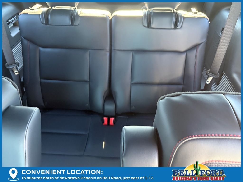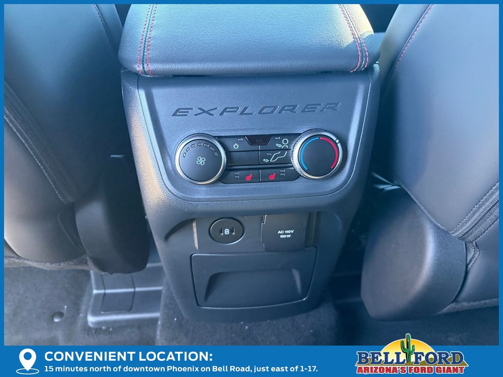 This Ford Explorer is equipped with the following options: Equipment Group 400A Standard Package (Heated/Ventilated Miko Captain's Chairs, Radio: B&O Sound System by Bang and Olufsen, and Wheels: 21" Magnetite-Painted Aluminum), Sun and Sound Package (Multicontour Seats with Front Active Motion, Panoramic Fixed Glass Roof with Power Shade, Radio: B&O Sound System by Bang & Olufsen, and Remote Control Front Windows), 4WD, 10 Speakers, 3rd row seats: bench, 4-Wheel Disc Brakes, ABS brakes, Air Conditioning, Alloy wheels, AM/FM radio: SiriusXM with 360L, Apple CarPlay/Android Auto, Auto High-beam Headlights, Auto-dimming door mirrors, Auto-dimming Rear-View mirror, Automatic temperature control, Brake assist, Bumpers: body-color, Compass, Delay-off headlights, Driver door bin, Driver vanity mirror, Dual front impact airbags, Dual front side impact airbags, Electronic Stability Control, Emergency communication system: 911 Assist, Exterior Parking Camera Rear, Four wheel independent suspension, Front anti-roll bar, Front Bucket Seats, Front Center Armrest, Front dual zone A/C, Front fog lights, Front reading lights, Fully automatic headlights, Garage door transmitter, Heated door mirrors, Heated front seats, Heated rear seats, Heated steering wheel, Illuminated entry, Internet access capable: FordPass Connect 5G, Knee airbag, Leather steering wheel, Low tire pressure warning, Memory seat, Navigation System, Occupant sensing airbag, Outside temperature display, Overhead airbag, Overhead console, Panic alarm, Passenger door bin, Passenger vanity mirror, Power door mirrors, Power driver seat, Power Liftgate, Power passenger seat, Power steering, Power windows, Rain sensing wipers, Rear air conditioning, Rear anti-roll bar, Rear reading lights, Rear window defroster, Rear window wiper, Remote keyless entry, Security system, Speed control, Speed-sensing steering, Speed-Sensitive Wipers, Split folding rear seat, Spoiler, Sport steering wheel, Steering wheel mounted audio controls, Tachometer, Telescoping steering wheel, Tilt steering wheel, Traction control, Trip computer, Turn signal indicator mirrors, Variably intermittent wipers, and Ventilated front seats. Price includes: $2500 - Retail Customer Cash. Exp. 03/31/2026