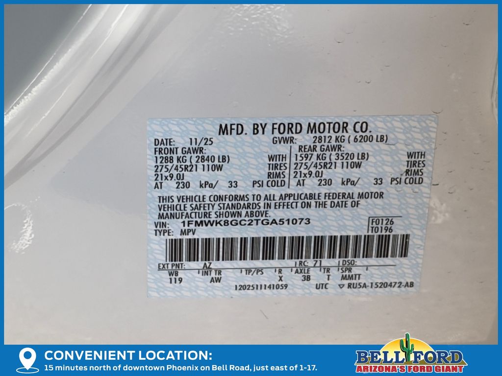 - VIN : 1FMWK8GC2TGA51073