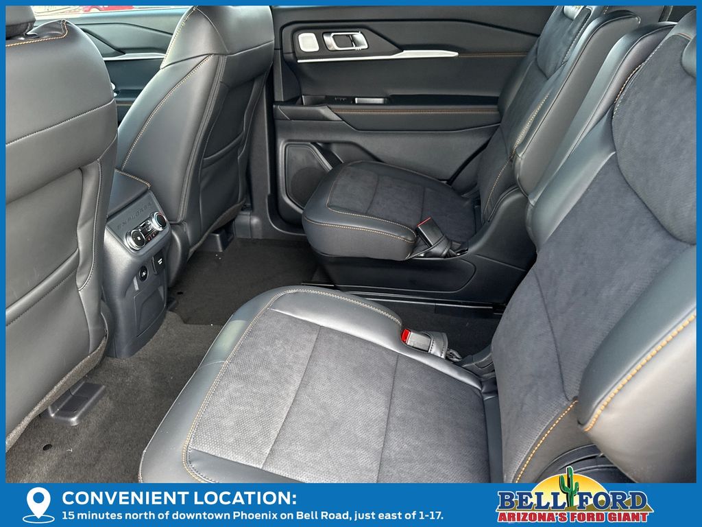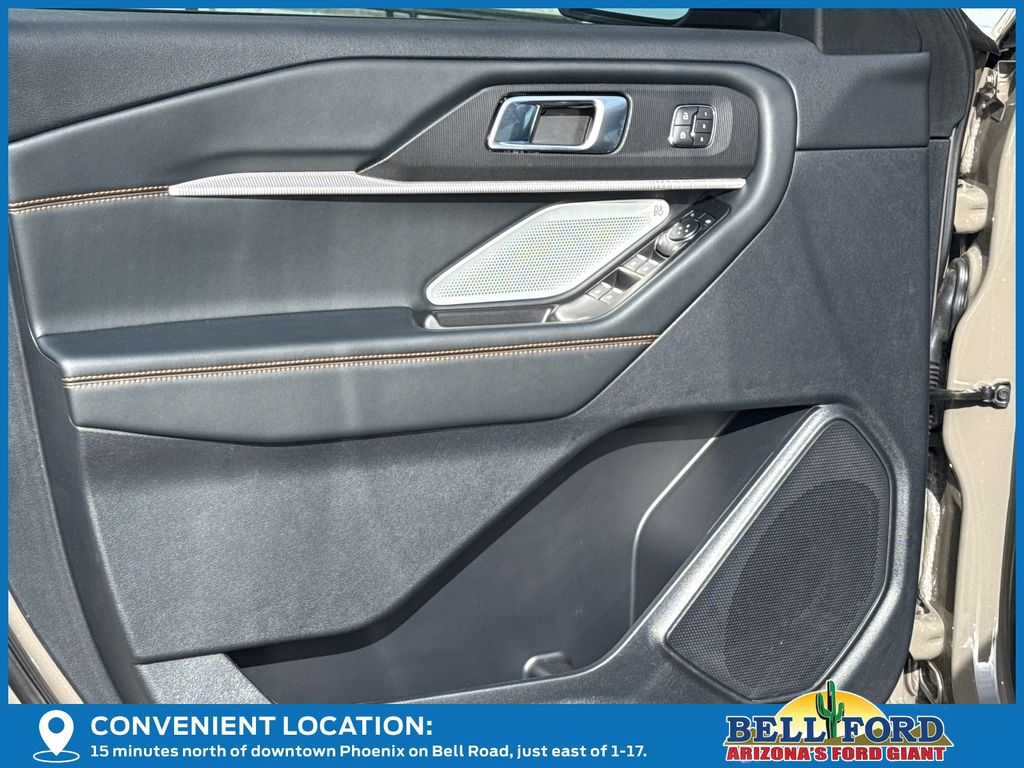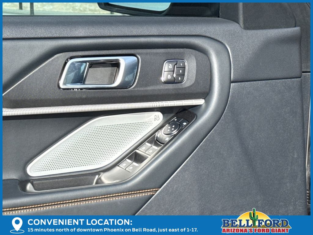 This Ford Explorer is equipped with the following options: Equipment Group 800A Standard Package (Heated/Ventilated Miko Suede Captain's Chairs, Radio: B&O Sound System by Bang and Olufsen, and Wheels: 18" High Gloss Black-Painted Aluminum), Tremor Ultimate Package (3rd Row PowerFold Seats, Ambient Lighting, Memory Driver's Seat, Multicontour Seats with Front Active Motion, Panoramic Fixed Glass Roof with Power Shade, Power-Folding with Autofold Side Mirrors, Radio: B&O Sound System by Bang & Olufsen, and Rain-Sensing Wipers (front Only)), 4WD, 10 Speakers, 3rd row seats: bench, 4-Wheel Disc Brakes, ABS brakes, Air Conditioning, Alloy wheels, AM/FM radio: SiriusXM with 360L, Apple CarPlay/Android Auto, Auto High-beam Headlights, Automatic temperature control, BlueCruise Hardware, Brake assist, Bumpers: body-color, Compass, Delay-off headlights, Driver door bin, Driver vanity mirror, Dual front impact airbags, Dual front side impact airbags, Electronic Stability Control, Emergency communication system: 911 Assist, Exterior Parking Camera Rear, Four wheel independent suspension, Front anti-roll bar, Front Bucket Seats, Front Center Armrest, Front dual zone A/C, Front fog lights, Front reading lights, Fully automatic headlights, Garage door transmitter, Heated door mirrors, Heated front seats, Heated rear seats, Heated steering wheel, Illuminated entry, Knee airbag, Leather steering wheel, Low tire pressure warning, Navigation System, Occupant sensing airbag, Outside temperature display, Overhead airbag, Overhead console, Panic alarm, Passenger door bin, Passenger vanity mirror, Power door mirrors, Power driver seat, Power Liftgate, Power passenger seat, Power steering, Power windows, Rear air conditioning, Rear anti-roll bar, Rear reading lights, Rear window defroster, Rear window wiper, Remote keyless entry, Security system, Speed control, Speed-sensing steering, Speed-Sensitive Wipers, Split folding rear seat, Spoiler, Sport steering wheel, Steering wheel mounted audio controls, Tachometer, Telescoping steering wheel, Tilt steering wheel, Traction control, Trip computer, Variably intermittent wipers, and Ventilated front seats. Price includes: $3500 - Retail Customer Cash. Exp. 04/30/2026