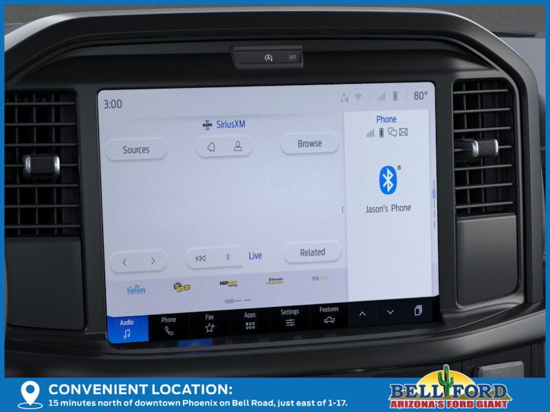 This Ford F-150 is equipped with the following options: Equipment Group 200A Mid (12" Cluster Display, 3.55 Axle Ratio, LED Fog Lamps with LED Cornering Lamp, Radio: AM/FM Stereo with SiriusXM 360L, SYNC 4 with Enhanced Voice Recognition, Unique Sport Cloth 40/Console/40 Front-Seats, and Wheels: 20" Dark Gray Aluminum), Ford Connectivity Package (1-Year Included), GVWR: 6,650 lbs Payload Package, Internet access capable: 5G Modem - Ford Connectivity Package, 4WD, 4-Wheel Disc Brakes, 6 Speakers, ABS brakes, Air Conditioning, Alloy wheels, AM/FM radio: SiriusXM with 360L, Auto High-beam Headlights, Brake assist, Bumpers: body-color, Compass, Delay-off headlights, Driver door bin, Dual front impact airbags, Dual front side impact airbags, Electronic Stability Control, Emergency communication system: SYNC 4 911 Assist, Front anti-roll bar, Front Bucket Seats, Front Center Armrest, Front reading lights, Front wheel independent suspension, Fully automatic headlights, Heated door mirrors, Illuminated entry, Low tire pressure warning, Occupant sensing airbag, Outside temperature display, Overhead airbag, Overhead console, Panic alarm, Passenger door bin, Passenger vanity mirror, Power door mirrors, Power steering, Power windows, Radio data system, Rear Parking Sensors, Rear step bumper, Rear window defroster, Remote keyless entry, Security system, Speed control, Split folding rear seat, Steering wheel mounted audio controls, Tachometer, Telescoping steering wheel, Tilt steering wheel, Traction control, Trip computer, Variably intermittent wipers, and Wheels: 18" Gloss Black. Price includes: $2000 - Retail Customer Cash. Exp. 03/31/2026