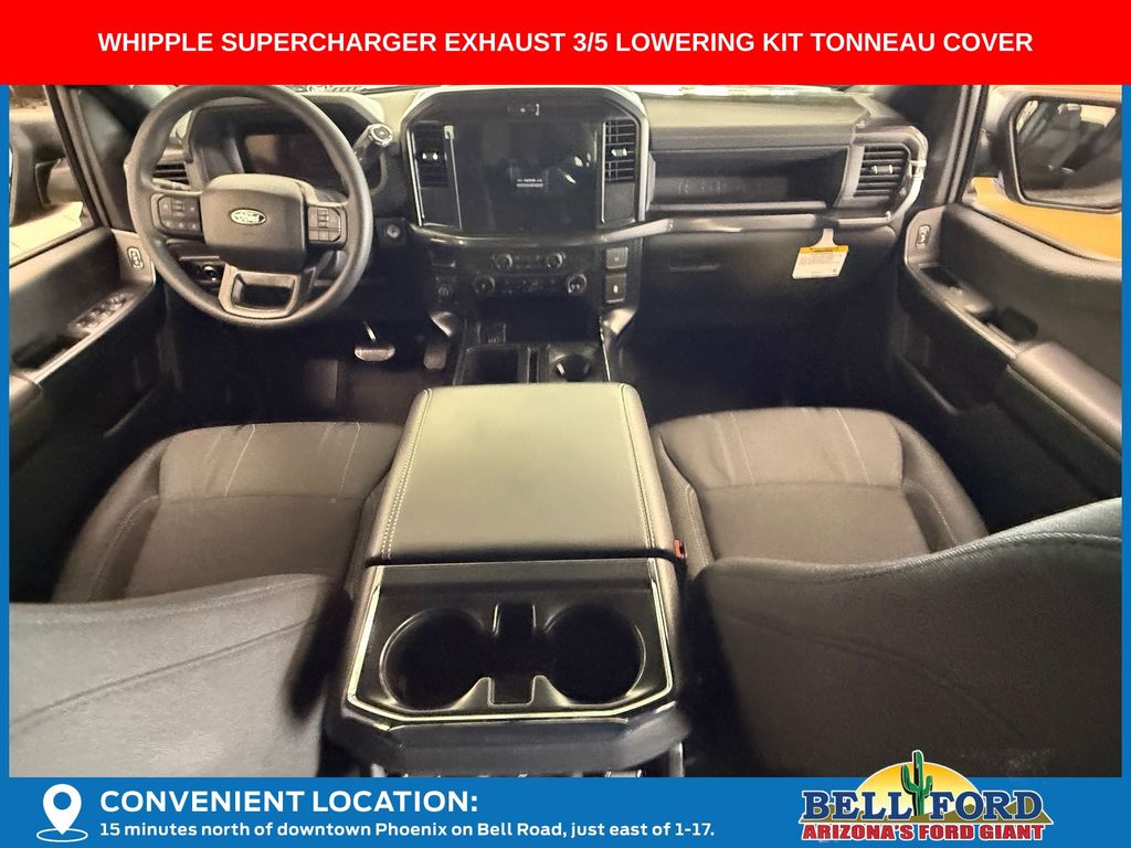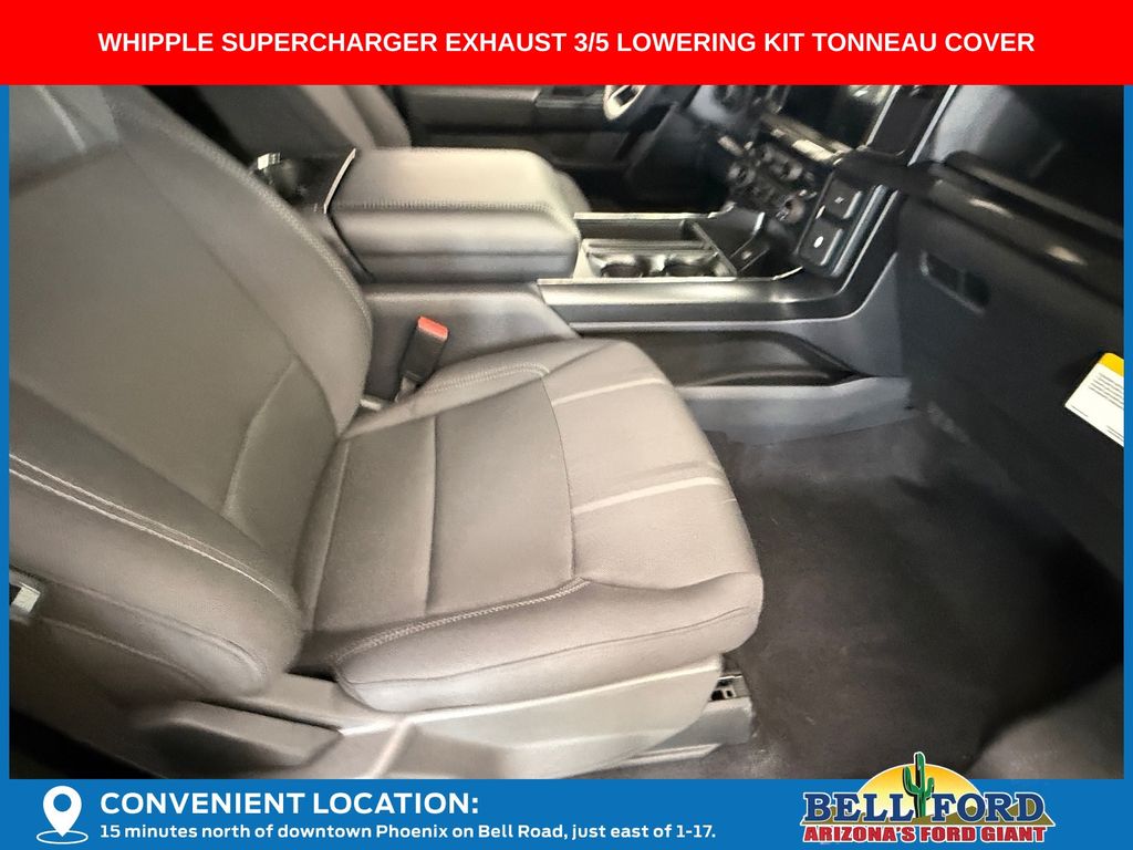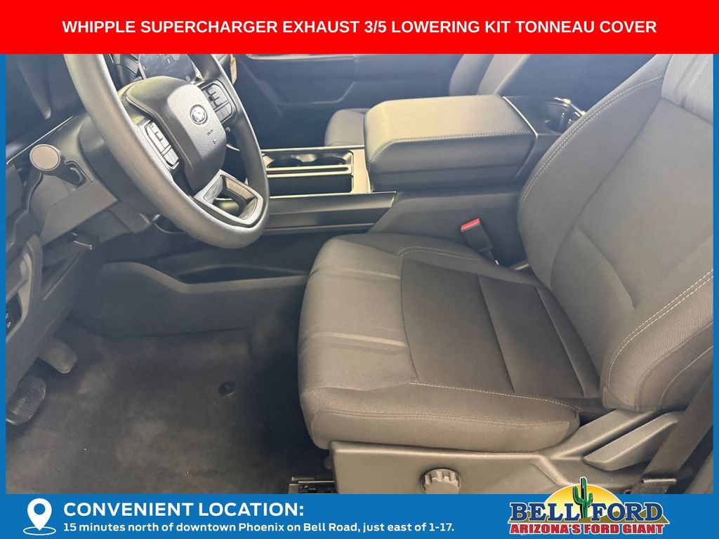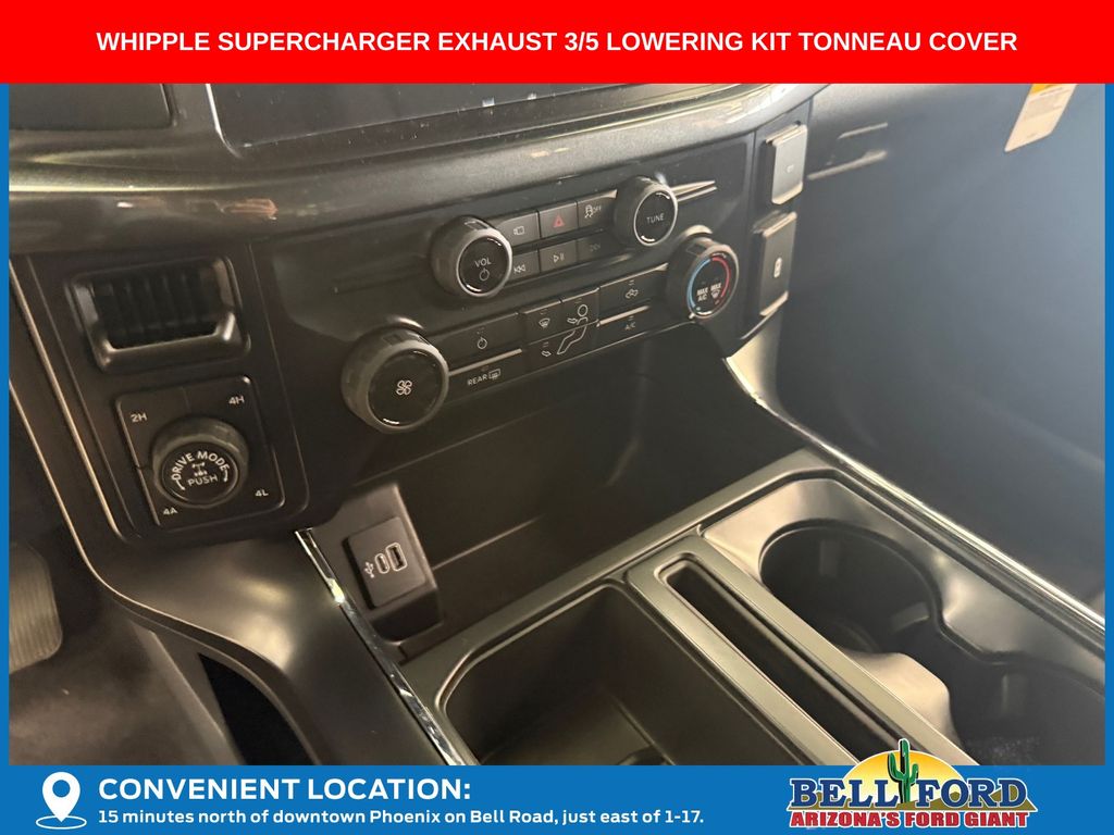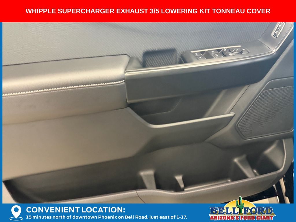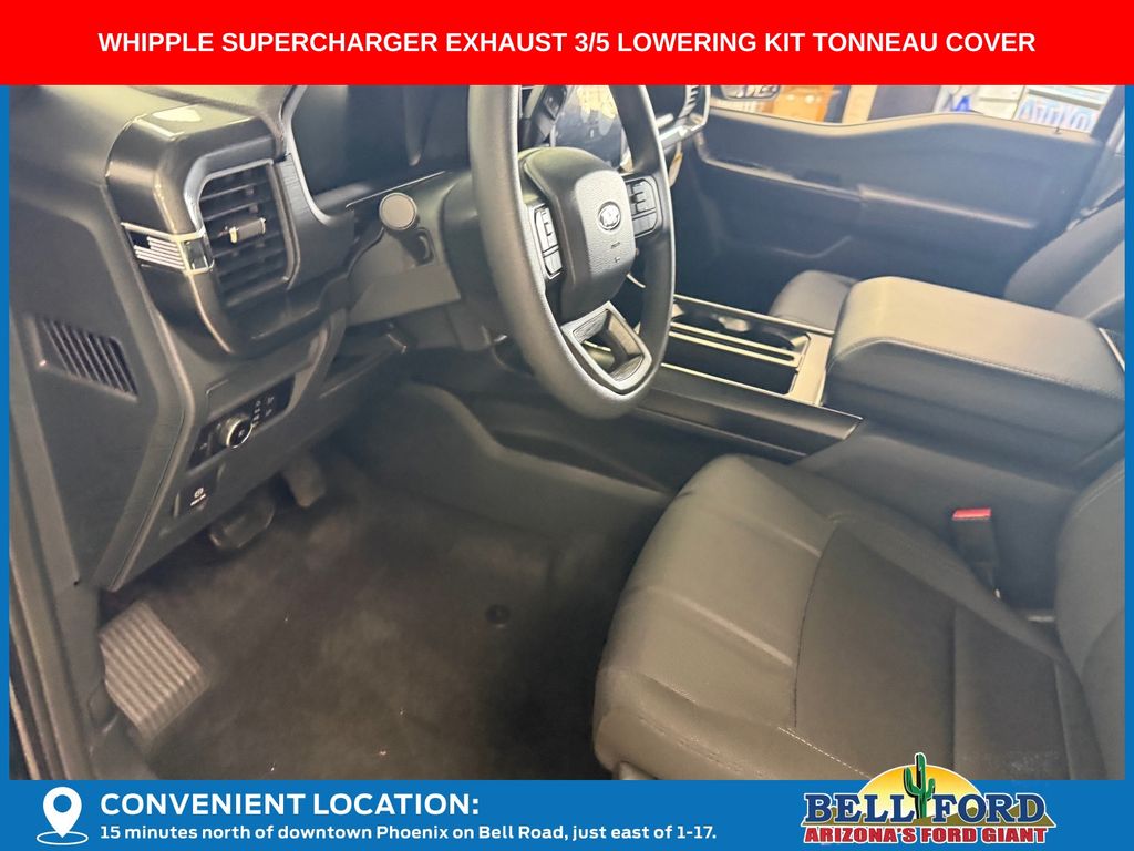 This Ford F-150 is equipped with the following options: F-150 Lobo Package (Dual Exhaust with Black Tips, Lower Body Ground Effects, Painted Grille, Signature Lighting, Two-Speed Automatic 4WD with Neutral Towing Capability, and Wheels: 22" Aluminum), Ford Connectivity Package (1-Year Included), GVWR: 6,650 lbs Payload Package, Internet access capable: 5G Modem - Ford Connectivity Package, 4WD, 4-Wheel Disc Brakes, 6 Speakers, ABS brakes, Air Conditioning, Alloy wheels, AM/FM radio: SiriusXM with 360L, Auto High-beam Headlights, Brake assist, Bumpers: body-color, Compass, Delay-off headlights, Driver door bin, Dual front impact airbags, Dual front side impact airbags, Electronic Stability Control, Emergency communication system: SYNC 4 911 Assist, Front anti-roll bar, Front Bucket Seats, Front Center Armrest, Front reading lights, Front wheel independent suspension, Fully automatic headlights, Heated door mirrors, Illuminated entry, Low tire pressure warning, Occupant sensing airbag, Outside temperature display, Overhead airbag, Overhead console, Panic alarm, Passenger door bin, Passenger vanity mirror, Power door mirrors, Power steering, Power windows, Radio data system, Radio: AM/FM Stereo with SiriusXM 360L, Rear step bumper, Rear window defroster, Remote keyless entry, Security system, Speed control, Split folding rear seat, Steering wheel mounted audio controls, SYNC 4 with Enhanced Voice Recognition, Tachometer, Telescoping steering wheel, Tilt steering wheel, Traction control, Trip computer, Unique Sport Cloth 40/Console/40 Front-Seats, Variably intermittent wipers, and Wheels: 18" Gloss Black. Price includes dealer added accessories totaling $34,369.