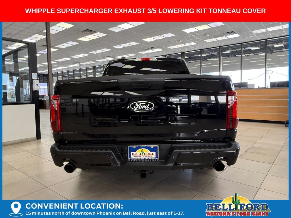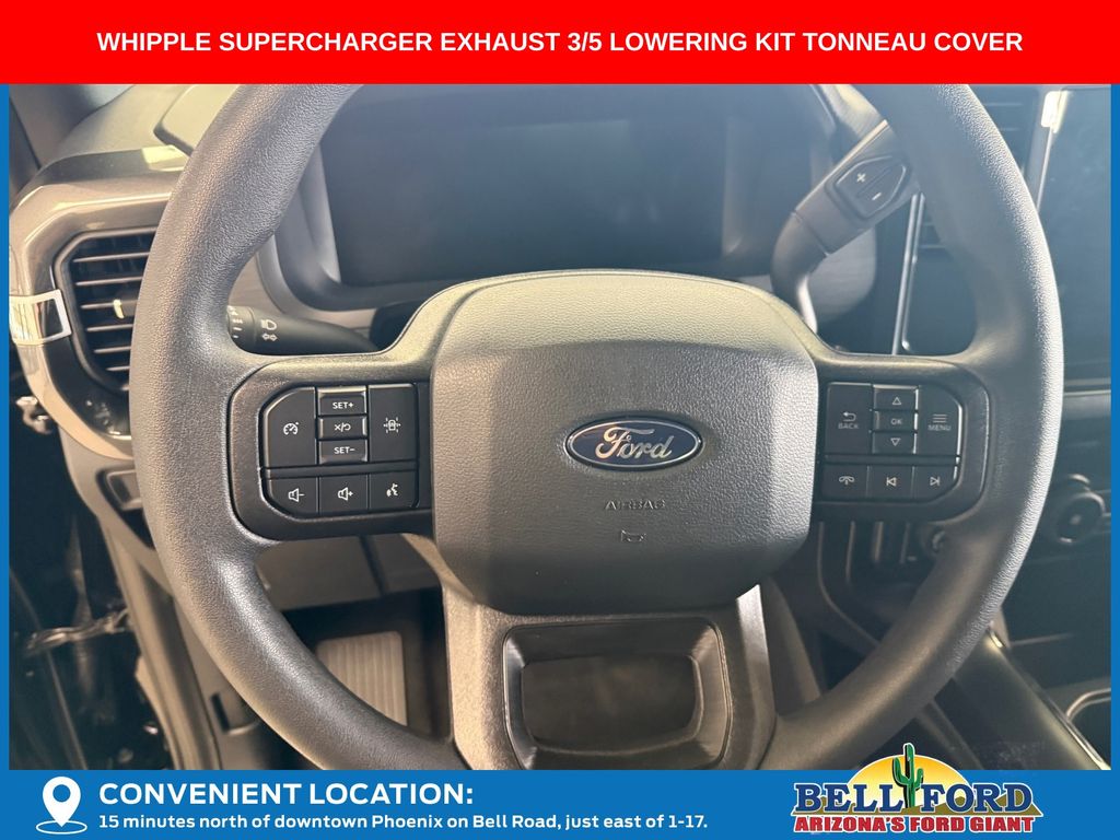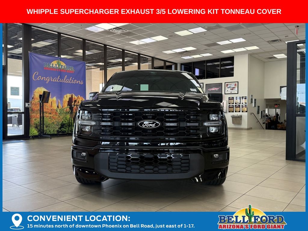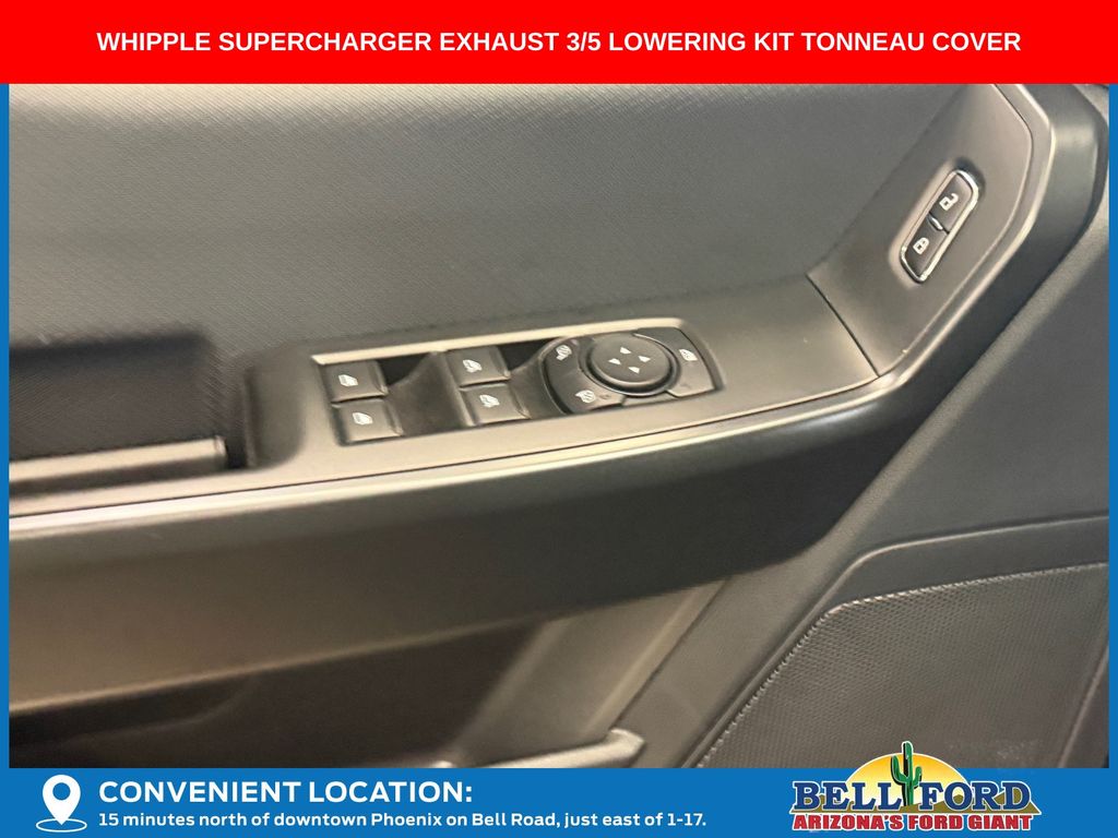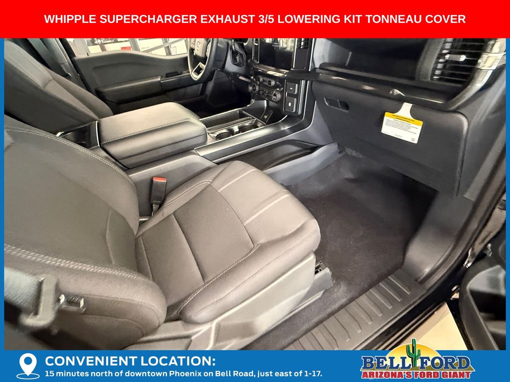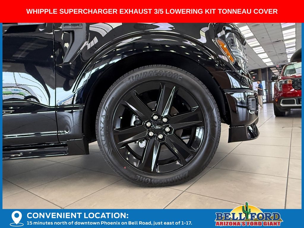 This Ford F-150 is equipped with the following options: F-150 Lobo Package (Dual Exhaust with Black Tips, Lower Body Ground Effects, Painted Grille, Signature Lighting, Two-Speed Automatic 4WD with Neutral Towing Capability, and Wheels: 22" Aluminum), Ford Connectivity Package (1-Year Included), GVWR: 6,650 lbs Payload Package, Internet access capable: 5G Modem - Ford Connectivity Package, 4WD, 4-Wheel Disc Brakes, 6 Speakers, ABS brakes, Air Conditioning, Alloy wheels, AM/FM radio: SiriusXM with 360L, Auto High-beam Headlights, Brake assist, Bumpers: body-color, Compass, Delay-off headlights, Driver door bin, Dual front impact airbags, Dual front side impact airbags, Electronic Stability Control, Emergency communication system: SYNC 4 911 Assist, Front anti-roll bar, Front Bucket Seats, Front Center Armrest, Front reading lights, Front wheel independent suspension, Fully automatic headlights, Heated door mirrors, Illuminated entry, Low tire pressure warning, Occupant sensing airbag, Outside temperature display, Overhead airbag, Overhead console, Panic alarm, Passenger door bin, Passenger vanity mirror, Power door mirrors, Power steering, Power windows, Radio data system, Radio: AM/FM Stereo with SiriusXM 360L, Rear step bumper, Rear window defroster, Remote keyless entry, Security system, Speed control, Split folding rear seat, Steering wheel mounted audio controls, SYNC 4 with Enhanced Voice Recognition, Tachometer, Telescoping steering wheel, Tilt steering wheel, Traction control, Trip computer, Unique Sport Cloth 40/Console/40 Front-Seats, Variably intermittent wipers, and Wheels: 18" Gloss Black. Price includes dealer added accessories totaling $34,369.