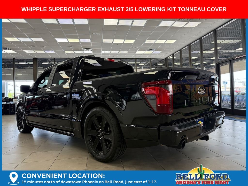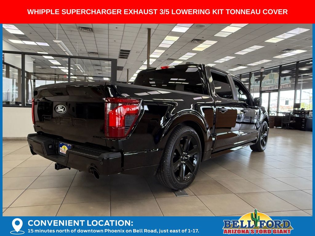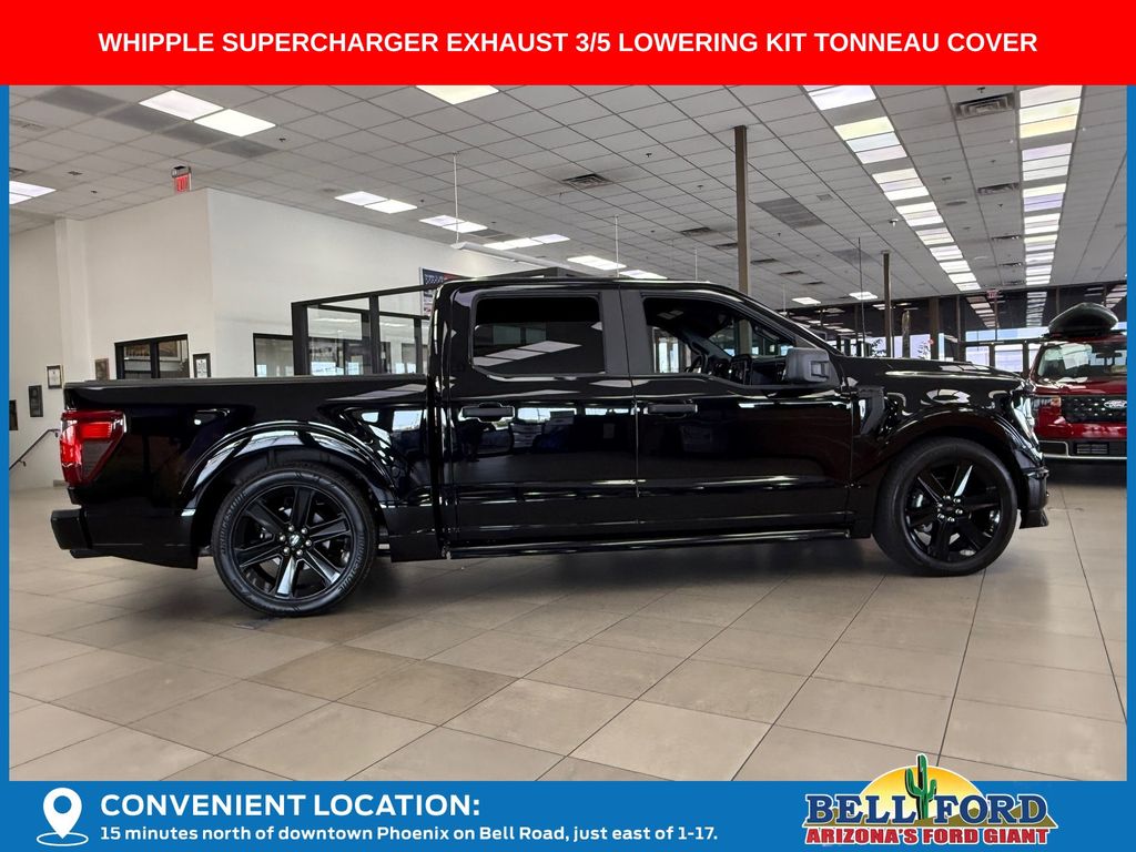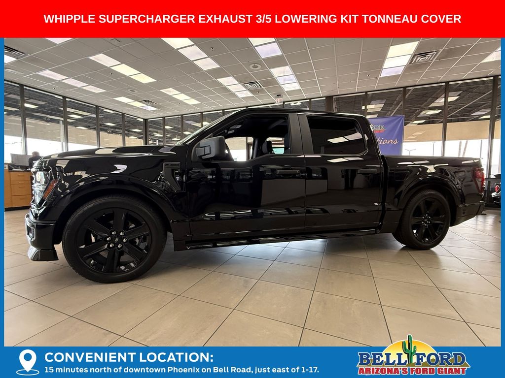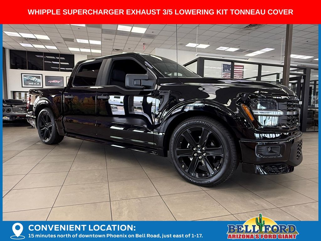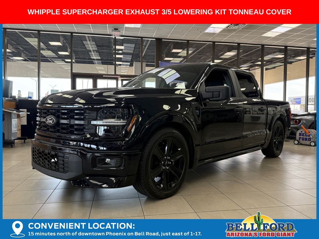 This Ford F-150 is equipped with the following options: F-150 Lobo Package (Dual Exhaust with Black Tips, Lower Body Ground Effects, Painted Grille, Signature Lighting, Two-Speed Automatic 4WD with Neutral Towing Capability, and Wheels: 22" Aluminum), Ford Connectivity Package (1-Year Included), GVWR: 6,650 lbs Payload Package, Internet access capable: 5G Modem - Ford Connectivity Package, 4WD, 4-Wheel Disc Brakes, 6 Speakers, ABS brakes, Air Conditioning, Alloy wheels, AM/FM radio: SiriusXM with 360L, Auto High-beam Headlights, Brake assist, Bumpers: body-color, Compass, Delay-off headlights, Driver door bin, Dual front impact airbags, Dual front side impact airbags, Electronic Stability Control, Emergency communication system: SYNC 4 911 Assist, Front anti-roll bar, Front Bucket Seats, Front Center Armrest, Front reading lights, Front wheel independent suspension, Fully automatic headlights, Heated door mirrors, Illuminated entry, Low tire pressure warning, Occupant sensing airbag, Outside temperature display, Overhead airbag, Overhead console, Panic alarm, Passenger door bin, Passenger vanity mirror, Power door mirrors, Power steering, Power windows, Radio data system, Radio: AM/FM Stereo with SiriusXM 360L, Rear step bumper, Rear window defroster, Remote keyless entry, Security system, Speed control, Split folding rear seat, Steering wheel mounted audio controls, SYNC 4 with Enhanced Voice Recognition, Tachometer, Telescoping steering wheel, Tilt steering wheel, Traction control, Trip computer, Unique Sport Cloth 40/Console/40 Front-Seats, Variably intermittent wipers, and Wheels: 18" Gloss Black. Price includes dealer added accessories totaling $34,369.