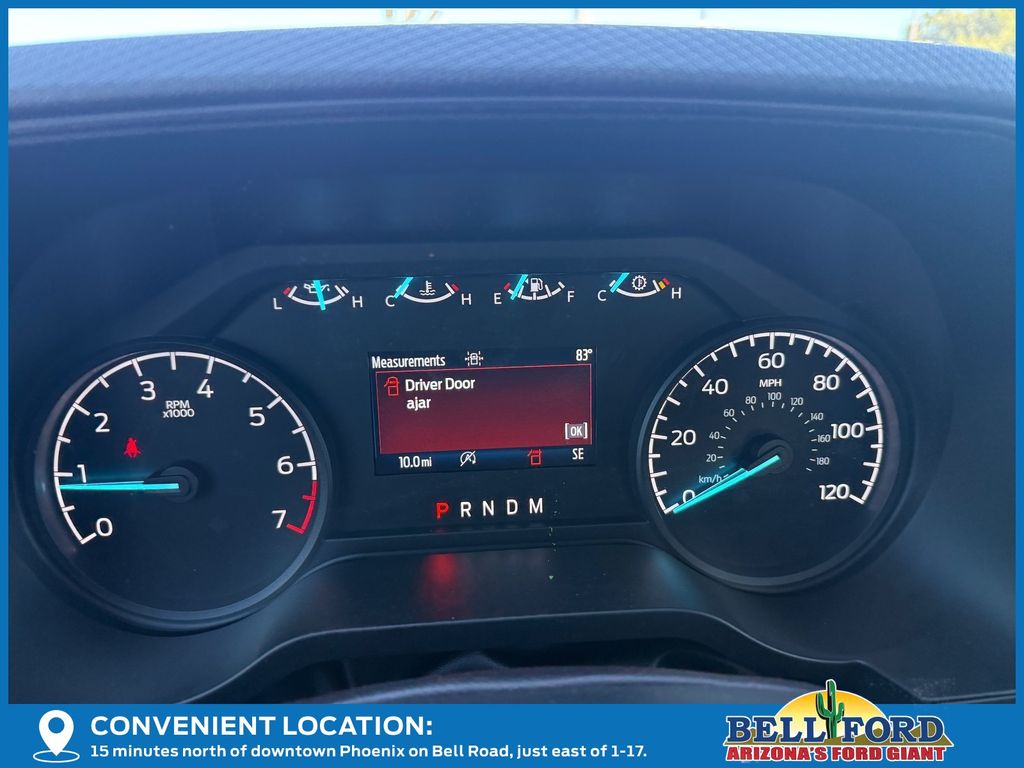 This Ford F-150 is equipped with the following options: Equipment Group 101A Standard (3.55 Axle Ratio, Cloth 40/20/40 Front Seat, Radio: AM/FM Stereo with SiriusXM 360L, SYNC 4 with Enhanced Voice Recognition, and Wheels: 17" Silver Steel), Ford Connectivity Package (1-Year Included), GVWR: 6,220 Lb Payload Package, Internet access capable: 5G Modem - Ford Connectivity Package, 4 Speakers, 4-Wheel Disc Brakes, ABS brakes, Air Conditioning, AM/FM radio: SiriusXM with 360L, Auto High-beam Headlights, Brake assist, Compass, Delay-off headlights, Driver door bin, Dual front impact airbags, Dual front side impact airbags, Electronic Stability Control, Emergency communication system: SYNC 4 911 Assist, Front anti-roll bar, Front Center Armrest, Front reading lights, Front wheel independent suspension, Fully automatic headlights, Heated door mirrors, Illuminated entry, Low tire pressure warning, Occupant sensing airbag, Outside temperature display, Overhead airbag, Overhead console, Panic alarm, Passenger door bin, Passenger vanity mirror, Power door mirrors, Power steering, Power windows, Radio data system, Rear Parking Sensors, Rear step bumper, Remote keyless entry, Security system, Speed control, Steering wheel mounted audio controls, Tachometer, Telescoping steering wheel, Tilt steering wheel, Traction control, Trip computer, and Variably intermittent wipers.