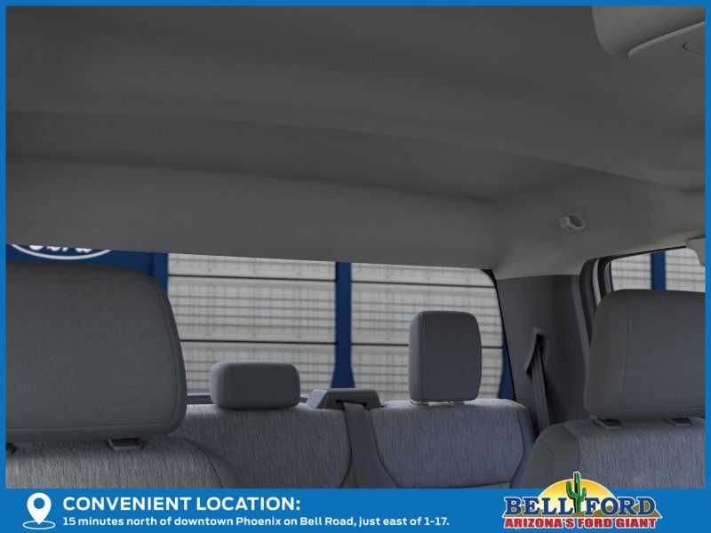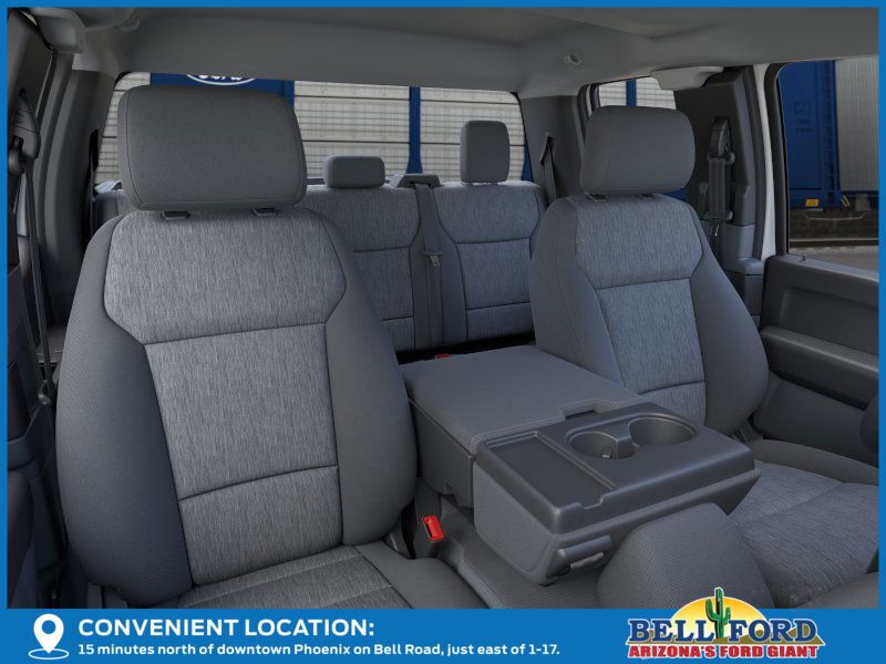 This Ford F-150 is equipped with the following options: Equipment Group 101A Standard (3.55 Axle Ratio, Cloth 40/20/40 Front Seat, Radio: AM/FM Stereo with SiriusXM 360L, SYNC 4 with Enhanced Voice Recognition, and Wheels: 17" Silver Steel), Ford Connectivity Package (1-Year Included), GVWR: 6,365 lbs Payload Package, Internet access capable: 5G Modem - Ford Connectivity Package, 4-Wheel Disc Brakes, 6 Speakers, ABS brakes, Air Conditioning, AM/FM radio: SiriusXM with 360L, Auto High-beam Headlights, Brake assist, Compass, Delay-off headlights, Driver door bin, Dual front impact airbags, Dual front side impact airbags, Electronic Stability Control, Emergency communication system: SYNC 4 911 Assist, Front anti-roll bar, Front Center Armrest, Front reading lights, Front wheel independent suspension, Fully automatic headlights, Heated door mirrors, Illuminated entry, Low tire pressure warning, Occupant sensing airbag, Outside temperature display, Overhead airbag, Overhead console, Panic alarm, Passenger door bin, Passenger vanity mirror, Power door mirrors, Power steering, Power windows, Radio data system, Rear Parking Sensors, Rear step bumper, Remote keyless entry, Security system, Speed control, Split folding rear seat, Steering wheel mounted audio controls, Tachometer, Telescoping steering wheel, Tilt steering wheel, Traction control, Trip computer, and Variably intermittent wipers.