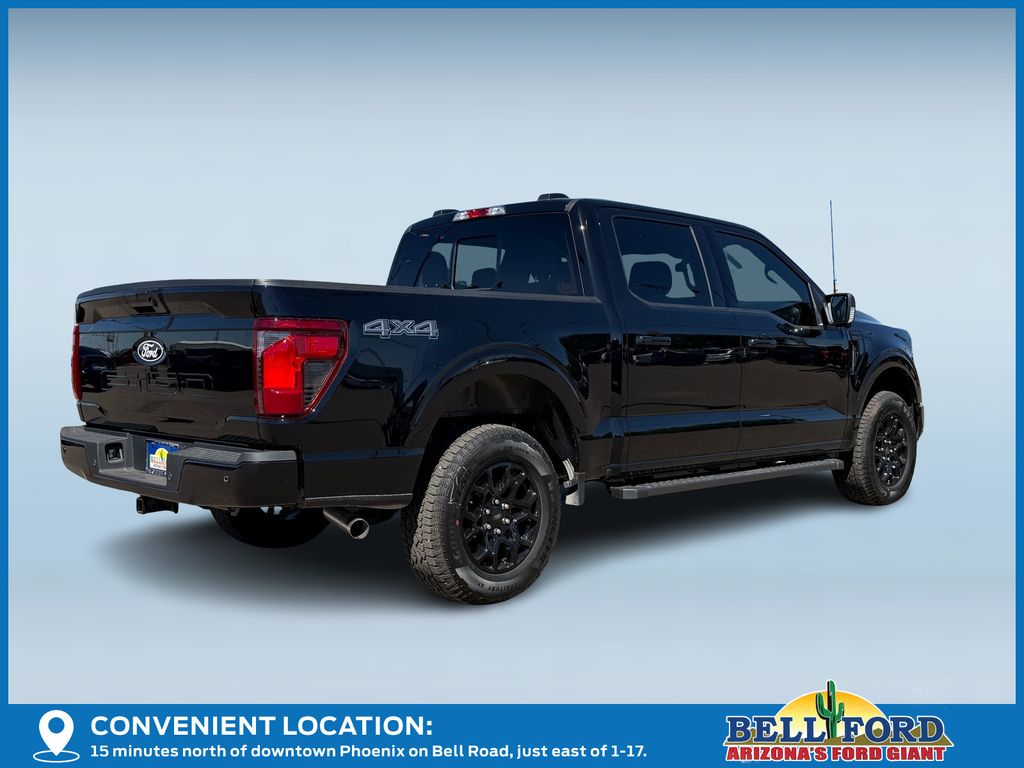 This Ford F-150 is equipped with the following options: Equipment Group 302A Mid (18" Painted Aluminum Wheels, 3.55 Axle Ratio, 360 Degree Camera, 400W Pro Power Onboard (cab & Bed), Adaptive Cruise Control with Stop and Go, Auto-Dimming Rear-View Mirror, Body-Color Door Handles, Chrome Front and Rear Bumpers, Cloth 40/20/40 Front Seat, Dual-Zone Electronic Automatic Temperature Control, Ford Co-Pilot360 Assist 2.0, Front Parking Sensors, Heated Front Seats, Intelligent Access with Push Button Start, Power Glass Heated Sideview Mirrors, Power-Sliding Rear Window, Radio: AM/FM Stereo with SiriusXM 360L, Remote Start System with Remote Tailgate Release, SYNC 4 with Enhanced Voice Recognition, Towing Technology, and Wrapped Steering Wheel), Ford Connectivity Package (1-Year Included), GVWR: 6,650 lbs Payload Package, Internet access capable: 5G Modem - Ford Connectivity Package, XLT Black Appearance Package (6" Black Running Boards, Black Exterior Badging, Black Grille, Body-Color Front and Rear Bumpers, Dark Interior Appliques, Gray Box Side Decal, Unique Sport Cloth 40/Console/40 Front-Seats, and Wheels: 18" Gloss Black), 4WD, 4-Wheel Disc Brakes, 6 Speakers, ABS brakes, Air Conditioning, Alloy wheels, AM/FM radio: SiriusXM with 360L, Auto High-beam Headlights, Brake assist, Bumpers: body-color, Compass, Delay-off headlights, Driver door bin, Driver vanity mirror, Dual front impact airbags, Dual front side impact airbags, Electronic Stability Control, Emergency communication system: SYNC 4 911 Assist, Front anti-roll bar, Front Center Armrest, Front fog lights, Front reading lights, Front wheel independent suspension, Fully automatic headlights, Heated door mirrors, Illuminated entry, Low tire pressure warning, Occupant sensing airbag, Outside temperature display, Overhead airbag, Overhead console, Panic alarm, Passenger door bin, Passenger vanity mirror, Power door mirrors, Power steering, Power windows, Radio data system, Rear Parking Sensors, Rear reading lights, Rear step bumper, Rear window defroster, Remote keyless entry, Security system, Speed control, Split folding rear seat, Steering wheel mounted audio controls, Tachometer, Telescoping steering wheel, Tilt steering wheel, Traction control, Trip computer, and Variably intermittent wipers. Price includes: $2000 - Retail Customer Cash. Exp. 03/31/2026