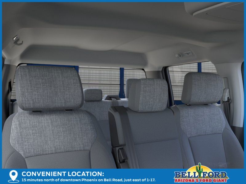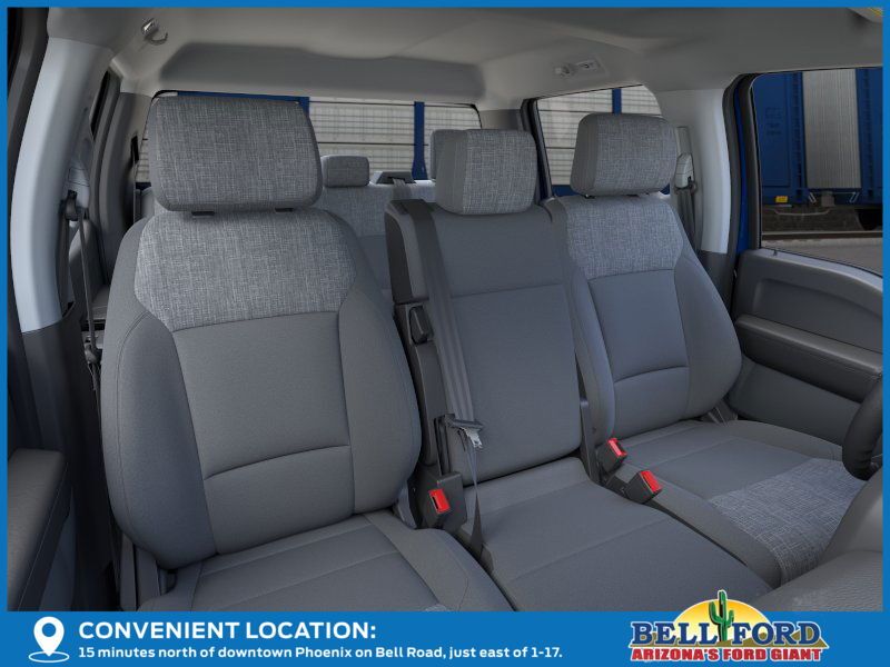 GVWR: 10,000 lb Payload Package, Internet access capable: 5G Modem - Ford Connectivity Package, Order Code 603A, 4WD, 3.73 Axle Ratio, 4-Wheel Disc Brakes, 6 Speakers, ABS brakes, Air Conditioning, Alloy wheels, AM/FM radio, AM/FM Stereo w/MP3 Player, Auto High-beam Headlights, Brake assist, Bumpers: chrome, Cloth 40/20/40 Split Bench Seat, Compass, Delay-off headlights, Driver door bin, Driver vanity mirror, Dual front impact airbags, Dual front side impact airbags, Electronic Stability Control, Emergency communication system: SYNC 4 911 Assist, Exterior Parking Camera Rear, Front anti-roll bar, Front Center Armrest w/Storage, Front fog lights, Front reading lights, Fully automatic headlights, Heated door mirrors, Illuminated entry, Low tire pressure warning, Outside temperature display, Overhead airbag, Overhead console, Panic alarm, Passenger door bin, Passenger vanity mirror, Power door mirrors, Power driver seat, Power steering, Power windows, Privacy Glass, Rear reading lights, Rear step bumper, Remote keyless entry, Remote Start System, Security system, Speed control, Split folding rear seat, Steering wheel mounted audio controls, SYNC 4, Tachometer, Telescoping steering wheel, Tilt steering wheel, Tough Bed Spray-In Bedliner, Traction control, Trip computer, Turn signal indicator mirrors, Variably intermittent wipers, and Wheels: 18" Sparkle Silver Painted Cast Aluminum.