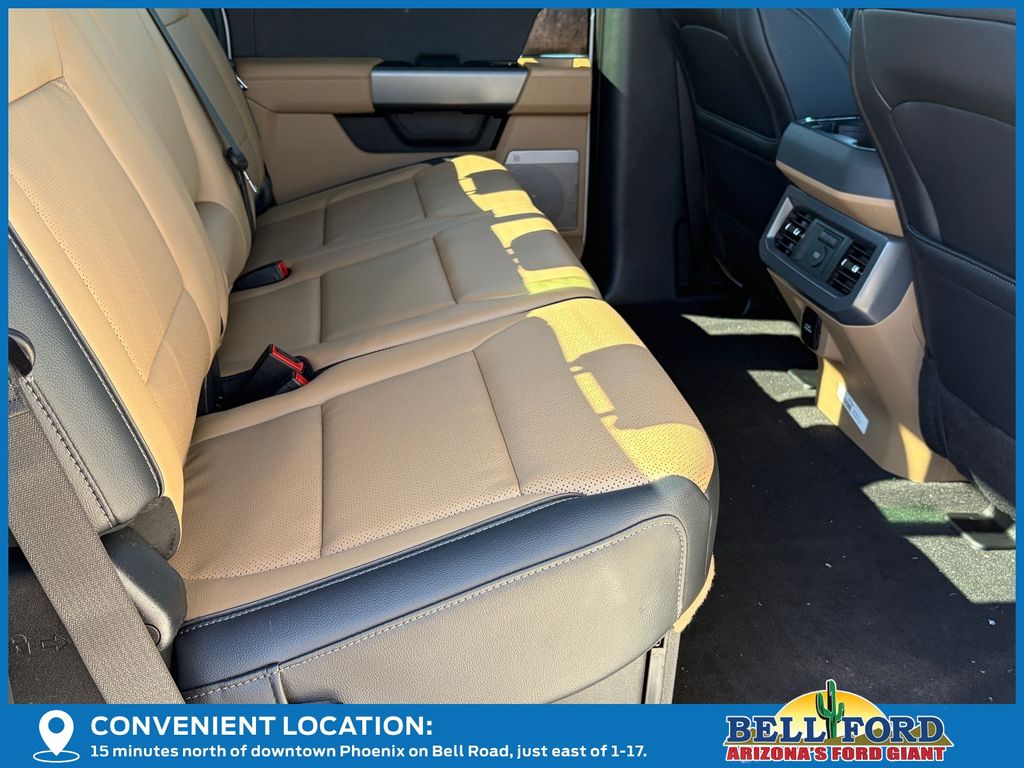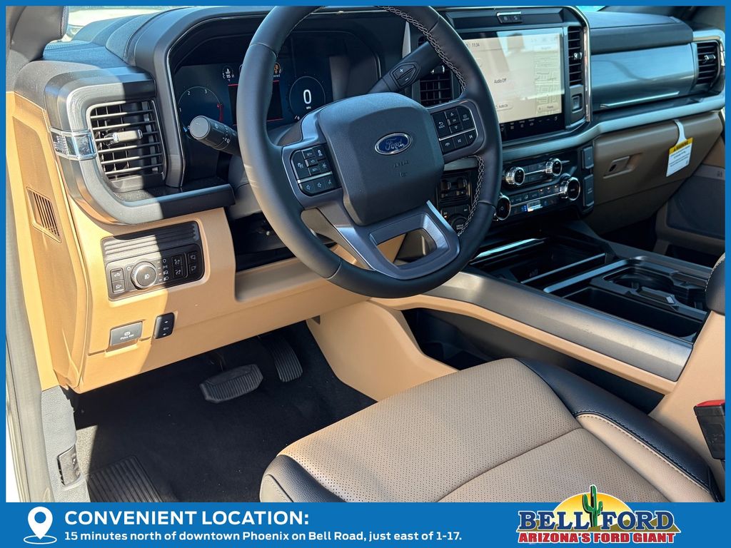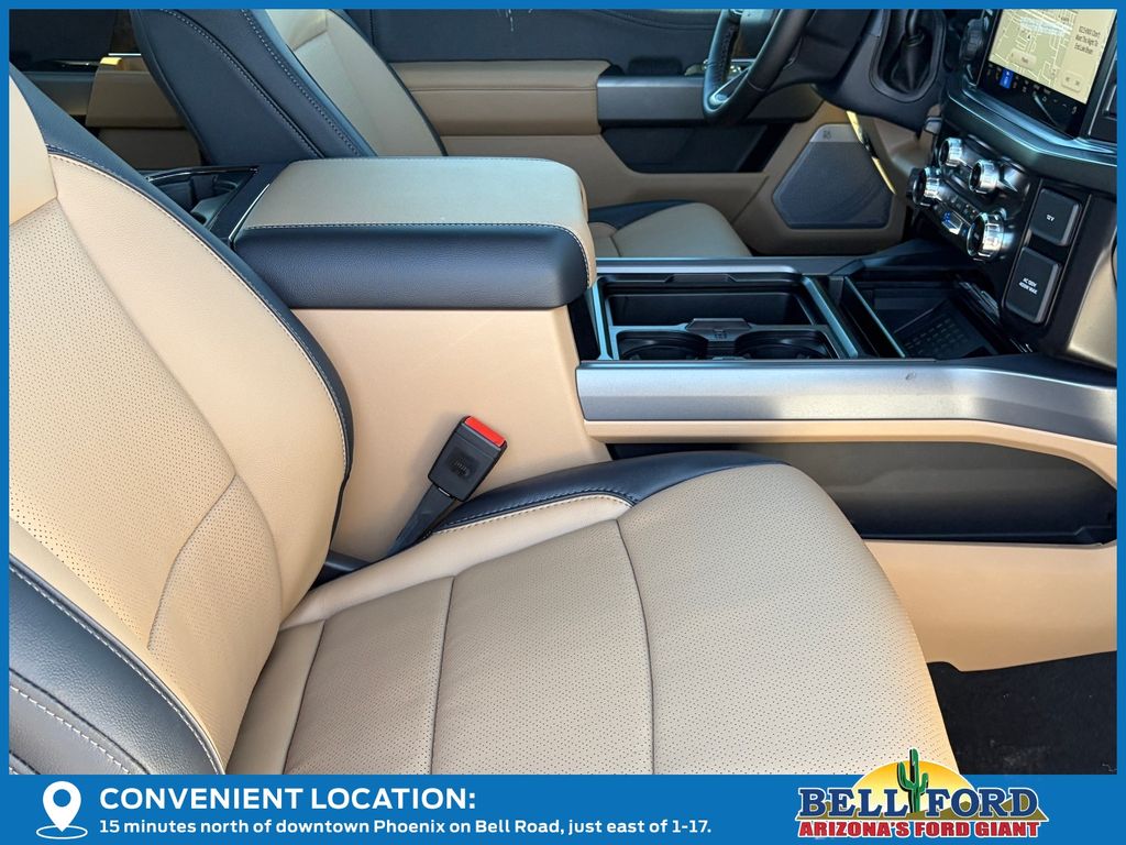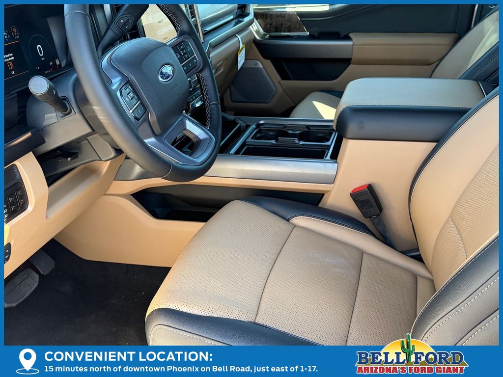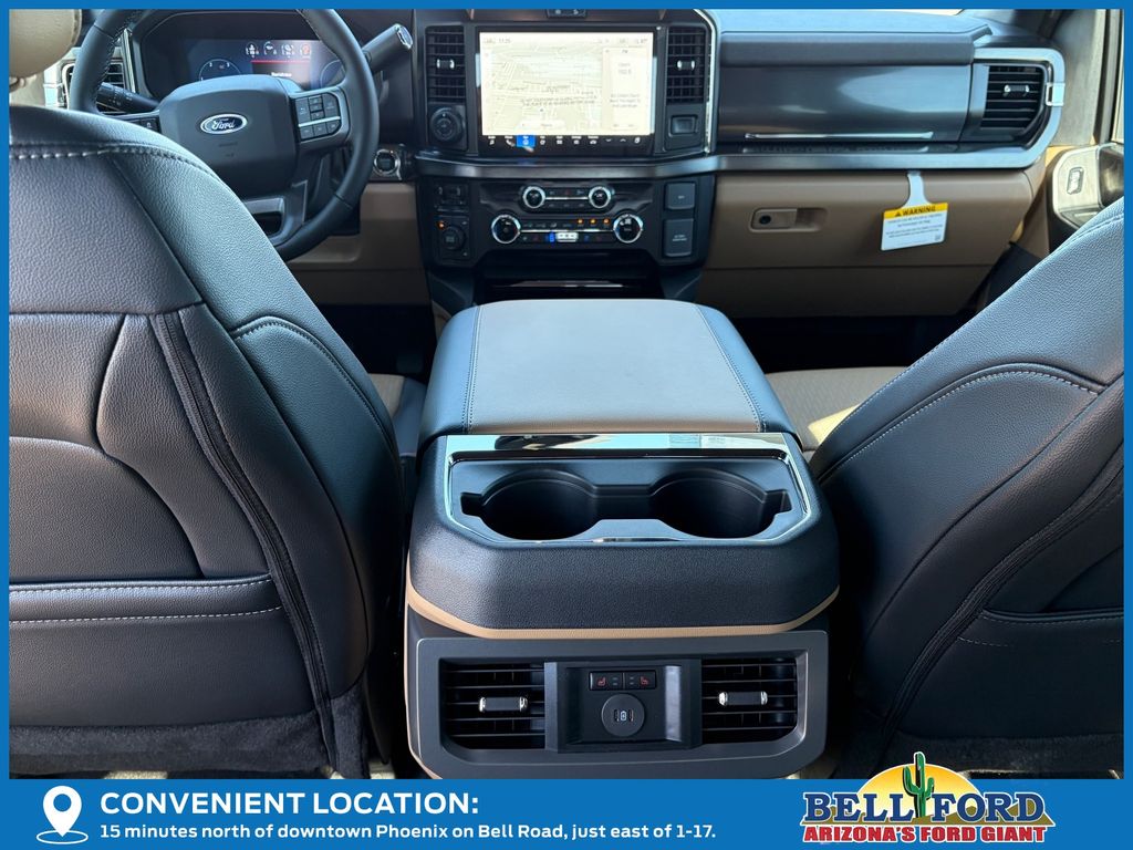This Ford F-350SD is equipped with the following options: 5th Wheel/Gooseneck Hitch Prep Package, Ford Connectivity Package (1-Year Included), FX4 Off-Road Package, GVWR: 14,000 lb Payload Package, Internet access capable: 5G Modem - Ford Connectivity Package, Lariat Premium Package (Lane Departure Warning System, Platform Running Boards, Pro Trailer Backup Assist, and Pro Trailer Hitch Assist), Lariat Ultimate Package (4-Way Adjustable Headrests, Front Splash Guards/Mud Flaps (Pre-Installed), Head-Up Display, Power-Deployable Running Boards, Radio: B&O Unleashed Sound System by Bang & Olufsen, SiriusXM w/360L, and SYNC 4 w/Enhanced Voice Recognition), Order Code 628A, 4WD, 17" Forged Polished Aluminum Wheels, 190 Amp Alternator, 4-Wheel Disc Brakes, 410 Amp Dual Alternators, 8 Speakers, ABS brakes, Adaptive Cruise Control w/Stop-and-Go, Adjustable pedals, Air Conditioning, Alloy wheels, AM/FM radio: SiriusXM with 360L, Auto High-beam Headlights, Auto-dimming Rear-View mirror, Automatic temperature control, BLIS w/Cross-Traffic Alert, Brake assist, Bumpers: chrome, Compass, Delay-off headlights, Driver door bin, Driver vanity mirror, Dual AGM 68 AH Battery, Dual front impact airbags, Dual front side impact airbags, Dual rear wheels, Electronic Stability Control, Emergency communication system: SYNC 4 911 Assist, Engine Block Heater, Flow-Through Console, Front & Rear Parking Sensors, Front ActiveX Trimmed 40/Console/40 Seats, Front anti-roll bar, Front Bucket Seats, Front Center Armrest, Front dual zone A/C, Front fog lights, Front reading lights, Fully automatic headlights, Garage door transmitter, Heated door mirrors, Heated front seats, Heated rear seats, Heated steering wheel, Illuminated entry, Lane-Keeping System, Low tire pressure warning, Memory seat, Navigation system: Connected Navigation, Outside temperature display, Overhead airbag, Overhead console, Panic alarm, Passenger door bin, Passenger vanity mirror, Pedal memory, Post-Collision Braking, Power door mirrors, Power driver seat, Power passenger seat, Power steering, Power windows, Privacy Glass, Radio: B&O Sound System by Bang & Olufsen, Rain sensing wipers, Rapid-Heat Supplemental Cab Heater, Rear anti-roll bar, Rear Parking Sensors, Rear reading lights, Rear seat center armrest, Rear step bumper, Rear window defroster, Remote keyless entry, Security system, Speed control, Split folding rear seat, Steering wheel mounted audio controls, Tachometer, Telescoping steering wheel, Tilt steering wheel, Traction control, Trip computer, Turn signal indicator mirrors, Twin Panel Power Moonroof, Upfitter Switches (6), Variably intermittent wipers, and Ventilated front seats.