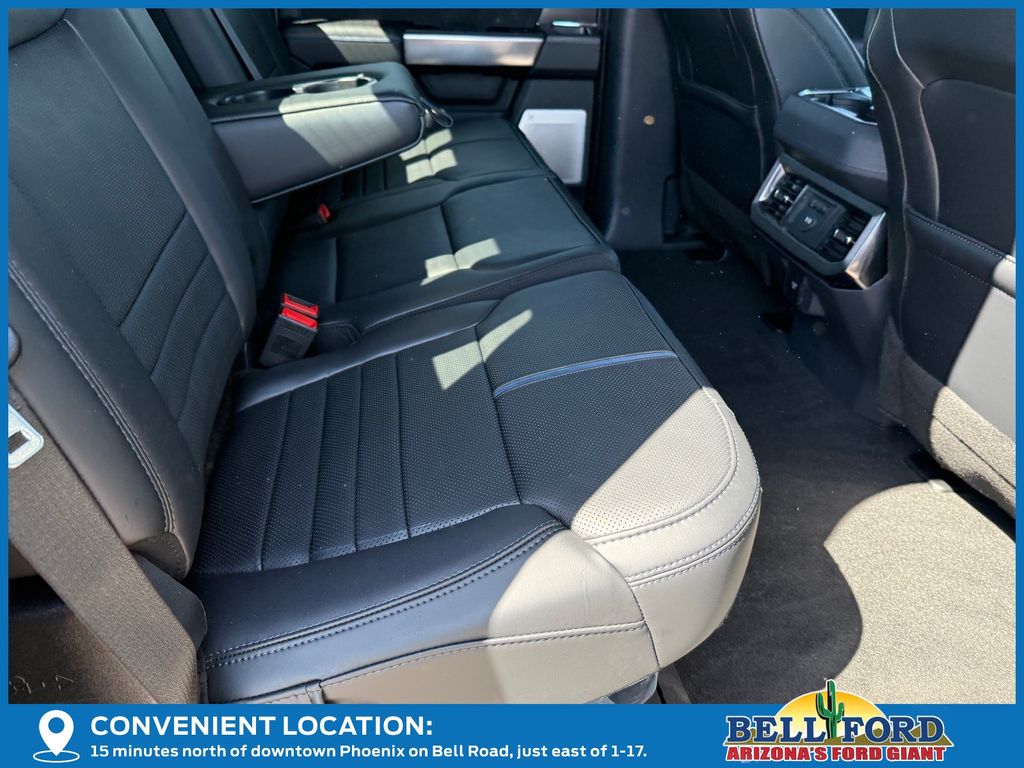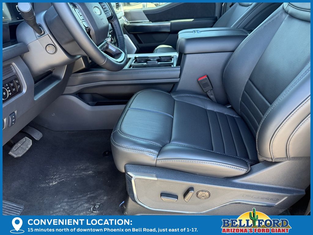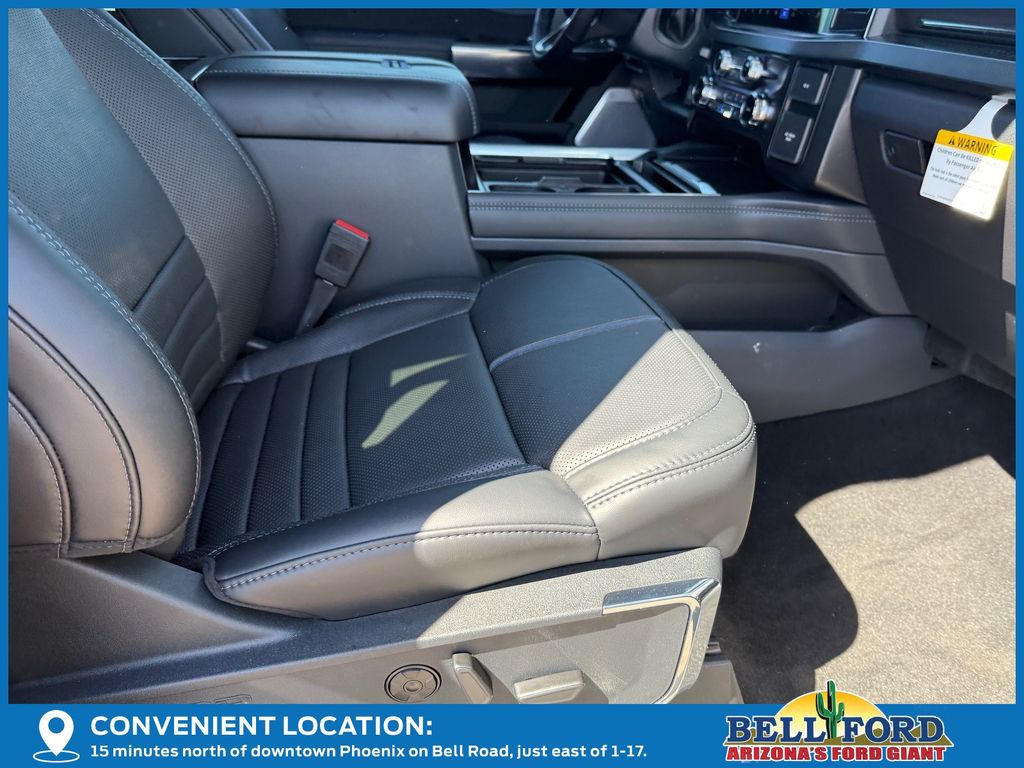 This Ford F-350SD is equipped with the following options: 5th Wheel/Gooseneck Hitch Prep Package, Ford Connectivity Package (1-Year Included), Internet access capable: 5G Modem - Ford Connectivity Package, Order Code 713A (Flow-Through Console, Radio: B&O Unleashed Sound System by Bang & Olufsen, SiriusXM with 360L, SYNC 4 with Enhanced Voice Recognition, Unique Platinum Leather 40/Console/40 Seats, and Wheels: 20" Bright Machined and Painted Aluminum), 4WD, 14 Speakers, 4-Wheel Disc Brakes, 410 Amp Dual Alternators, ABS brakes, Adjustable pedals, Air Conditioning, Alloy wheels, AM/FM radio: SiriusXM with 360L, Auto High-beam Headlights, Auto tilt-away steering wheel, Auto-dimming Rear-View mirror, Automatic temperature control, Brake assist, Bumpers: body-color, Compass, Delay-off headlights, Driver door bin, Driver vanity mirror, Dual front impact airbags, Dual front side impact airbags, Electronic Stability Control, Emergency communication system: SYNC 4 911 Assist, Engine Block Heater, Front and Rear Wheel Well Liners, Front anti-roll bar, Front Bucket Seats, Front Center Armrest, Front dual zone A/C, Front fog lights, Front reading lights, Fully automatic headlights, Garage door transmitter, Heads-Up Display, Heated door mirrors, Heated front seats, Heated rear seats, Heated steering wheel, Illuminated entry, Leather steering wheel, LED Roof Clearance Lights, Low tire pressure warning, Memory seat, Navigation system: Connected Navigation, Outside temperature display, Overhead airbag, Overhead console, Panic alarm, Passenger door bin, Passenger vanity mirror, Pedal memory, Power door mirrors, Power driver seat, Power passenger seat, Power steering, Power windows, Pro Power Onboard - 2kW, Rain sensing wipers, Rapid-Heat Supplemental Cab Heater, Rear reading lights, Rear seat center armrest, Rear step bumper, Rear window defroster, Remote keyless entry, Retractable Tonneau Pickup Box Cover, SecuriCode Keyless Entry Keypad (driver's Side), Security system, Speed control, Split folding rear seat, Steering wheel memory, Steering wheel mounted A/C controls, Steering wheel mounted audio controls, Tachometer, Telescoping steering wheel, Tilt steering wheel, Traction control, Trip computer, Turn signal indicator mirrors, Upfitter Switches (6), Variably intermittent wipers, and Ventilated front seats.