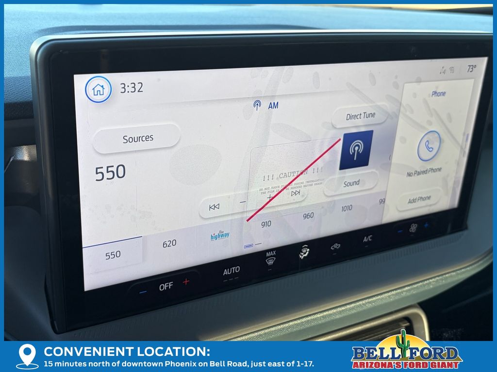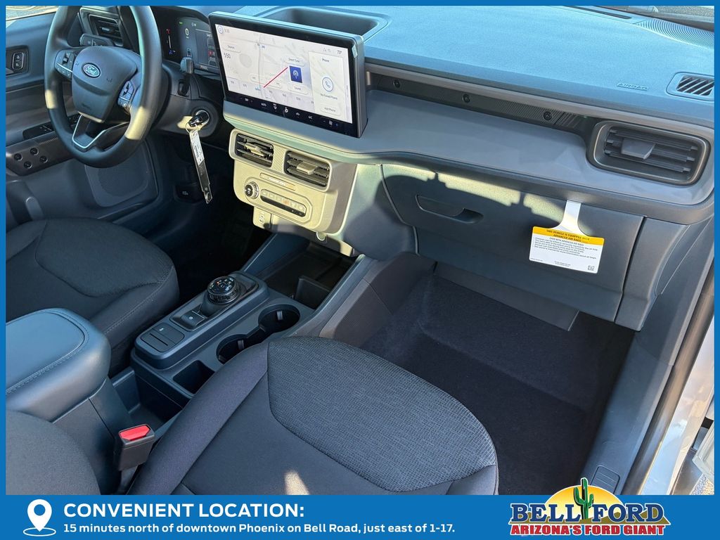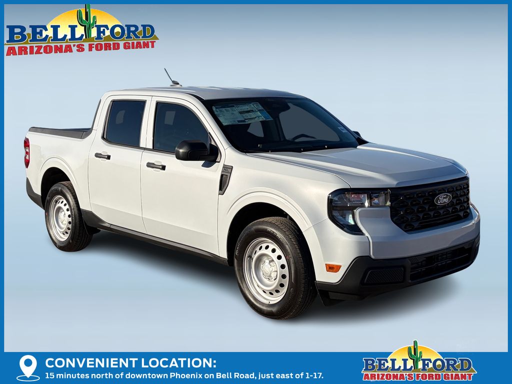 This Ford Maverick is equipped with the following options: 4K Tow Package (Trailer Brake Controller, Trailer Hitch (Class III) 2" Receiver, and Upgraded Cooling Fan), Equipment Group 101A, Ford Co-Pilot360 (Auto High Beams, BLIS w/Cross-Traffic Alert & Trailer Coverage, Exit Warning, Intersection Assist, Lane-Keeping System, Power Glass Manual-Folding Mirrors, Pre-Collision Assist w/Automatic Emergency Braking, Rear Cross Traffic Braking, Rear Parking Sensors, and Rear-View Camera), Ford Connectivity Package (1-Year Included), Internet access capable: 5G Modem - Ford Connectivity Package, 2.5L I-4 Hybrid, 2.91 Axle Ratio, 4-Wheel Disc Brakes, 6 Speakers, ABS brakes, Air Conditioning, AM/FM radio: SiriusXM with 360L, Apple CarPlay/Android Auto, Auto High-beam Headlights, Automatic temperature control, Brake assist, Bumpers: body-color, Compass, Delay-off headlights, Driver door bin, Driver vanity mirror, Dual front impact airbags, Dual front side impact airbags, Electronic Stability Control, Emergency communication system: SYNC 4 911 Assist, Exterior Parking Camera Rear, Four wheel independent suspension, Front anti-roll bar, Front Bucket Seats, Front Center Armrest, Front Cloth Bucket Seats, Front reading lights, Fully automatic headlights, Illuminated entry, Knee airbag, Low tire pressure warning, Occupant sensing airbag, Outside temperature display, Overhead airbag, Overhead console, Panic alarm, Passenger door bin, Passenger vanity mirror, Power steering, Power windows, Radio data system, Radio: AM/FM Stereo w/6 Speakers, Rear anti-roll bar, Rear step bumper, Remote keyless entry, SiriusXM w/360L, Speed control, Speed-sensing steering, Steering wheel mounted audio controls, SYNC 4 w/Enhanced Voice Recognition, Telescoping steering wheel, Tilt steering wheel, Traction control, Trip computer, and Wheels: 17" Steel w/Sparkle Silver Painted Cover.