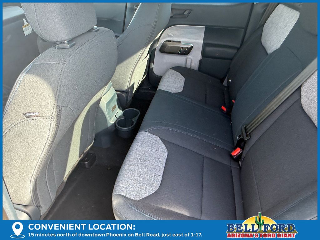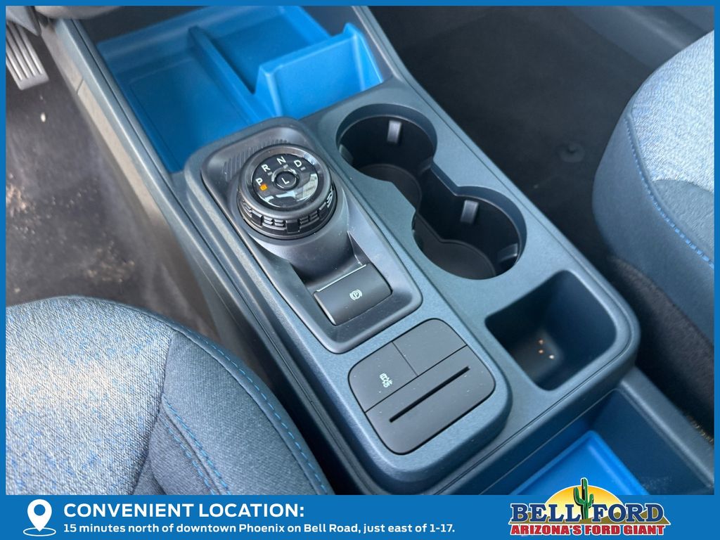 This Ford Maverick is equipped with the following options: Equipment Group 301A (2.91 Axle Ratio, Radio: AM/FM Stereo with 6 Speakers, SiriusXM with 360L, SYNC 4 with Enhanced Voice Recognition, Unique Cloth Front Bucket Seats, and Wheels: 17" Carbonized Gray Painted Aluminum), Ford Connectivity Package (1-Year Included), Internet access capable: 5G Modem - Ford Connectivity Package, 2.5L I-4 Hybrid, 4-Wheel Disc Brakes, 6 Speakers, ABS brakes, Air Conditioning, Alloy wheels, AM/FM radio: SiriusXM with 360L, Apple CarPlay/Android Auto, Auto High Beams, Auto High-beam Headlights, Automatic temperature control, Brake assist, Bumpers: body-color, Compass, Delay-off headlights, Driver door bin, Driver vanity mirror, Dual front impact airbags, Dual front side impact airbags, Electronic Stability Control, Emergency communication system: SYNC 4 911 Assist, Exterior Parking Camera Rear, Four wheel independent suspension, Front anti-roll bar, Front Bucket Seats, Front Center Armrest, Front reading lights, Fully automatic headlights, Illuminated entry, Intersection Assist, Knee airbag, Lane-Keeping System, Low tire pressure warning, Occupant sensing airbag, Outside temperature display, Overhead airbag, Overhead console, Panic alarm, Passenger door bin, Passenger vanity mirror, Power door mirrors, Power steering, Power windows, Pre-Collision Assist with Automatic Emergency Braking, Radio data system, Rear anti-roll bar, Rear seat center armrest, Rear step bumper, Rear-View Camera, Remote keyless entry, Security system, Speed control, Speed-sensing steering, Steering wheel mounted audio controls, Telescoping steering wheel, Tilt steering wheel, Traction control, and Trip computer.