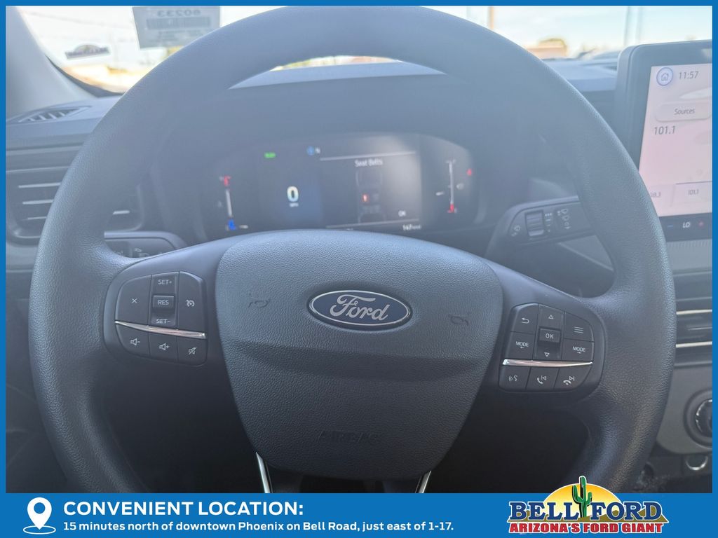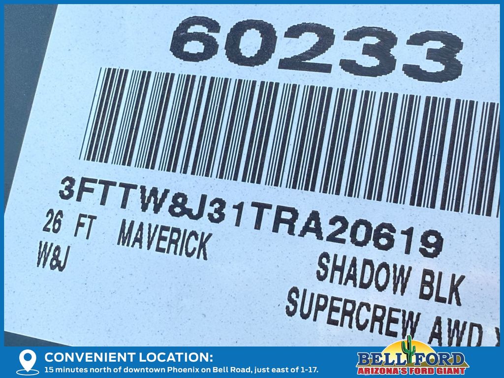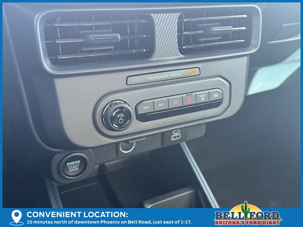 This Ford Maverick is equipped with the following options: Black Appearance Package (Black Grille, Black Interior Accents, Black Painted Mirrors, Unique Cloth Front Bucket Seats with Black Appearance, and Wheels: 19" Black Painted Aluminum), Equipment Group 301A (2.91 Axle Ratio, Radio: AM/FM Stereo with 6 Speakers, SiriusXM with 360L, SYNC 4 with Enhanced Voice Recognition, Unique Cloth Front Bucket Seats, and Wheels: 17" Carbonized Gray Painted Aluminum), Ford Connectivity Package (1-Year Included), Internet access capable: 5G Modem - Ford Connectivity Package, 2.5L I-4 Hybrid, 4-Wheel Disc Brakes, 6 Speakers, ABS brakes, Air Conditioning, Alloy wheels, AM/FM radio: SiriusXM with 360L, Apple CarPlay/Android Auto, Auto High Beams, Auto High-beam Headlights, Automatic temperature control, Brake assist, Bumpers: body-color, Compass, Delay-off headlights, Driver door bin, Driver vanity mirror, Dual front impact airbags, Dual front side impact airbags, Electronic Stability Control, Emergency communication system: SYNC 4 911 Assist, Exterior Parking Camera Rear, Four wheel independent suspension, Front anti-roll bar, Front Bucket Seats, Front Center Armrest, Front reading lights, Fully automatic headlights, Illuminated entry, Intersection Assist, Knee airbag, Lane-Keeping System, Low tire pressure warning, Occupant sensing airbag, Outside temperature display, Overhead airbag, Overhead console, Panic alarm, Passenger door bin, Passenger vanity mirror, Power door mirrors, Power steering, Power windows, Pre-Collision Assist with Automatic Emergency Braking, Radio data system, Rear anti-roll bar, Rear seat center armrest, Rear step bumper, Rear-View Camera, Remote keyless entry, Security system, Speed control, Speed-sensing steering, Steering wheel mounted audio controls, Telescoping steering wheel, Tilt steering wheel, Traction control, and Trip computer.