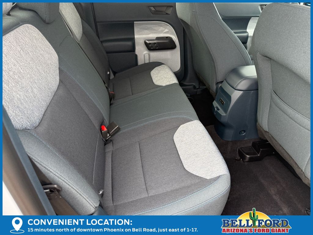 This Ford Maverick is equipped with the following options: Equipment Group 300A (Radio: AM/FM Stereo with 6 Speakers, SiriusXM with 360L, SYNC 4 with Enhanced Voice Recognition, Unique Cloth Front Bucket Seats, and Wheels: 17" Carbonized Gray Painted Aluminum), Ford Co-Pilot360 (Auto High Beams, BLIS with Cross-Traffic Alert and Trailer Coverage, Exit Warning, Intersection Assist, Lane-Keeping System, Power Glass Manual-Folding Mirrors, Pre-Collision Assist with Automatic Emergency Braking, Rear Cross Traffic Braking, Rear Parking Sensors, and Rear-View Camera), Ford Connectivity Package (1-Year Included), Internet access capable: 5G Modem - Ford Connectivity Package, 2.5L I-4 Hybrid, 2.91 Axle Ratio, 4-Wheel Disc Brakes, 6 Speakers, ABS brakes, Air Conditioning, Alloy wheels, AM/FM radio: SiriusXM with 360L, Apple CarPlay/Android Auto, Auto High-beam Headlights, Automatic temperature control, Brake assist, Bumpers: body-color, Compass, Delay-off headlights, Driver door bin, Driver vanity mirror, Dual front impact airbags, Dual front side impact airbags, Electronic Stability Control, Emergency communication system: SYNC 4 911 Assist, Exterior Parking Camera Rear, Front anti-roll bar, Front Bucket Seats, Front Center Armrest, Front reading lights, Front wheel independent suspension, Fully automatic headlights, Illuminated entry, Knee airbag, Low tire pressure warning, Occupant sensing airbag, Outside temperature display, Overhead airbag, Overhead console, Panic alarm, Passenger door bin, Passenger vanity mirror, Power door mirrors, Power steering, Power windows, Radio data system, Rear anti-roll bar, Rear seat center armrest, Rear step bumper, Remote keyless entry, Security system, Speed control, Speed-sensing steering, Steering wheel mounted audio controls, Telescoping steering wheel, Tilt steering wheel, Traction control, and Trip computer.