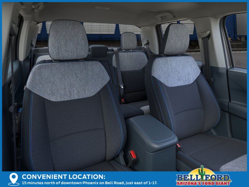 This Ford Maverick is equipped with the following options: Equipment Group 300A (Radio: AM/FM Stereo with 6 Speakers, SiriusXM with 360L, SYNC 4 with Enhanced Voice Recognition, Unique Cloth Front Bucket Seats, and Wheels: 17" Carbonized Gray Painted Aluminum), Ford Connectivity Package (1-Year Included), Internet access capable: 5G Modem - Ford Connectivity Package, XLT Luxury Package (Heated Mirror with Painted Black Skull Caps, Heated Seats, LED Box Lighting, Pro Power Onboard - 400W, Remote Start System, and Soft Vinyl Wrapped Heated Steering Wheel), 2.5L I-4 Hybrid, 2.91 Axle Ratio, 4-Wheel Disc Brakes, 6 Speakers, ABS brakes, Air Conditioning, Alloy wheels, AM/FM radio: SiriusXM with 360L, Apple CarPlay/Android Auto, Auto High Beams, Auto High-beam Headlights, Automatic temperature control, Brake assist, Bumpers: body-color, Compass, Delay-off headlights, Driver door bin, Driver vanity mirror, Dual front impact airbags, Dual front side impact airbags, Electronic Stability Control, Emergency communication system: SYNC 4 911 Assist, Exterior Parking Camera Rear, Front anti-roll bar, Front Bucket Seats, Front Center Armrest, Front reading lights, Front wheel independent suspension, Fully automatic headlights, Illuminated entry, Intersection Assist, Knee airbag, Lane-Keeping System, Low tire pressure warning, Occupant sensing airbag, Outside temperature display, Overhead airbag, Overhead console, Panic alarm, Passenger door bin, Passenger vanity mirror, Power door mirrors, Power steering, Power windows, Pre-Collision Assist with Automatic Emergency Braking, Radio data system, Rear anti-roll bar, Rear seat center armrest, Rear step bumper, Rear-View Camera, Remote keyless entry, Security system, Speed control, Speed-sensing steering, Steering wheel mounted audio controls, Telescoping steering wheel, Tilt steering wheel, Traction control, and Trip computer.
