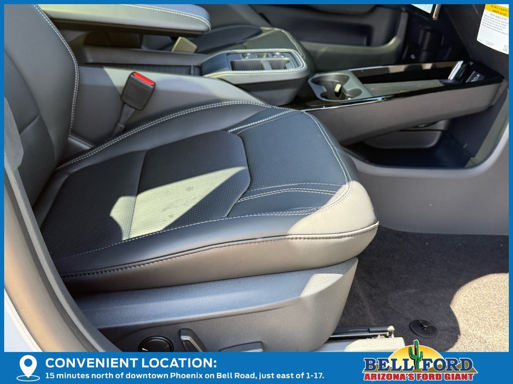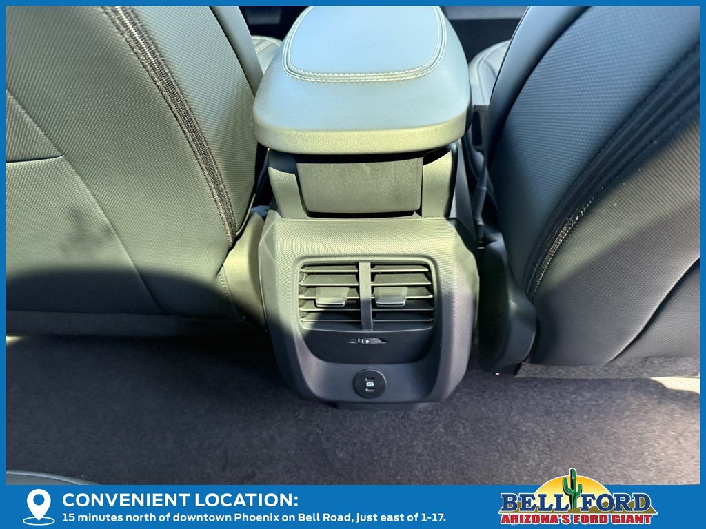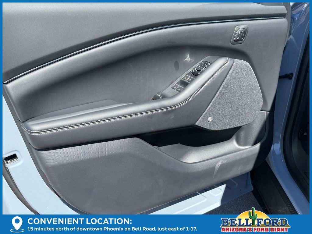 This Ford Mustang Mach-E is equipped with the following options: Equipment Group 300A Standard Package (Heated/Ventilated ActiveX Bucket Seats, Radio: B&O Sound System by Bang and Olufsen, SiriusXM with 360L, SYNC 4A with Enhanced Voice Recognition, and Wheels: 19" Bright Machined-Face Aluminum), Panoramic Fixed-Glass Roof Package, Technology Package (BlueCruise (equipment + 1 Year + 90-Day Plan) and Ford Co-Pilot360 Active 2.0), 10 Speakers, 4-Wheel Disc Brakes, ABS brakes, Air Conditioning, Alloy wheels, AM/FM radio: SiriusXM with 360L, Apple CarPlay/Android Auto, Auto High-beam Headlights, Auto-dimming Rear-View mirror, Automatic temperature control, Brake assist, Bumpers: body-color, Compass, Delay-off headlights, Drainable Frunk, Driver door bin, Driver vanity mirror, Dual front impact airbags, Dual front side impact airbags, Electronic Stability Control, Emergency communication system: 911 Assist, Exterior Parking Camera Rear, Four wheel independent suspension, Front anti-roll bar, Front Bucket Seats, Front Center Armrest, Front dual zone A/C, Front reading lights, Fully automatic headlights, Heated door mirrors, Heated front seats, Heated steering wheel, Illuminated entry, Knee airbag, Low tire pressure warning, Memory seat, Mobile Power Cord (120V/240V), Navigation system: Connected Navigation, Occupant sensing airbag, Outside temperature display, Overhead airbag, Overhead console, Panic alarm, Passenger door bin, Passenger vanity mirror, Power door mirrors, Power driver seat, Power passenger seat, Power steering, Power windows, Radio data system, Rain sensing wipers, Rear anti-roll bar, Rear seat center armrest, Rear side impact airbag, Rear window defroster, Rear window wiper, Remote keyless entry, Security system, Speed control, Speed-sensing steering, Speed-Sensitive Wipers, Split folding rear seat, Spoiler, Steering wheel mounted audio controls, Telescoping steering wheel, Tilt steering wheel, Tire Inflator and Sealant Kit, Traction control, Trip computer, Turn signal indicator mirrors, Variably intermittent wipers, and Ventilated front seats.