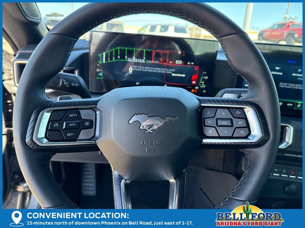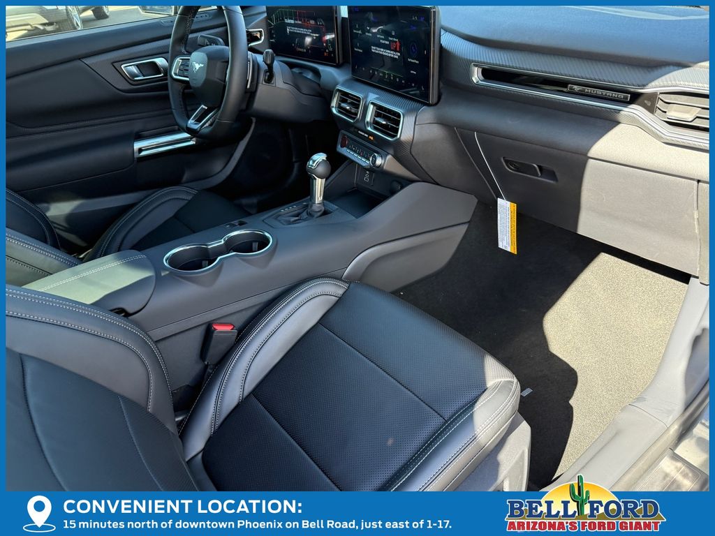 This Ford Mustang is equipped with the following options: 1st Row Carpeted Black Floor Mats, 4-Wheel Disc Brakes, 6 Speakers, ABS brakes, Active Valve Performance Exhaust, Air Conditioning, Alloy wheels, AM/FM radio, AM/FM Stereo, Auto High-beam Headlights, Automatic temperature control, Brake assist, Bumpers: body-color, Cloth Bucket Seats, Compass, Delay-off headlights, Driver door bin, Driver vanity mirror, Dual front impact airbags, Dual front side impact airbags, Electronic Stability Control, Emergency communication system: 911 Assist, Exterior Parking Camera Rear, Four wheel independent suspension, Front anti-roll bar, Front Bucket Seats, Front Center Armrest, Front dual zone A/C, Front reading lights, Fully automatic headlights, Illuminated entry, Knee airbag, Leather Shift Knob, Leather steering wheel, Low tire pressure warning, Occupant sensing airbag, Outside temperature display, Overhead airbag, Overhead console, Panic alarm, Passenger door bin, Passenger vanity mirror, Power door mirrors, Power steering, Power windows, Radio data system, Rain sensing wipers, Rear anti-roll bar, Rear Parking Sensors, Rear window defroster, Remote keyless entry, Speed control, Speed-sensing steering, Speed-Sensitive Wipers, Split folding rear seat, Sport steering wheel, Steering wheel mounted audio controls, SYNC 4, Tachometer, Telescoping steering wheel, Tilt steering wheel, Traction control, Trip computer, Variably intermittent wipers, Voltmeter, Wedge Decklid Spoiler, and Wheels: 8" x 8.5" Ebony Black Painted Aluminum. Price includes: $1000 - Retail Customer Cash. Exp. 03/31/2026