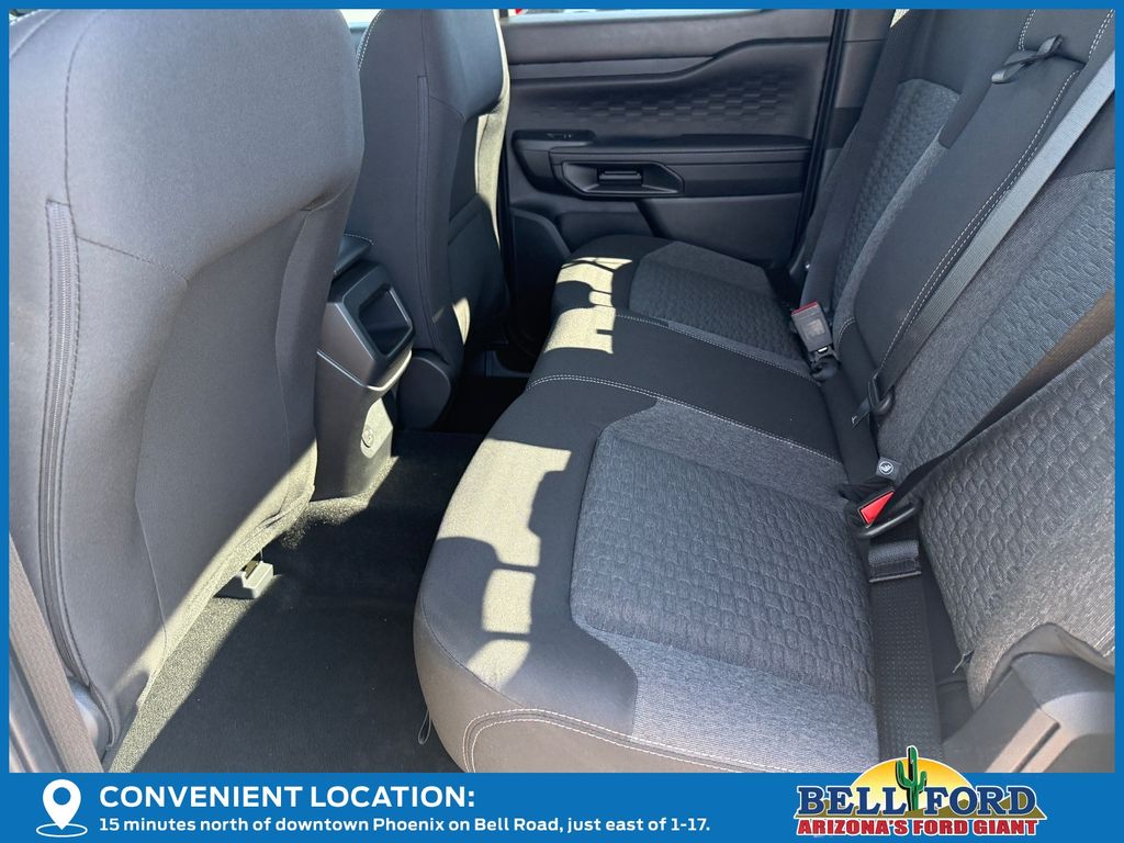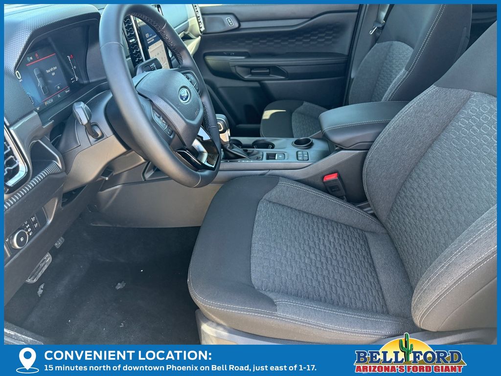 This Ford Ranger is equipped with the following options: Equipment Group 300A Standard (3.73 Axle Ratio, AM/FM Stereo, Cloth Front Bucket Seats, SiriusXM with 360L and 3-Month Trial Subscription, and SYNC 4A with Connected Navigation), Sport Appearance Package (Gray Painted Center Bar and Grille Surround, Gray Painted Front Fascia and Rear Bumper, Sport Box Decal, and Wheels: 17 Inch Gray-Painted Aluminum Alloy Sport), Trailer Tow Package (Class IV Trailer Hitch Receiver), 4-Wheel Disc Brakes, 6 Speakers, ABS brakes, Air Conditioning, Alloy wheels, AM/FM radio: SiriusXM with 360L, Auto High-beam Headlights, Auto-dimming Rear-View mirror, Black Running Boards, Brake assist, Compass, Delay-off headlights, Driver door bin, Driver vanity mirror, Dual front impact airbags, Dual front side impact airbags, Electronic Stability Control, Emergency communication system: SYNC 4 911 Assist, Front anti-roll bar, Front Bucket Seats, Front Center Armrest, Front fog lights, Front reading lights, Front wheel independent suspension, Fully automatic headlights, Illuminated entry, Leather Shift Knob, Low tire pressure warning, Navigation system: Connected Navigation, Occupant sensing airbag, Outside temperature display, Overhead airbag, Overhead console, Panic alarm, Passenger door bin, Passenger vanity mirror, Power door mirrors, Power steering, Power windows, Rear reading lights, Rear seat center armrest, Rear step bumper, Rear window defroster, Remote keyless entry, Security system, Speed control, Speed-sensing steering, Steering wheel mounted audio controls, Telescoping steering wheel, Tilt steering wheel, Traction control, Trip computer, Variably intermittent wipers, and Voltmeter.