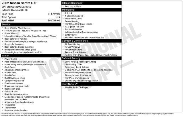 https://qualityfordresearch.com/cars/Used/2002/Nissan/Sentra/GXE/165845802002 Nissan Sentra GXE