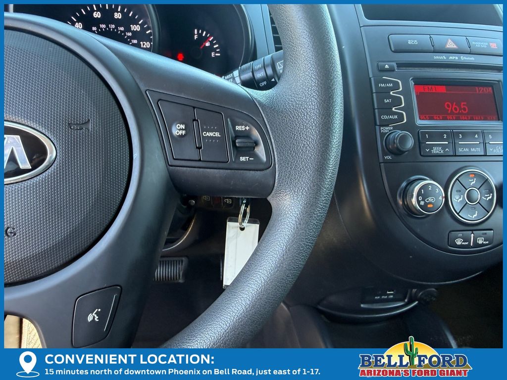 ** HERE AT BELL FORD ITS ALL ABOUT THE EXPERIENCE** Please visit us online at www.bellford.com This Kia Soul is equipped with the following options: 15" x 6.0J Steel w/Full Wheel Covers Wheels, 16" Alloy Wheels, 4 Speakers, 4-Wheel Disc Brakes, ABS brakes, Air Conditioning, AM/FM radio: SiriusXM, AM/FM/CD/MP3 Audio System, Anti-whiplash front head restraints, Bodyside moldings, Brake assist, Bumpers: body-color, Cargo Cover, Cargo Net, Carpeted Floor Mats, CD player, Driver door bin, Dual front impact airbags, Dual front side impact airbags, Electronic Stability Control, Front anti-roll bar, Front Bucket Seats, Front wheel independent suspension, Illuminated entry, Low tire pressure warning, Occupant sensing airbag, Outside temperature display, Overhead airbag, Panic alarm, Passenger door bin, Power steering, Power windows, Rear Bumper Applique, Rear window defroster, Rear window wiper, Remote keyless entry, Speed control, Speed-sensing steering, Split folding rear seat, Steering wheel mounted audio controls, Tachometer, Telescoping steering wheel, Tilt steering wheel, Traction control, Trip computer, Variably intermittent wipers, and Woven Cloth Seat TriM.