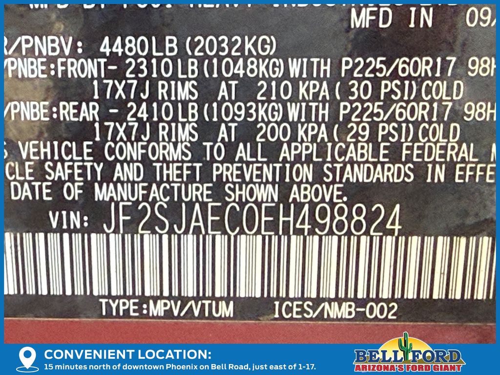 ** HERE AT BELL FORD ITS ALL ABOUT THE EXPERIENCE** Please visit us online at www.bellford.com This Subaru Forester is equipped with the following options: 17" x 7.0J Aluminum Alloy Wheels, 3.70 Axle Ratio, 4-Wheel Disc Brakes, 6 Speakers, ABS brakes, Air Conditioning, Alloy wheels, AM/FM radio, Brake assist, Bumpers: body-color, CD player, Cloth Upholstery, Driver door bin, Driver vanity mirror, Dual front impact airbags, Dual front side impact airbags, Electronic Stability Control, Exterior Parking Camera Rear, Four wheel independent suspension, Front anti-roll bar, Front Bucket Seats, Front Center Armrest, Front reading lights, Heated door mirrors, Heated front seats, Illuminated entry, Knee airbag, Low tire pressure warning, Occupant sensing airbag, Outside temperature display, Overhead airbag, Overhead console, Panic alarm, Passenger door bin, Passenger vanity mirror, Power door mirrors, Power driver seat, Power moonroof, Power steering, Power windows, Radio data system, Radio: AM/FM Stereo w/HD Radio & Single CD Player, Rear anti-roll bar, Rear seat center armrest, Rear window defroster, Rear window wiper, Remote keyless entry, Roof rack: rails only, Security system, Speed control, Split folding rear seat, Steering wheel mounted audio controls, Tachometer, Telescoping steering wheel, Tilt steering wheel, Traction control, Trip computer, and Variably intermittent wiperS.