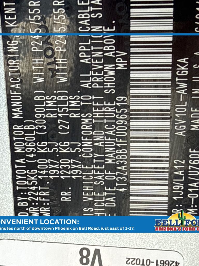 - VIN : 4T3ZA3BB1FU096519